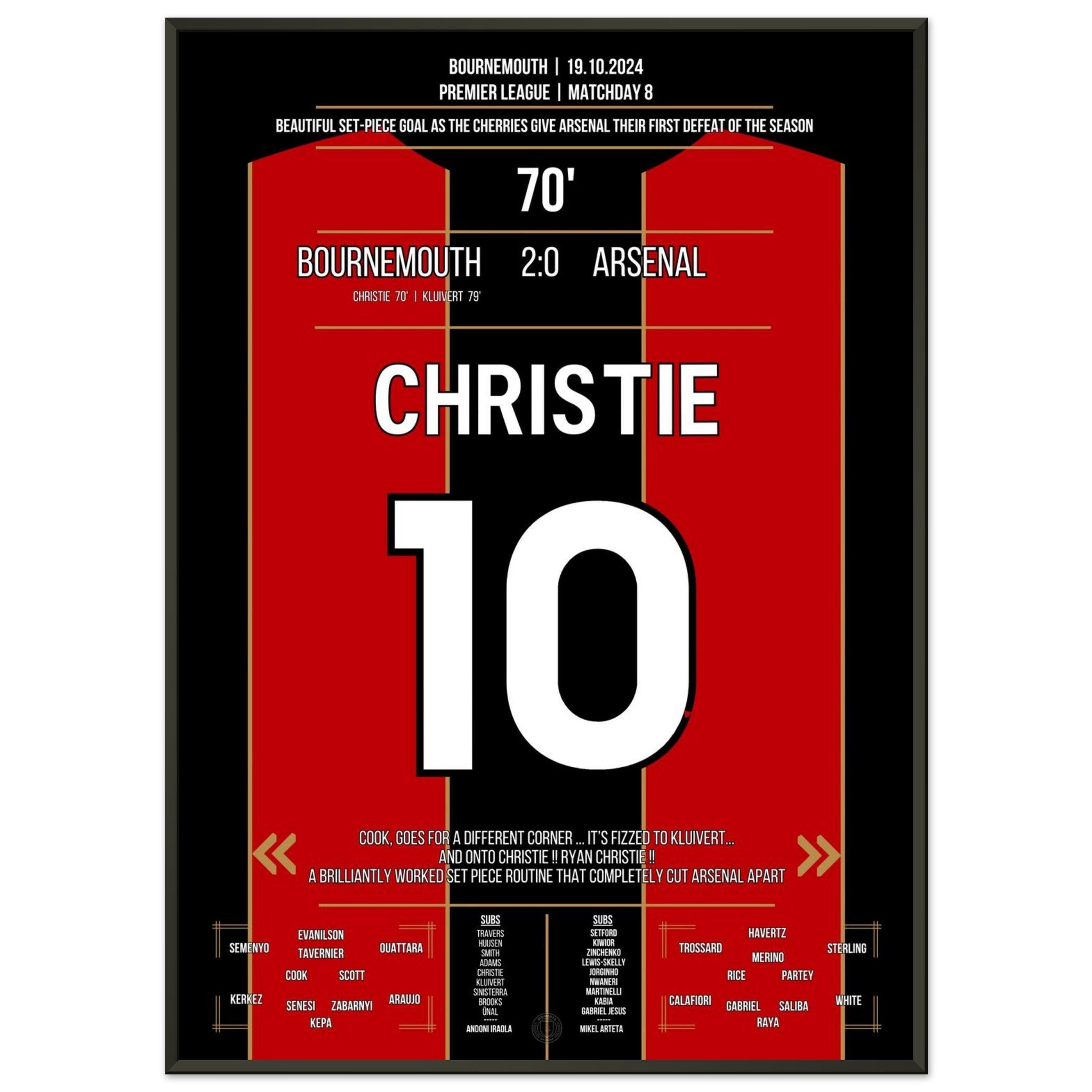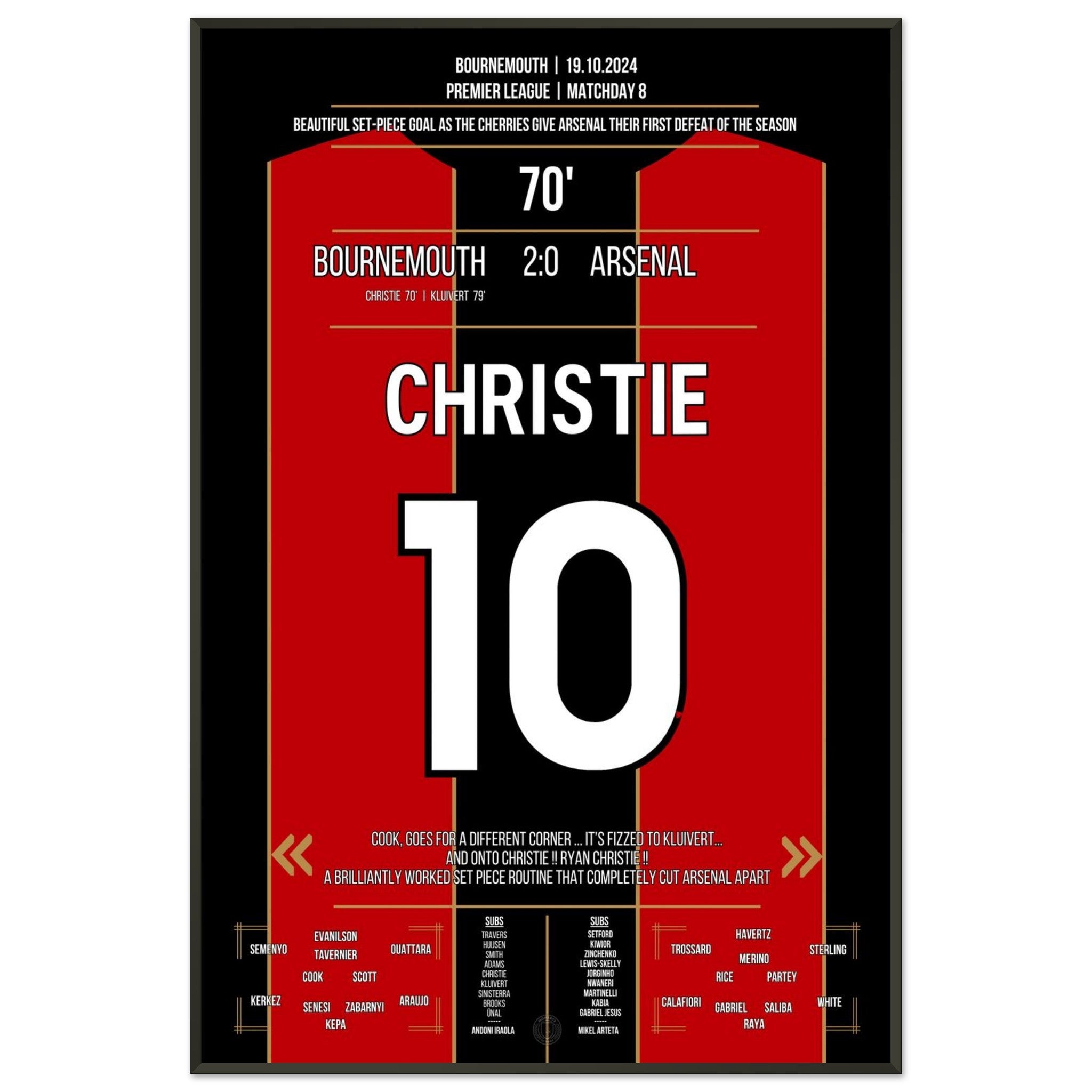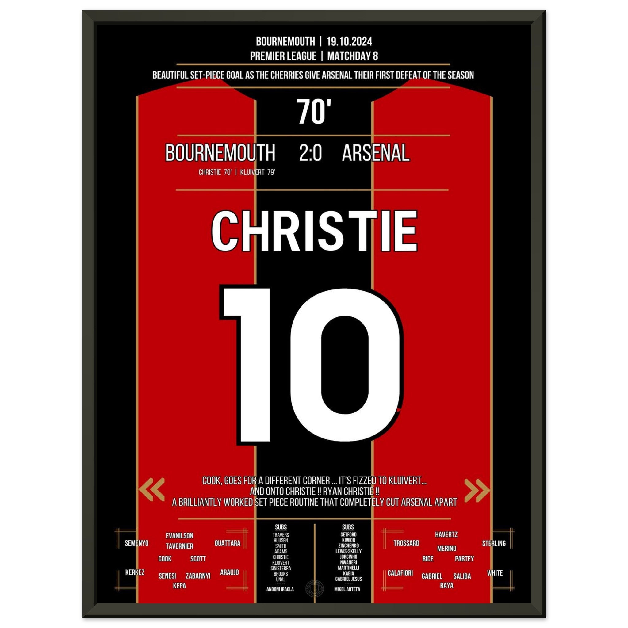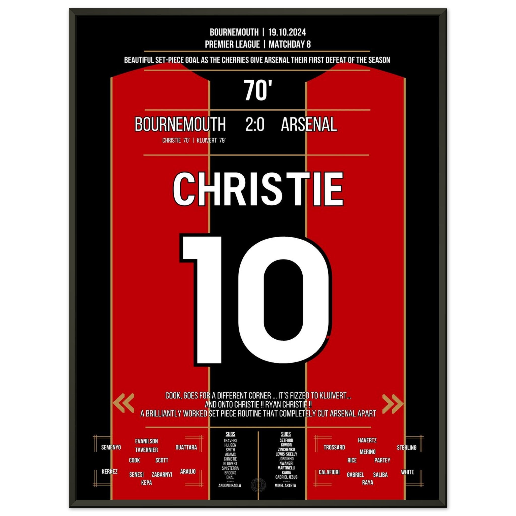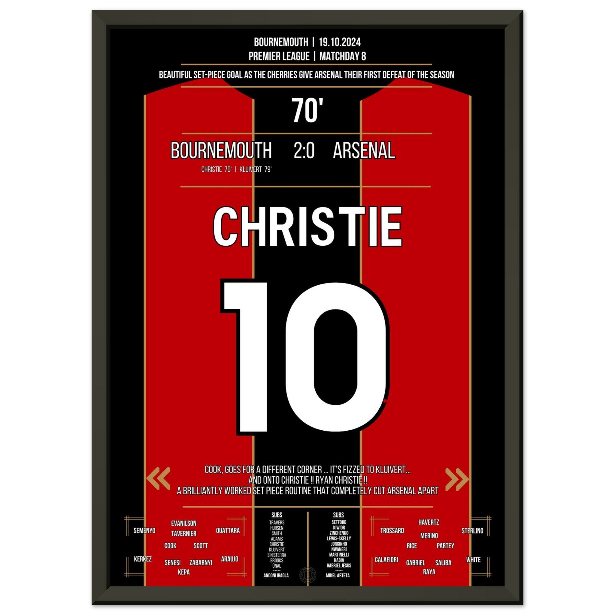 Sie können sicher sein, dass jedes Poster und jeder Rahmen in einer robusten Verpackung versandt wird, damit es in tadellosem Zustand ankommt. Es ist die perfekte Ergänzung für die Sammlung eines jeden Fußballfans oder das perfekte Geschenk für den eingefleischten Fußball-Fan ihres Freundes- oder Familienkreises.