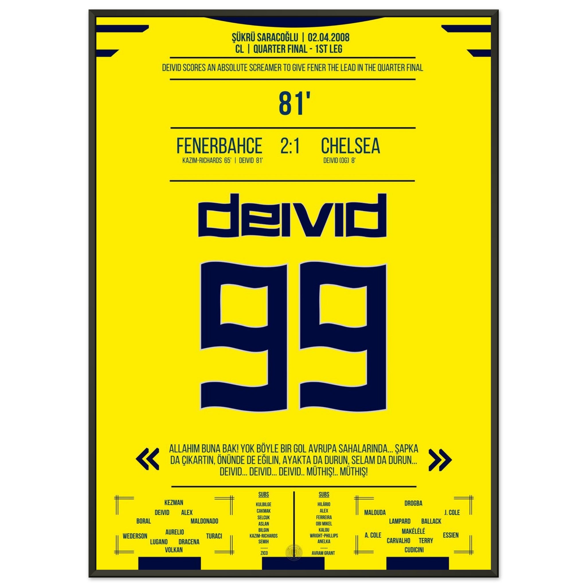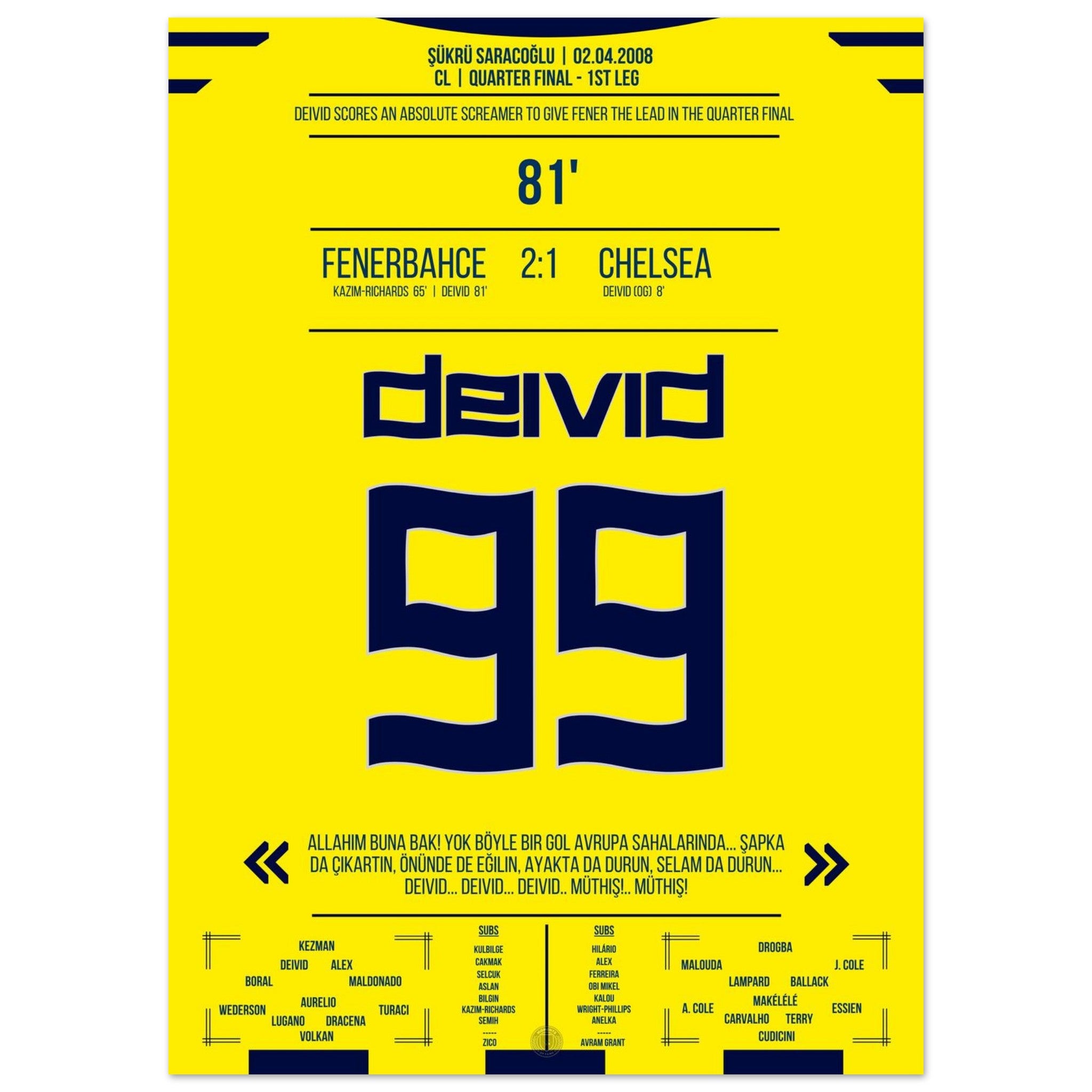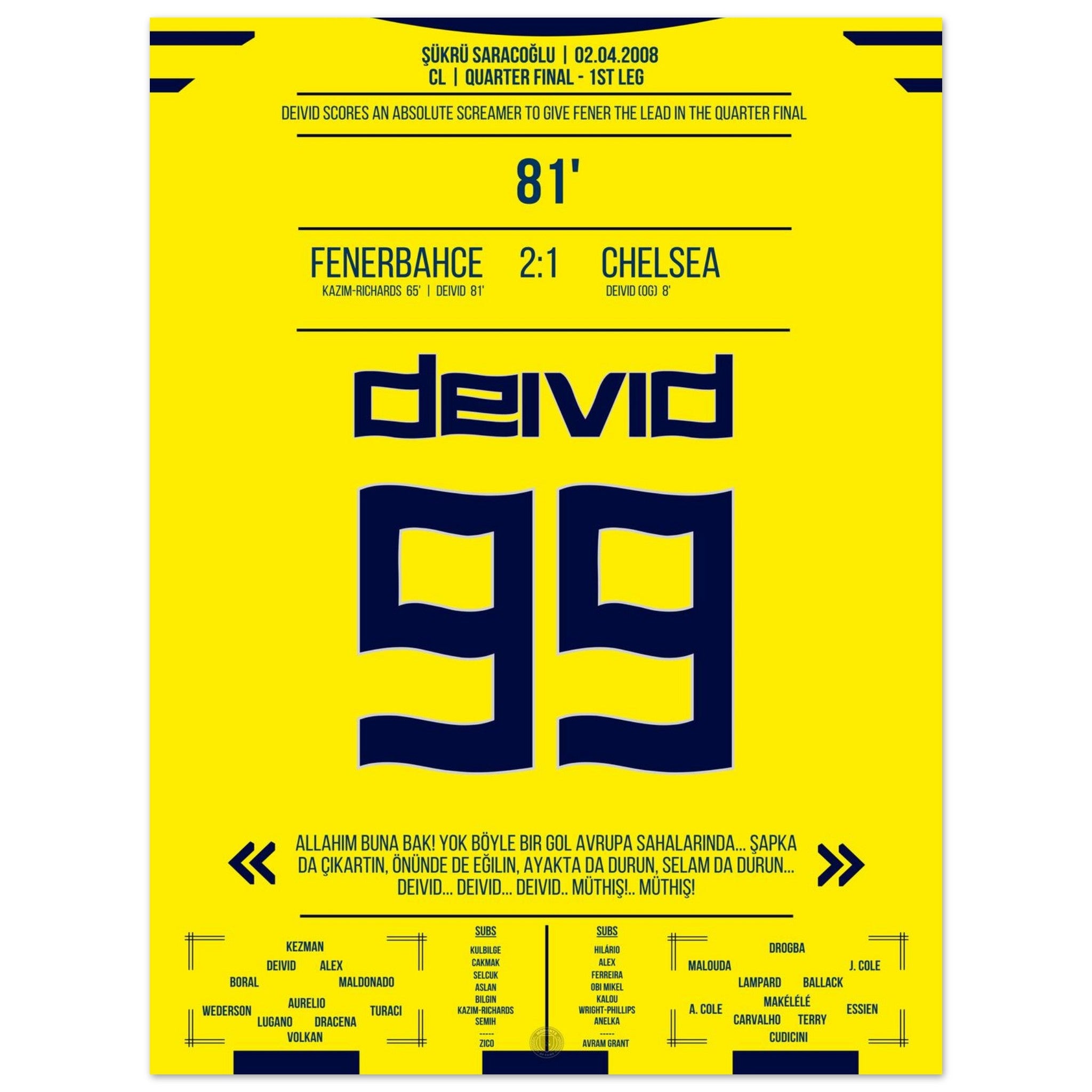 2. April 2008 – Fenerbahce vs. Chelsea 2:1 – Deivids Traumtor erschüttert Europa: