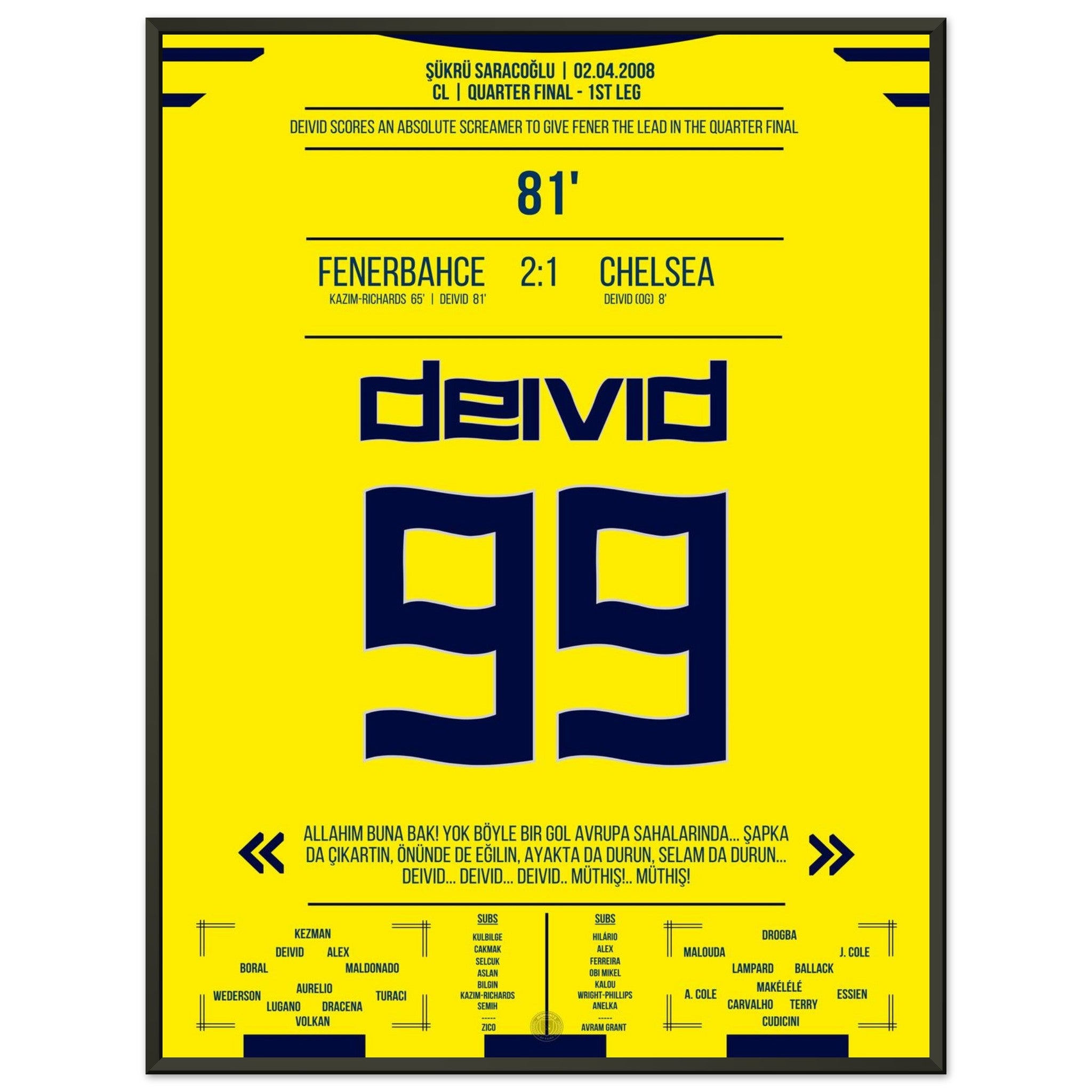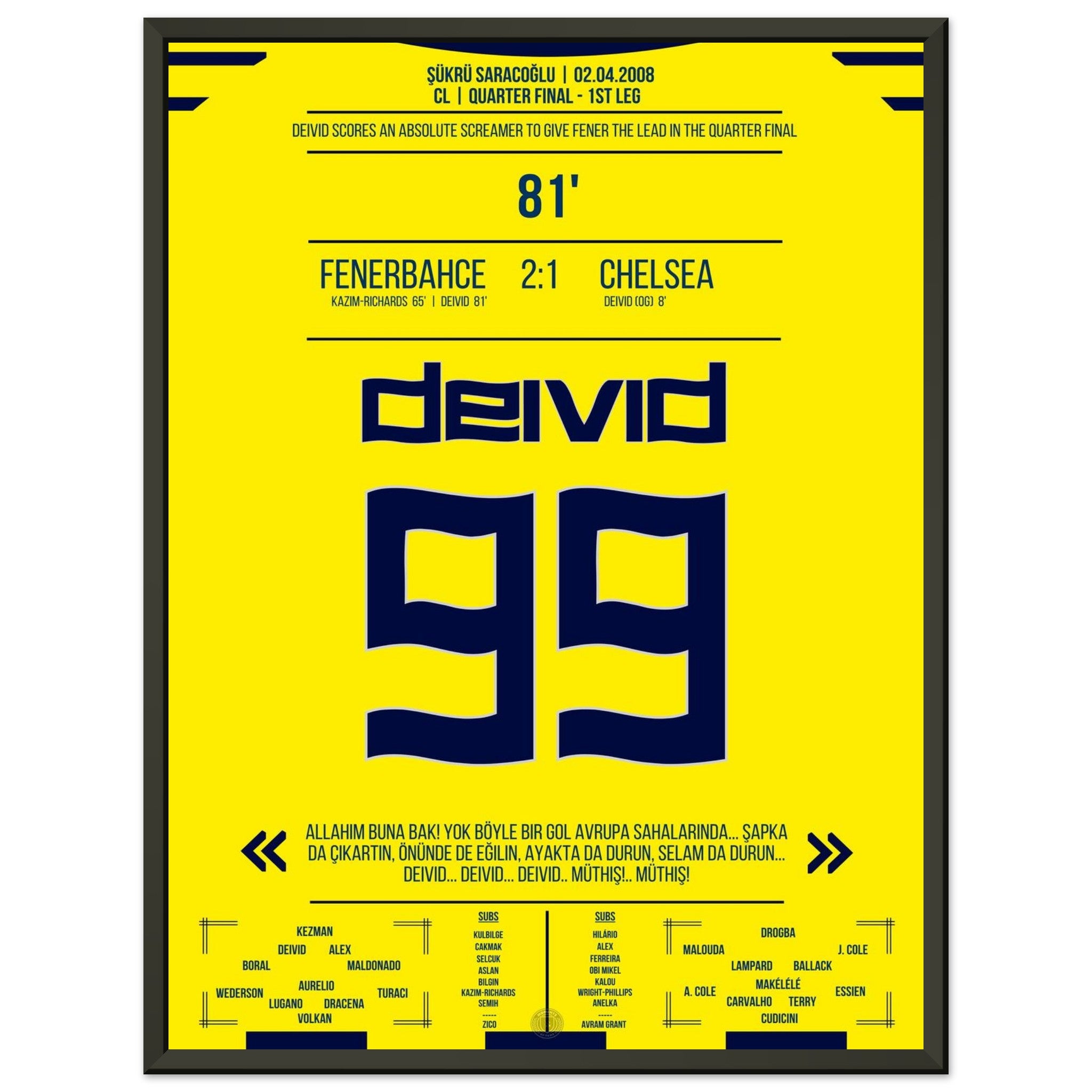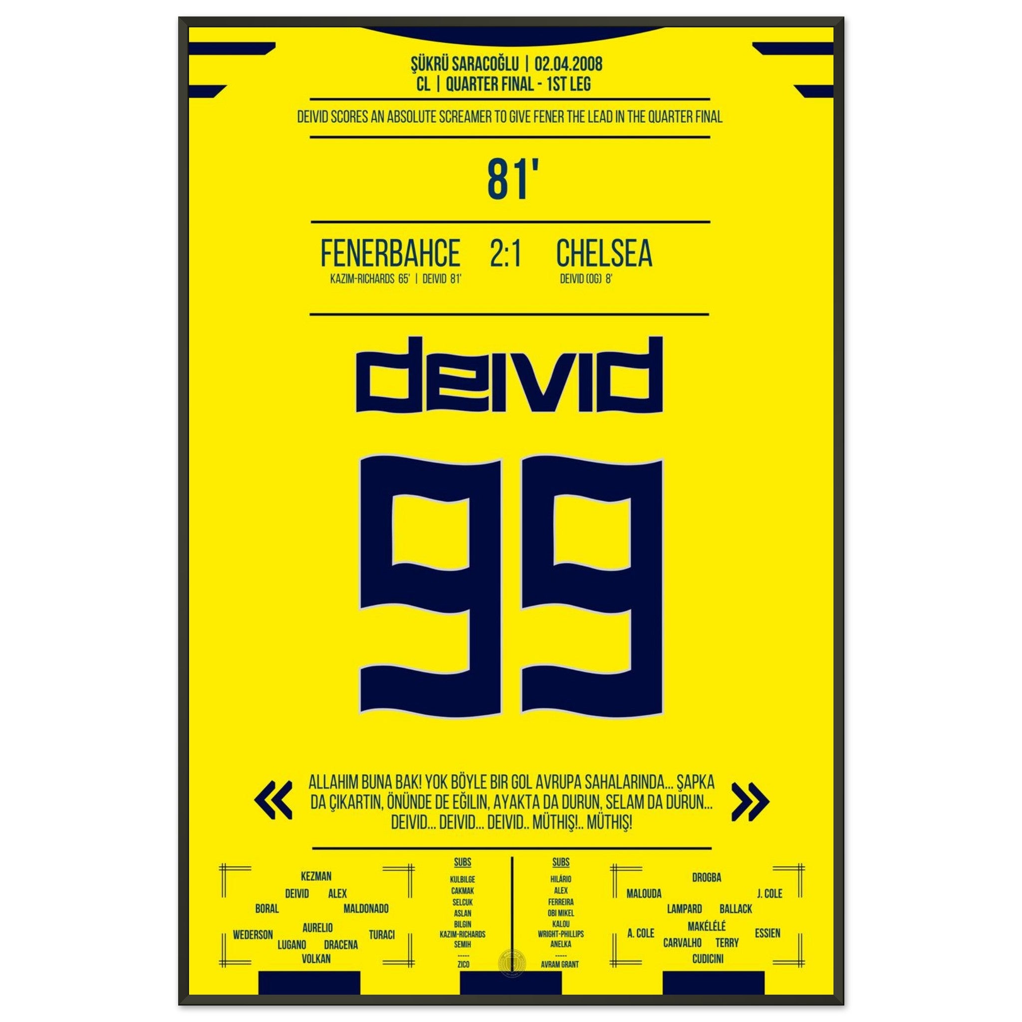 2. April 2008 – Fenerbahce vs. Chelsea 2:1 – Deivids Traumtor erschüttert Europa: