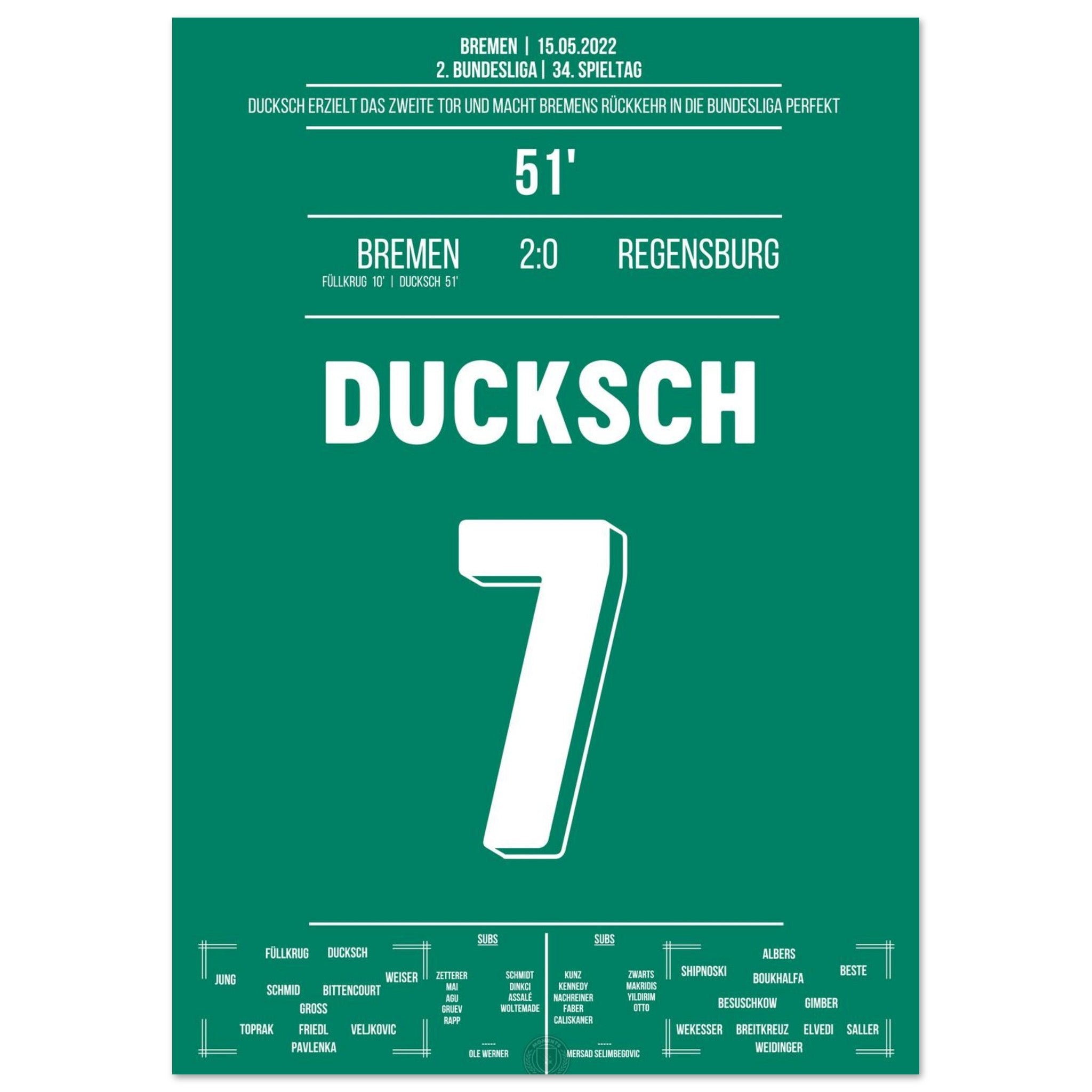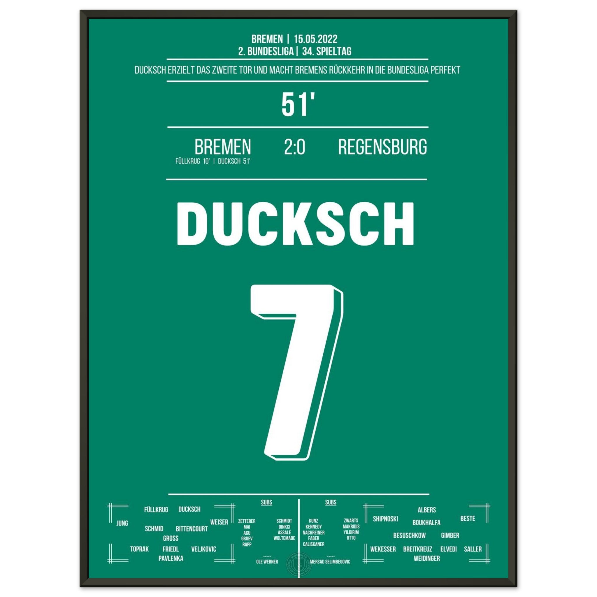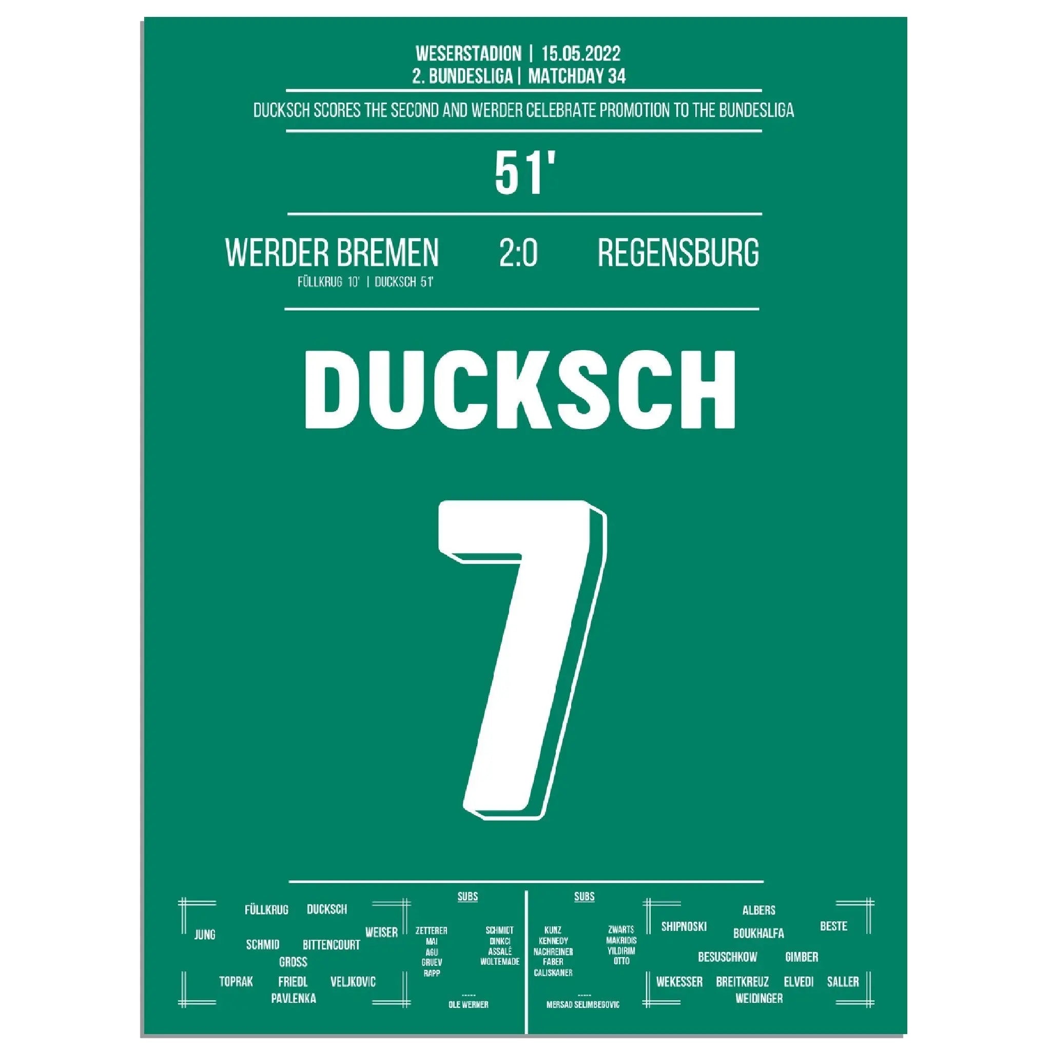 Ducksch trifft in der 51. Minute und bringt Bremen damit auf Kurs zum Wiederaufstieg. Mit diesem wichtigen Tor kehrt der Traditionsklub zurück in die Bundesliga – grenzenloser Jubel bei Fans und Mannschaft!