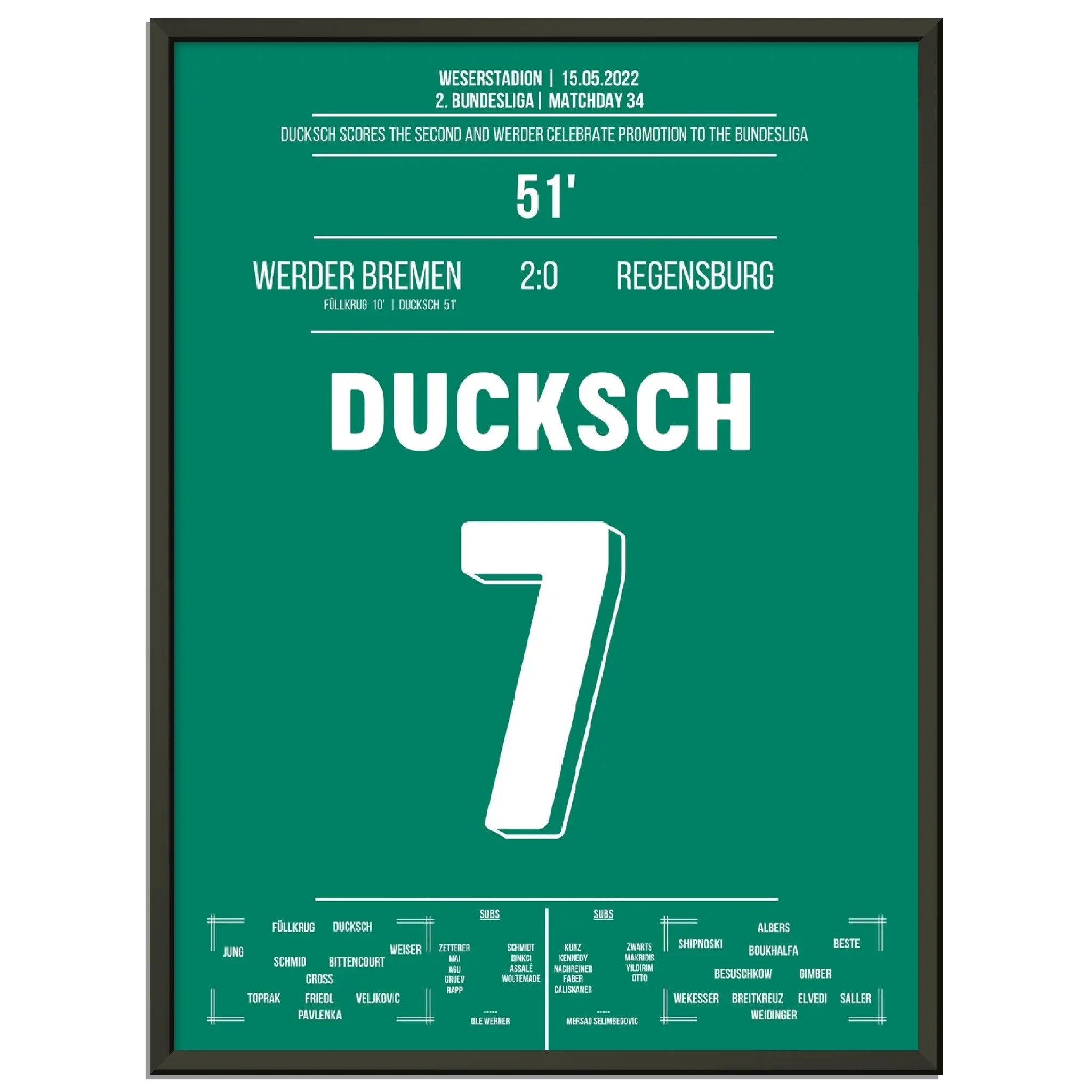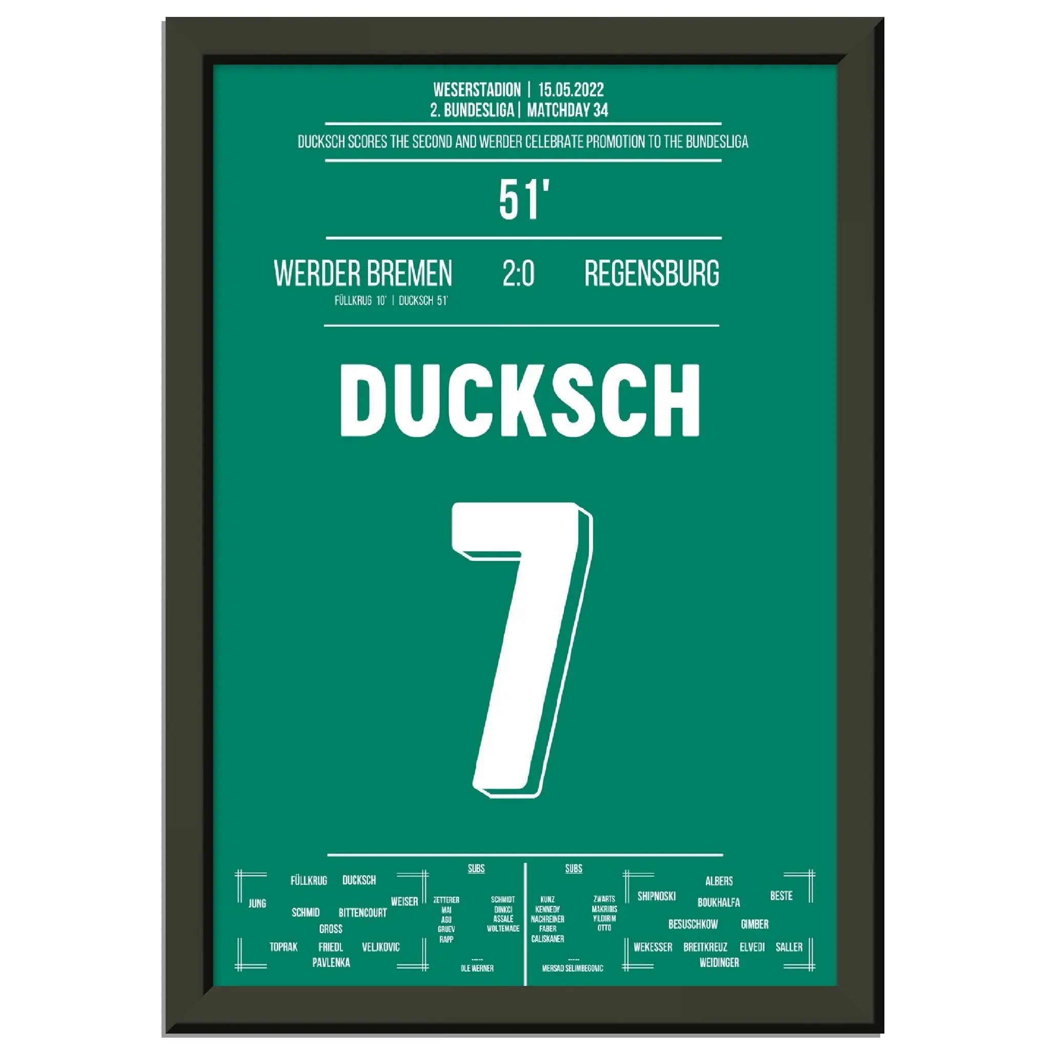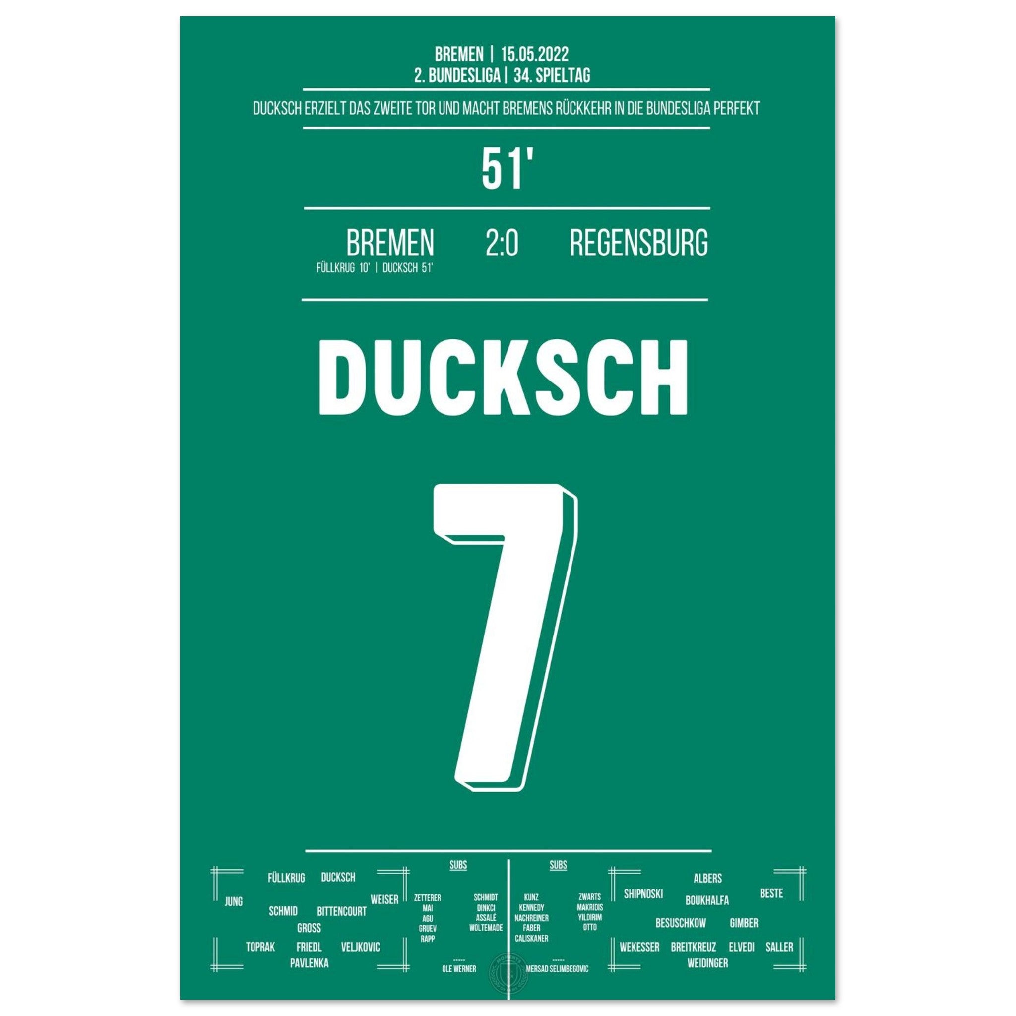 Ducksch trifft in der 51. Minute und bringt Bremen damit auf Kurs zum Wiederaufstieg. Mit diesem wichtigen Tor kehrt der Traditionsklub zurück in die Bundesliga – grenzenloser Jubel bei Fans und Mannschaft!