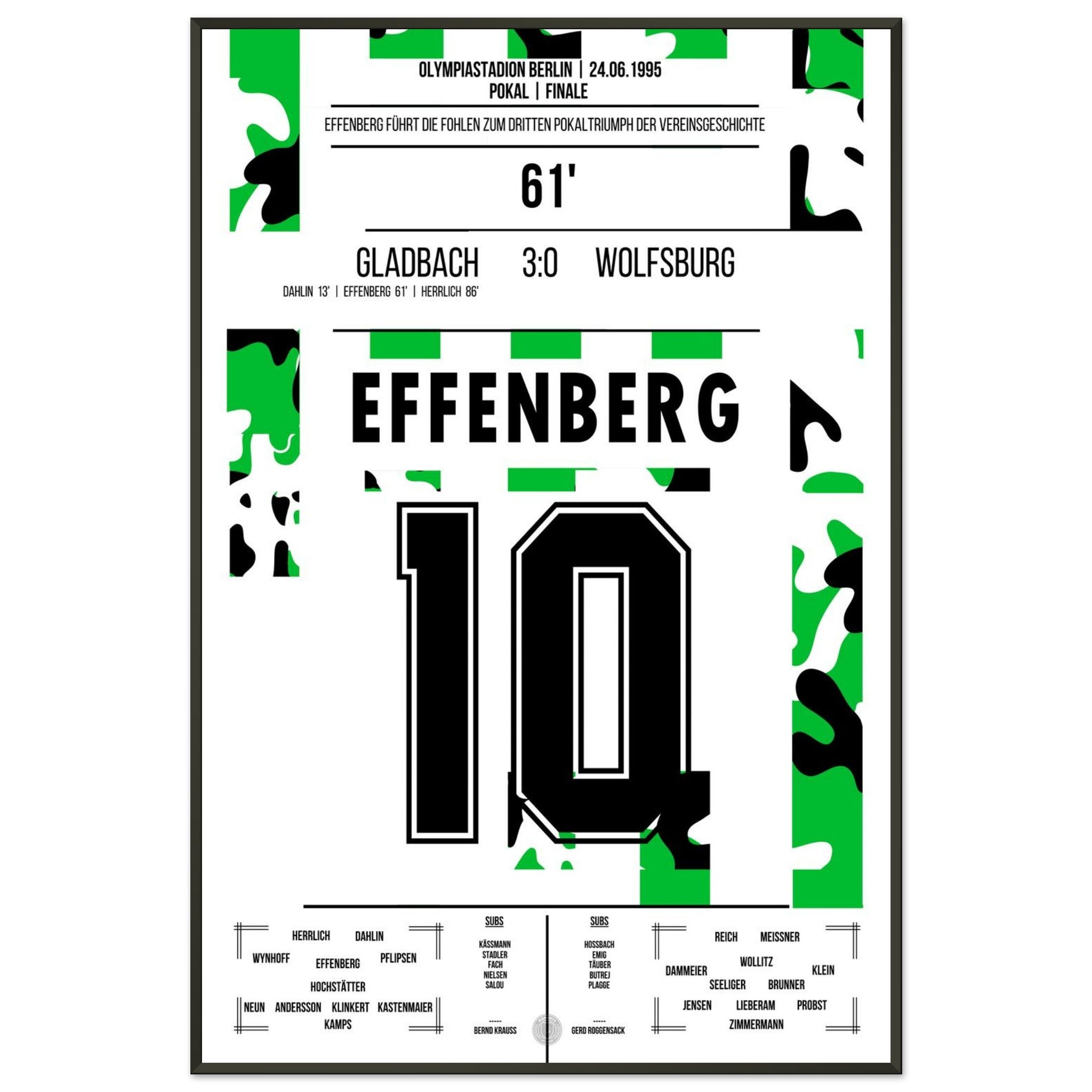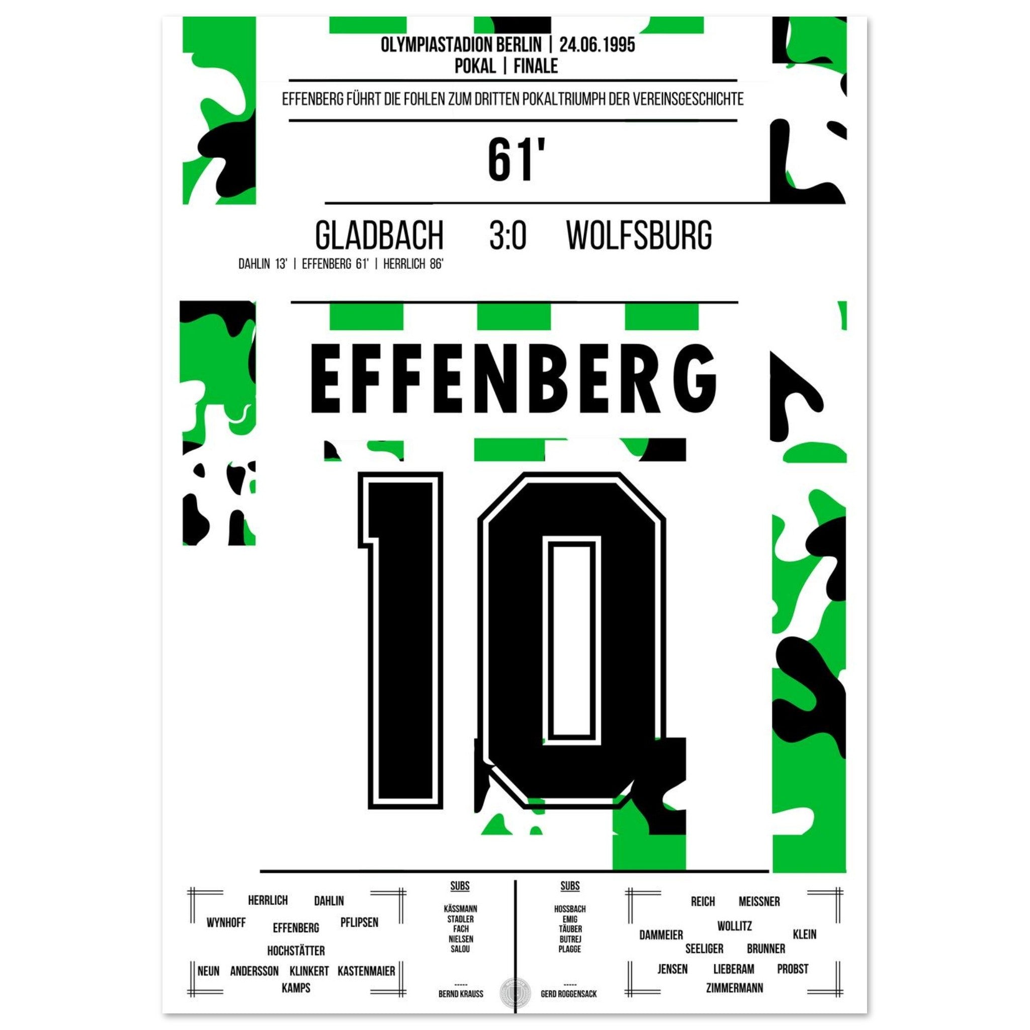 Im Pokalfinale 1995 übernimmt Stefan Effenberg das Kommando – und führt Mönchengladbach mit einem souveränen 3:0-Erfolg gegen Wolfsburg zum dritten Pokalsieg der Vereinsgeschichte. Ein Auftritt mit Ansage – auf dem Platz und am Mikrofon.