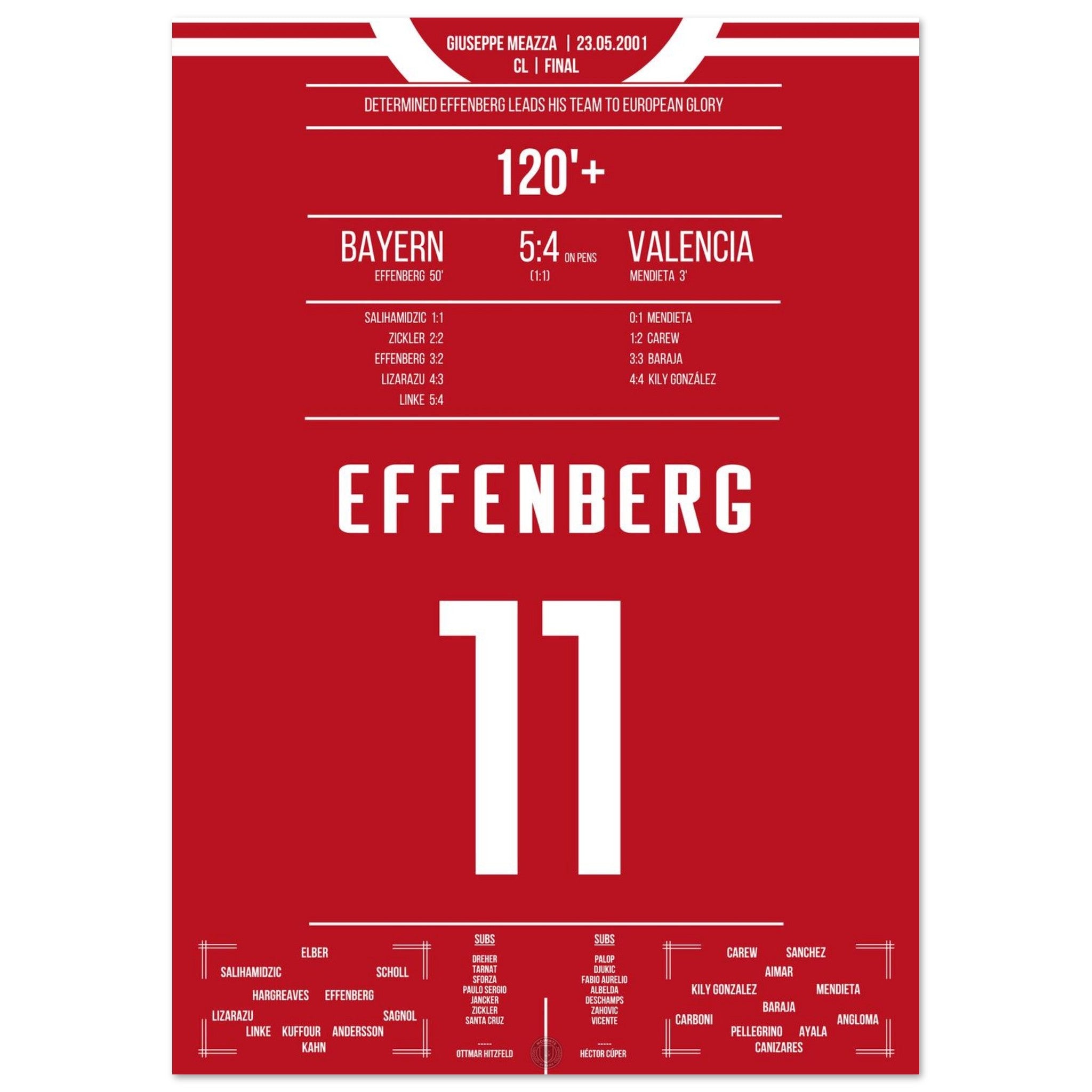 Effenberg zeigt im CL-Finale eine herausragende Führungsstärke und führt die Mannschaft mit großer Präsenz auf dem Platz. Sein Einsatz und seine Ruhe tragen maßgeblich zum späteren Sieg im Elfmeterschießen bei.