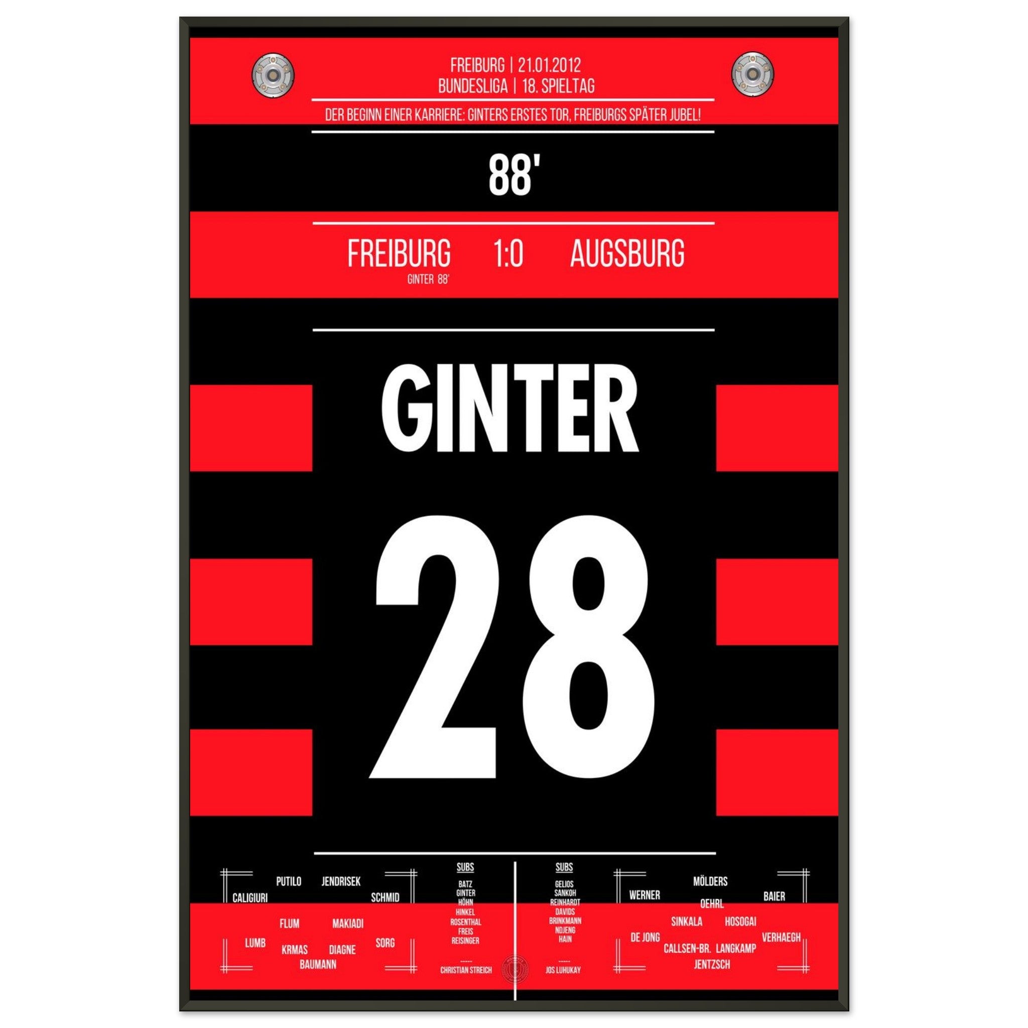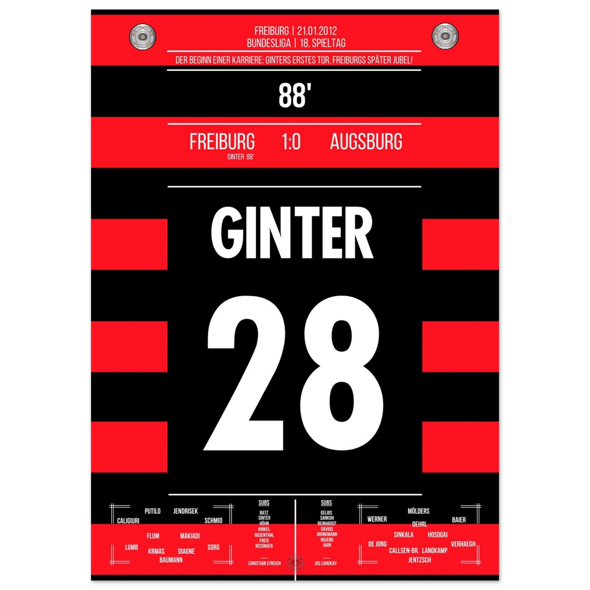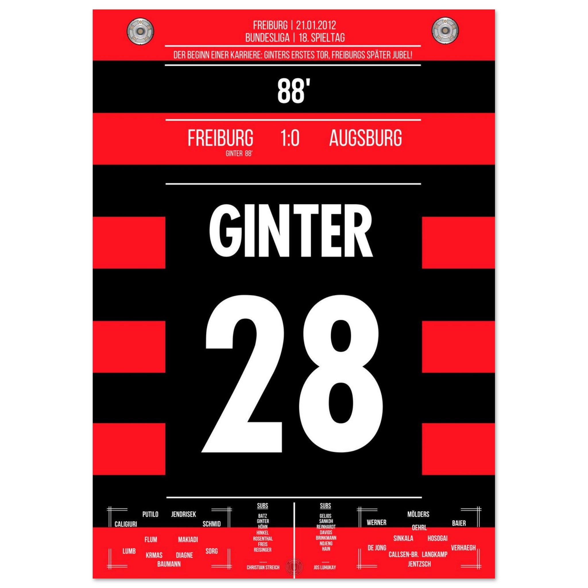 21. Januar 2012 – Freiburg vs. Augsburg 1:0: In der 88. Minute trifft der 18-jährige Matthias Ginter bei seinem Bundesliga-Debüt per Kopf zum Sieg – und schreibt auf Anhieb Vereinsgeschichte. Ein Traumstart mit Ansage. Unser Poster hält diesen besonderen Moment für immer fest.