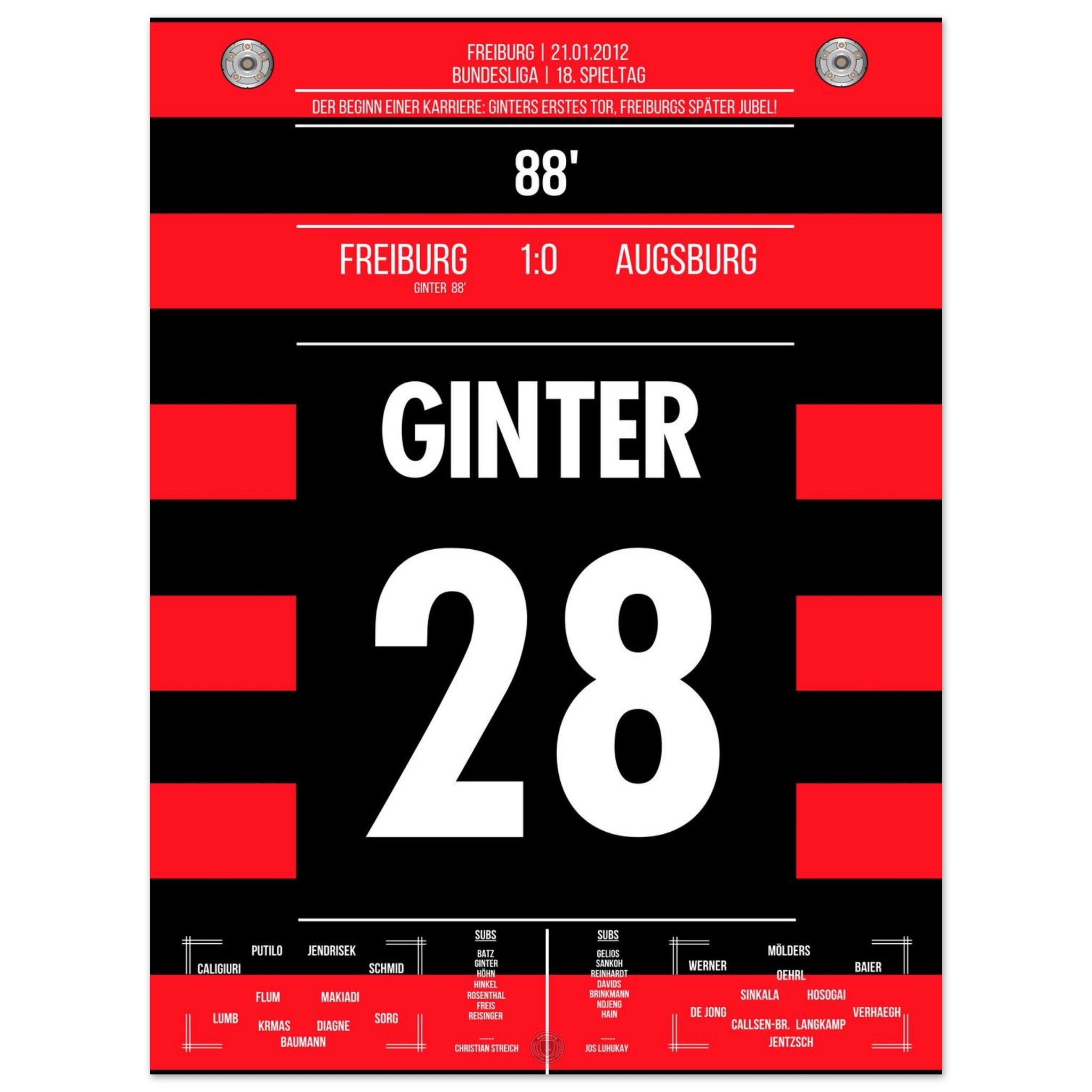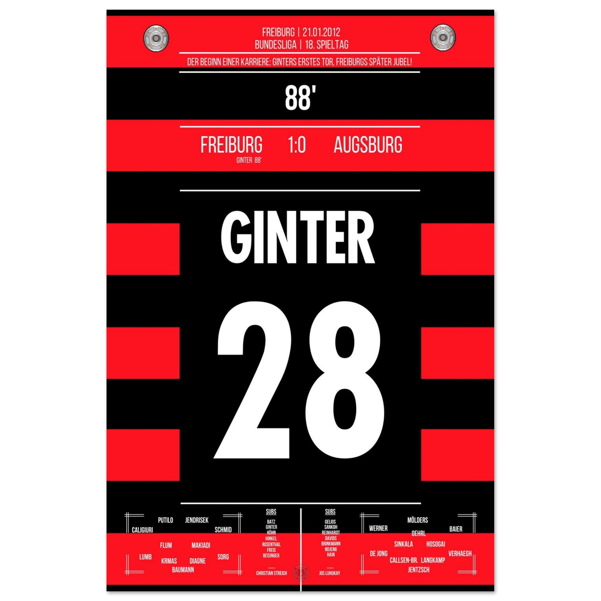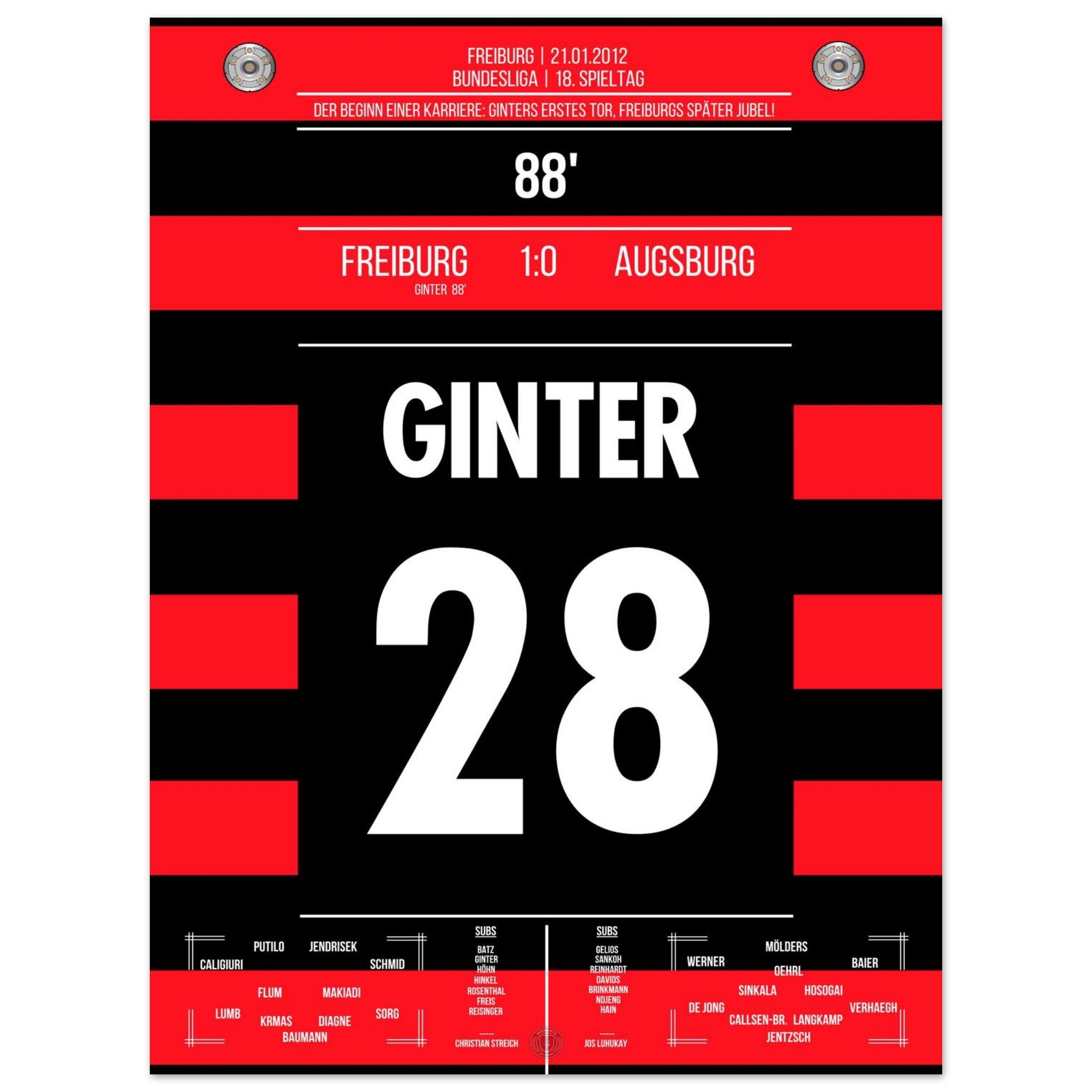 21. Januar 2012 – Freiburg vs. Augsburg 1:0: In der 88. Minute trifft der 18-jährige Matthias Ginter bei seinem Bundesliga-Debüt per Kopf zum Sieg – und schreibt auf Anhieb Vereinsgeschichte. Ein Traumstart mit Ansage. Unser Poster hält diesen besonderen Moment für immer fest.