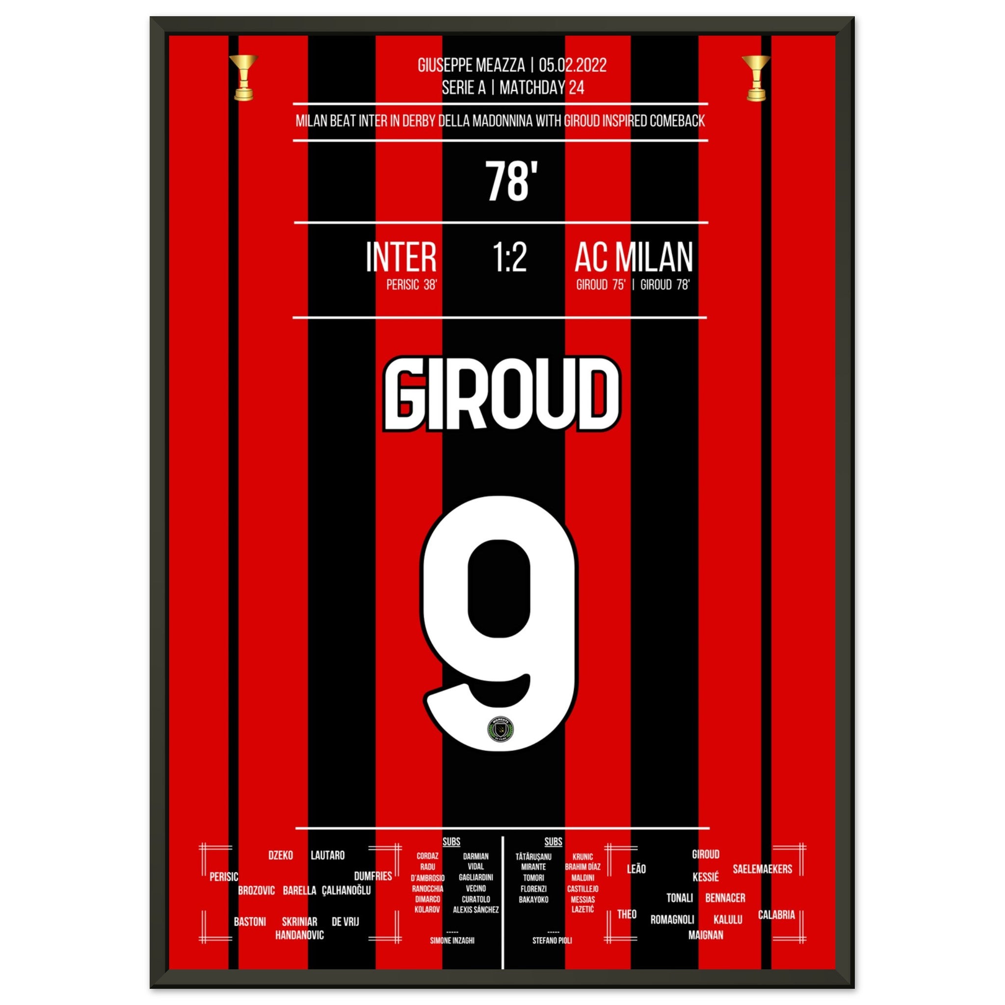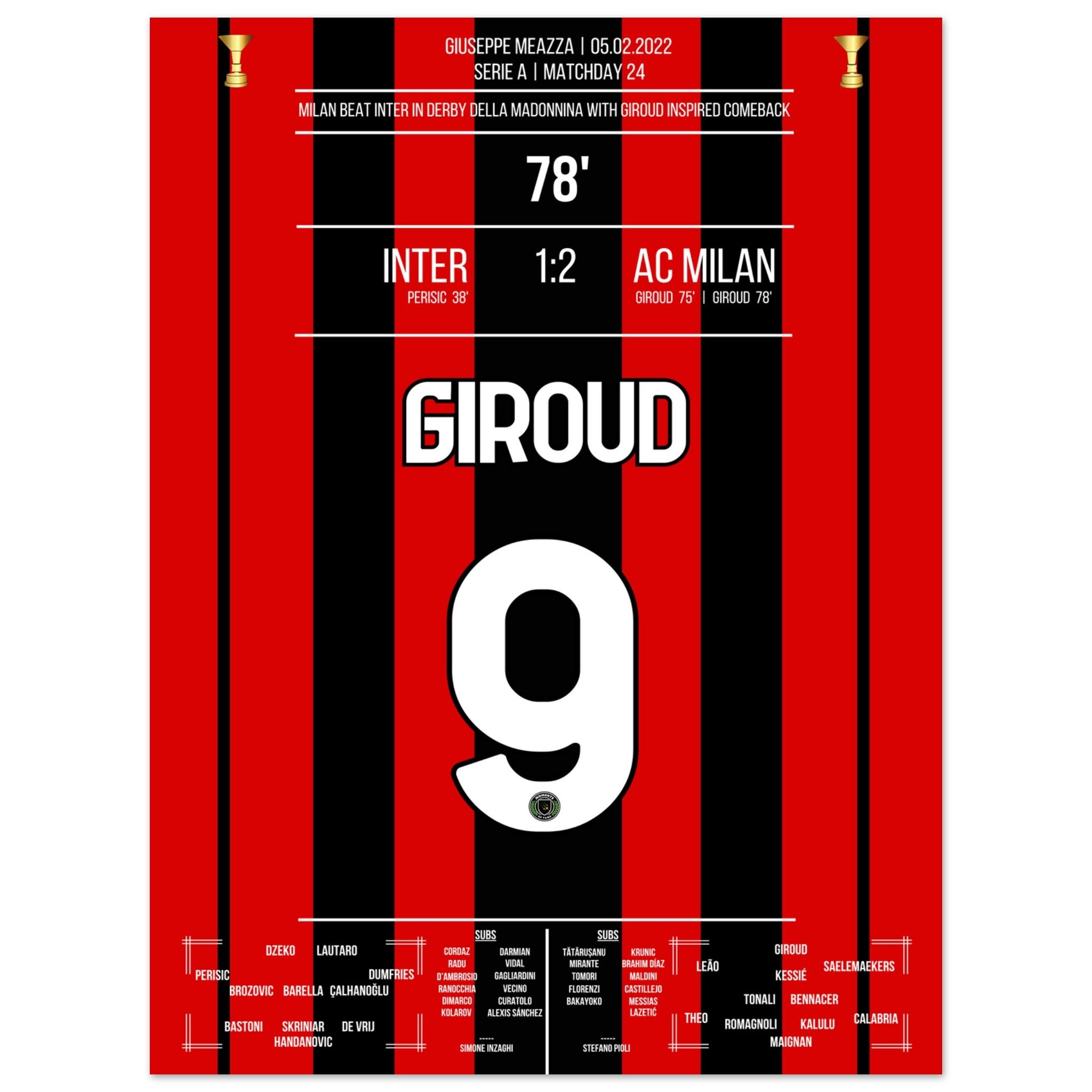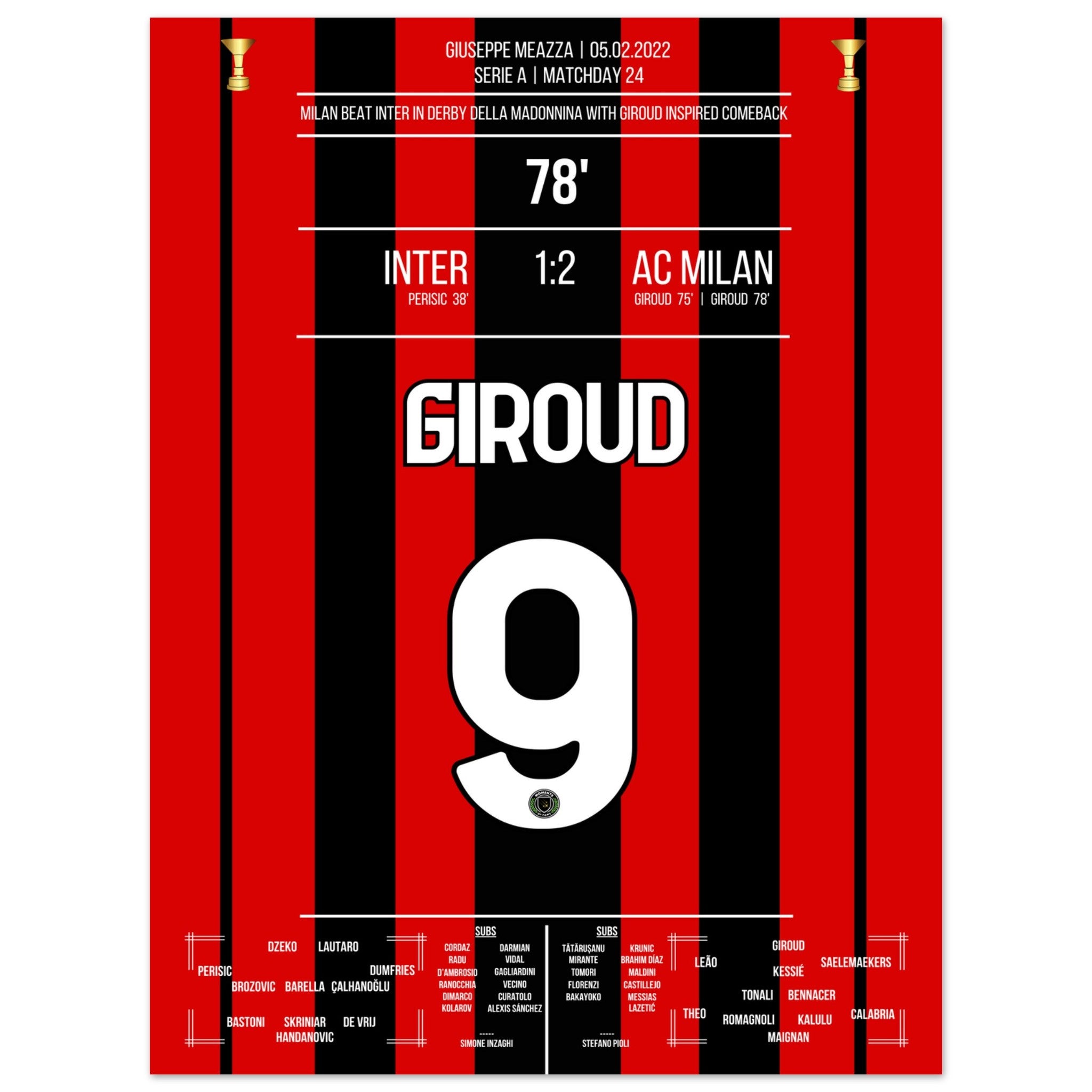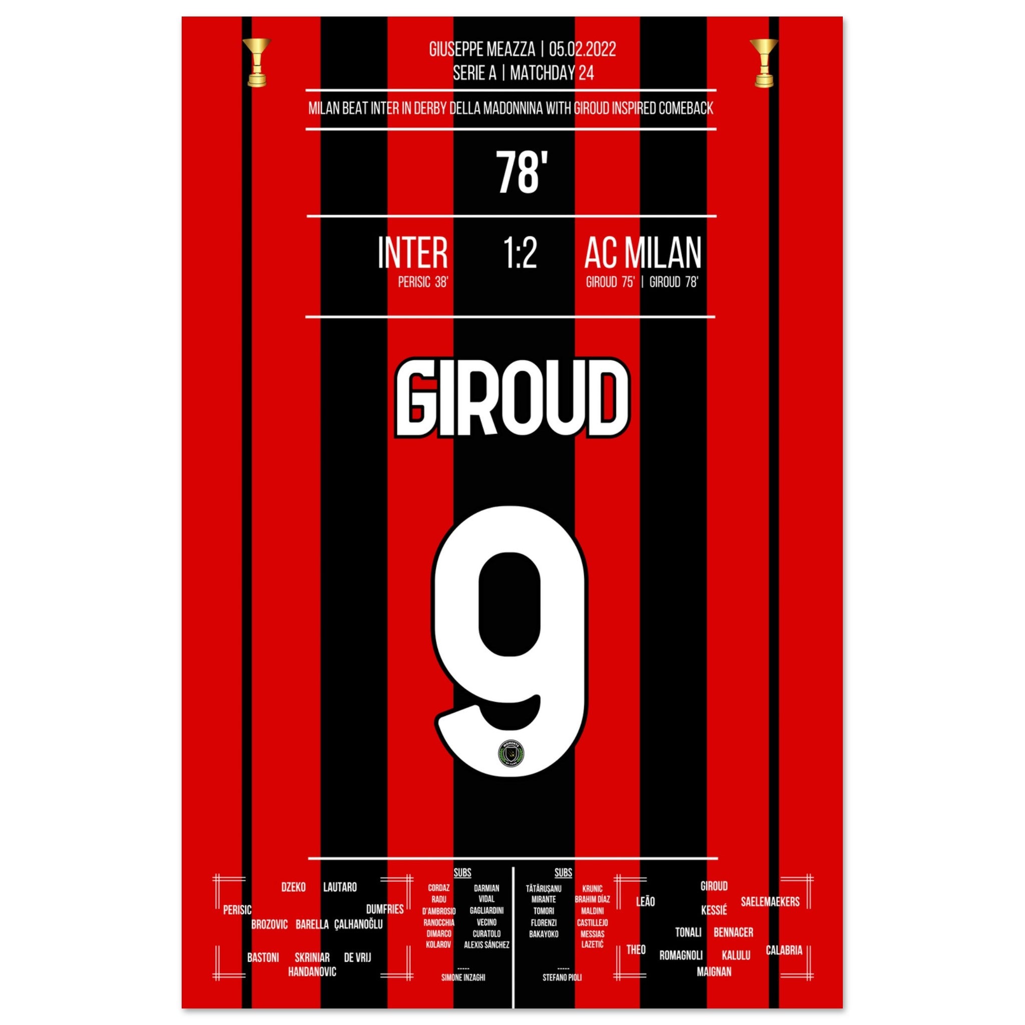 Giroud schieß Milan mit zwei Toren zum Derby-sieg gegen Inter