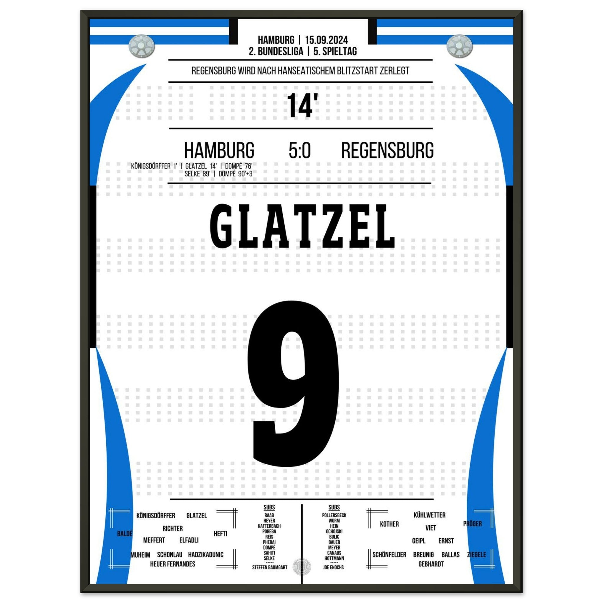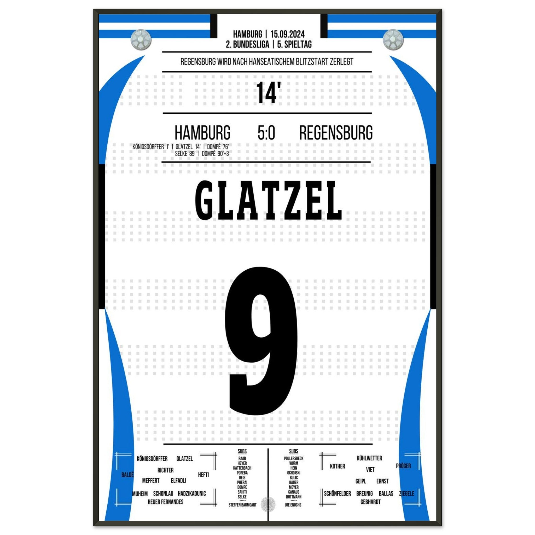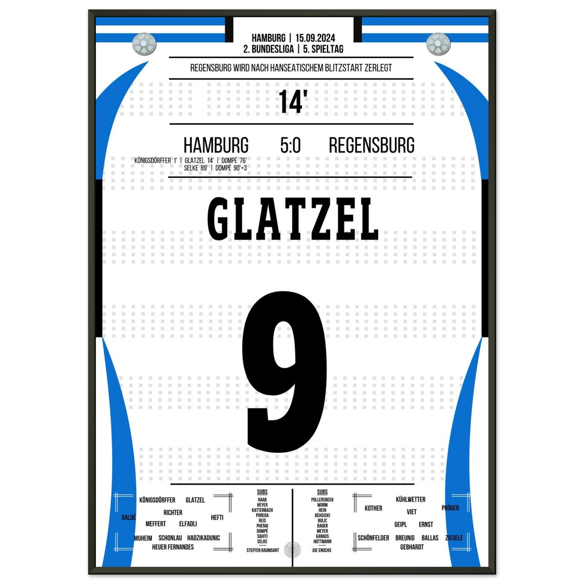 15. September 2024 – Hamburg vs. Regensburg 5:0: Hamburg zündet ein Offensivfeuerwerk im Volkspark und fegt Regensburg eindrucksvoll vom Platz. Ein Heimspiel wie gemalt – voller Tempo, Tore und Emotionen. Unser Poster hält diesen dominanten Auftritt in rot-weiß-blau fest.