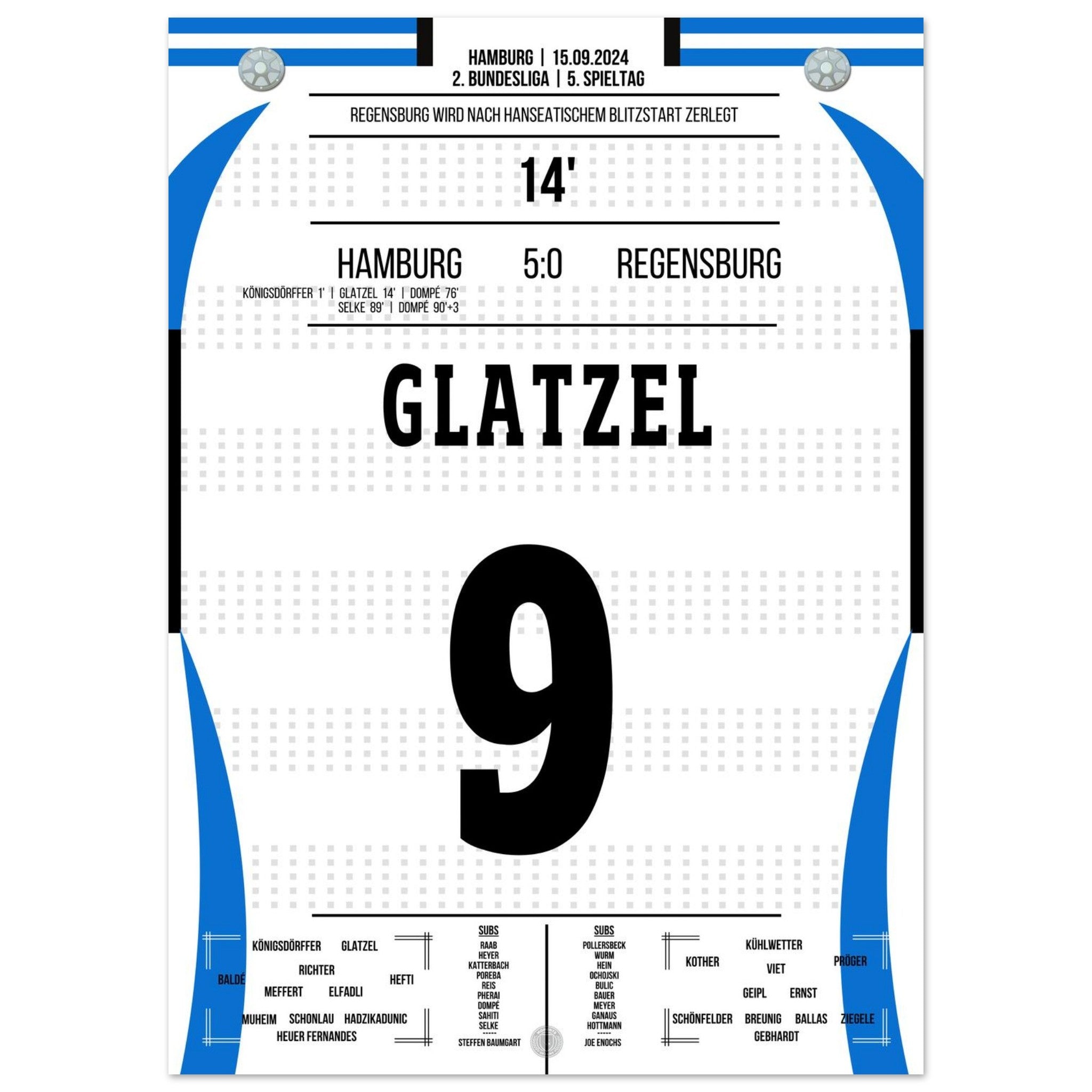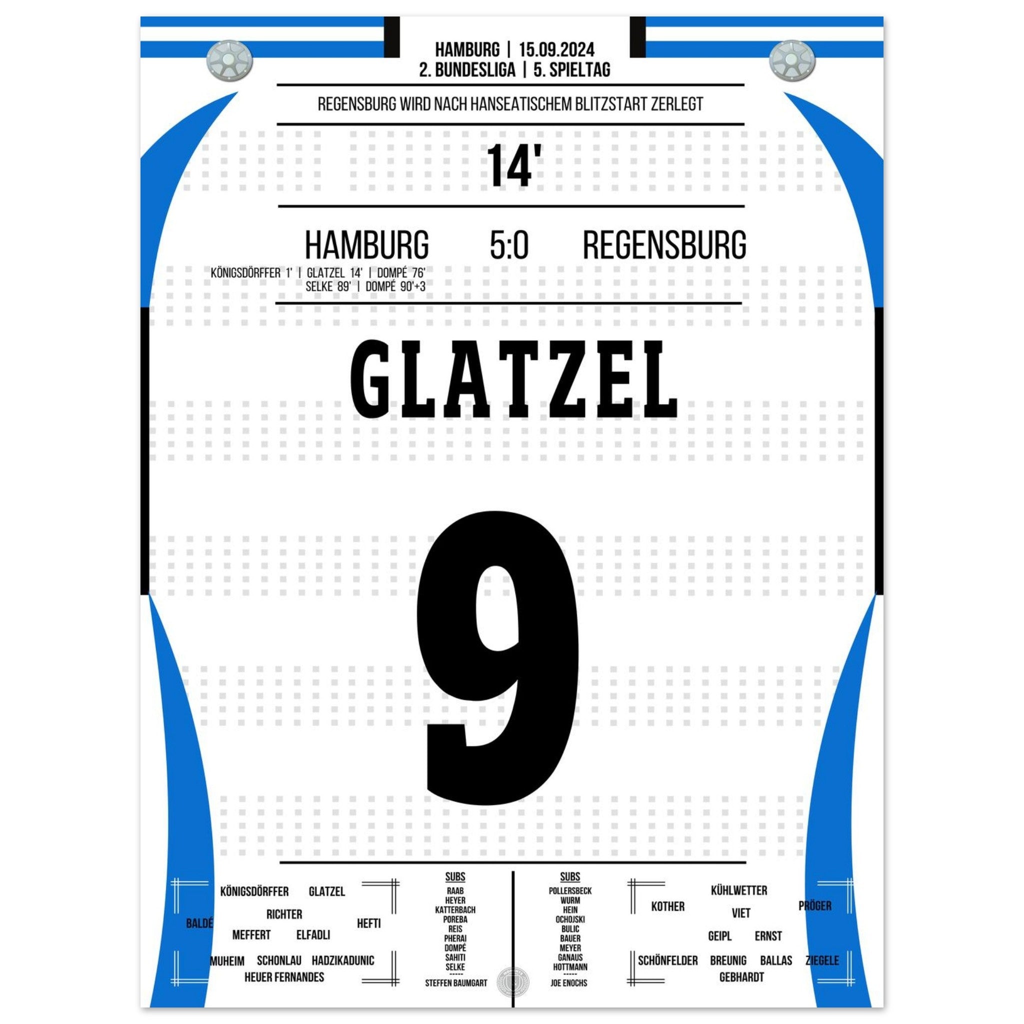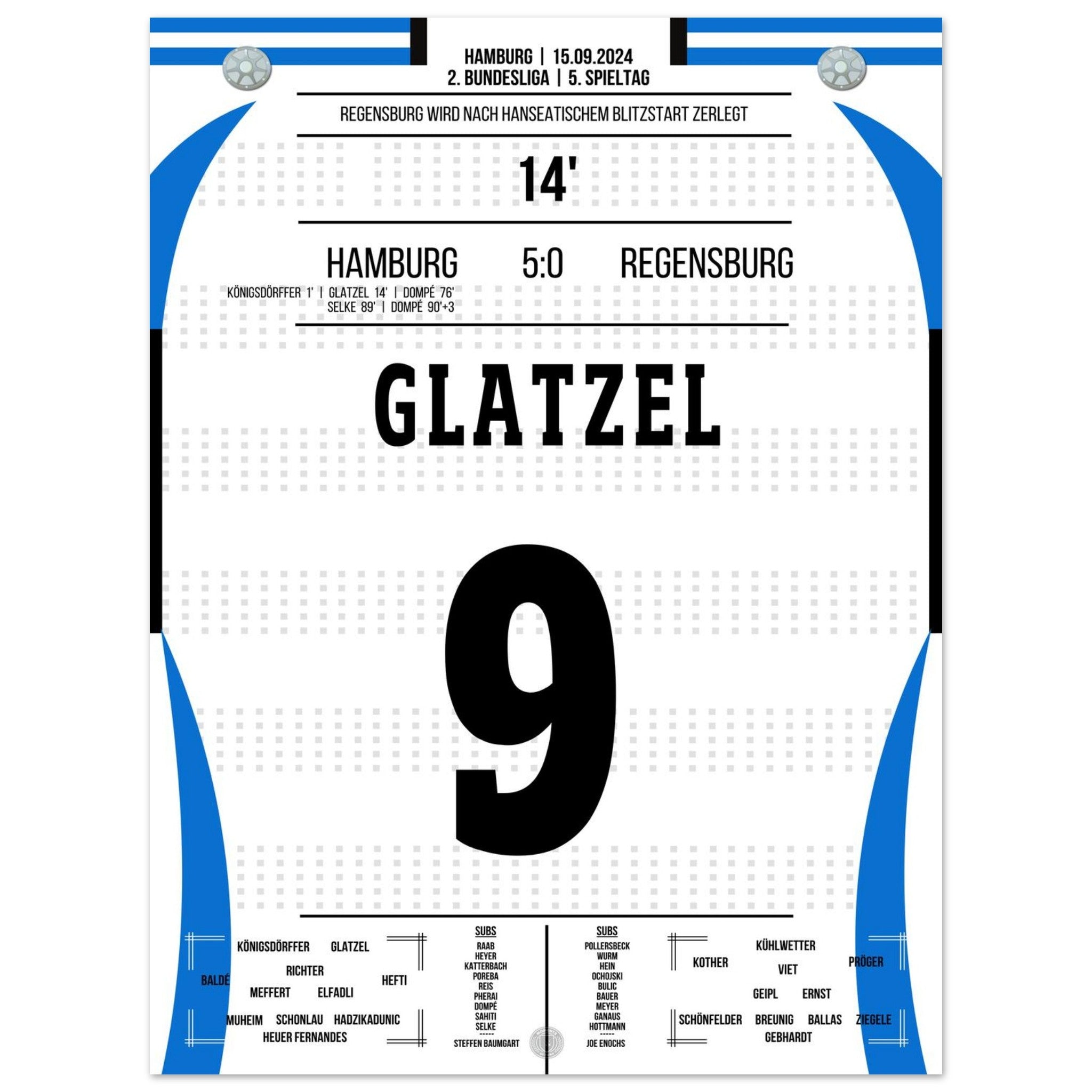 15. September 2024 – Hamburg vs. Regensburg 5:0: Hamburg zündet ein Offensivfeuerwerk im Volkspark und fegt Regensburg eindrucksvoll vom Platz. Ein Heimspiel wie gemalt – voller Tempo, Tore und Emotionen. Unser Poster hält diesen dominanten Auftritt in rot-weiß-blau fest.