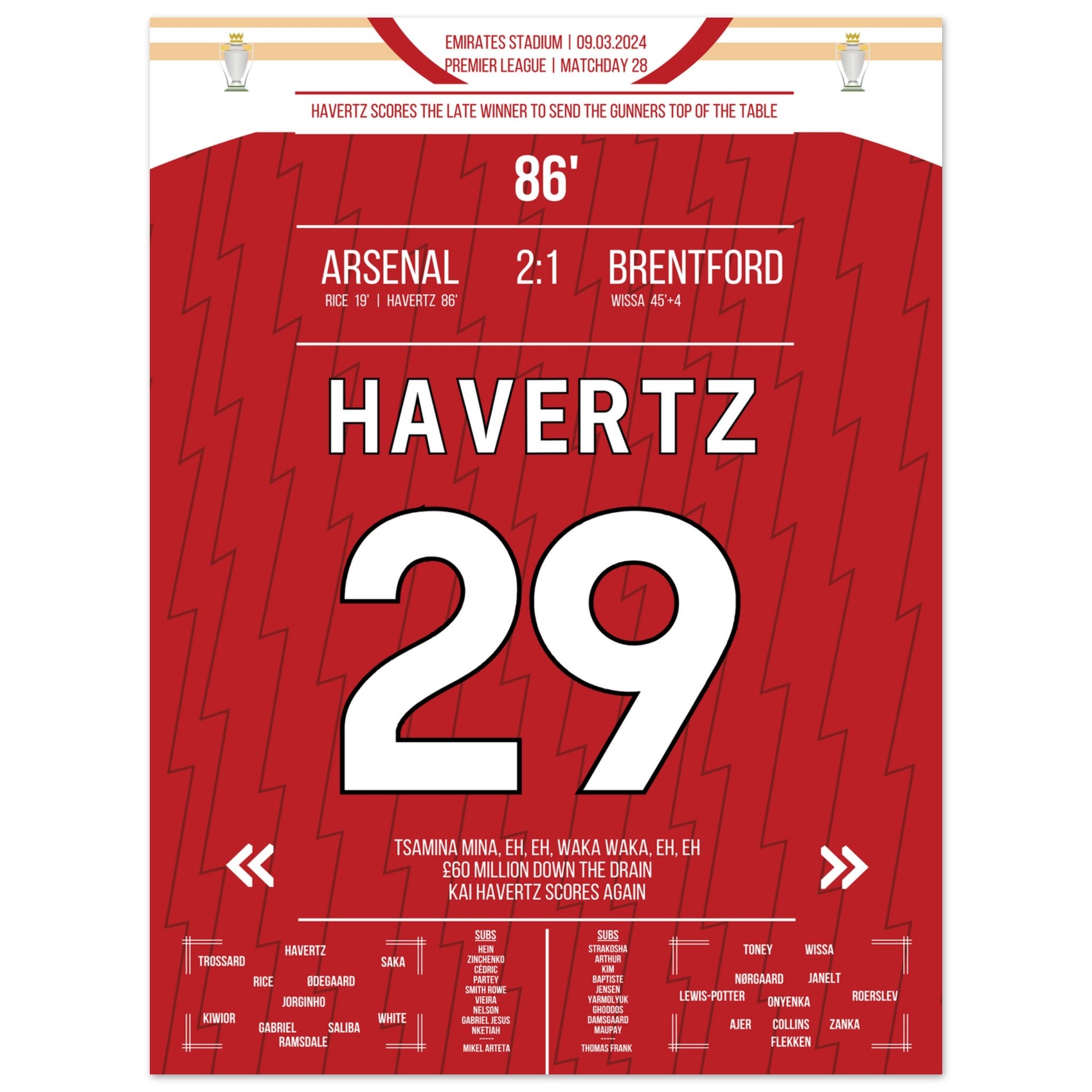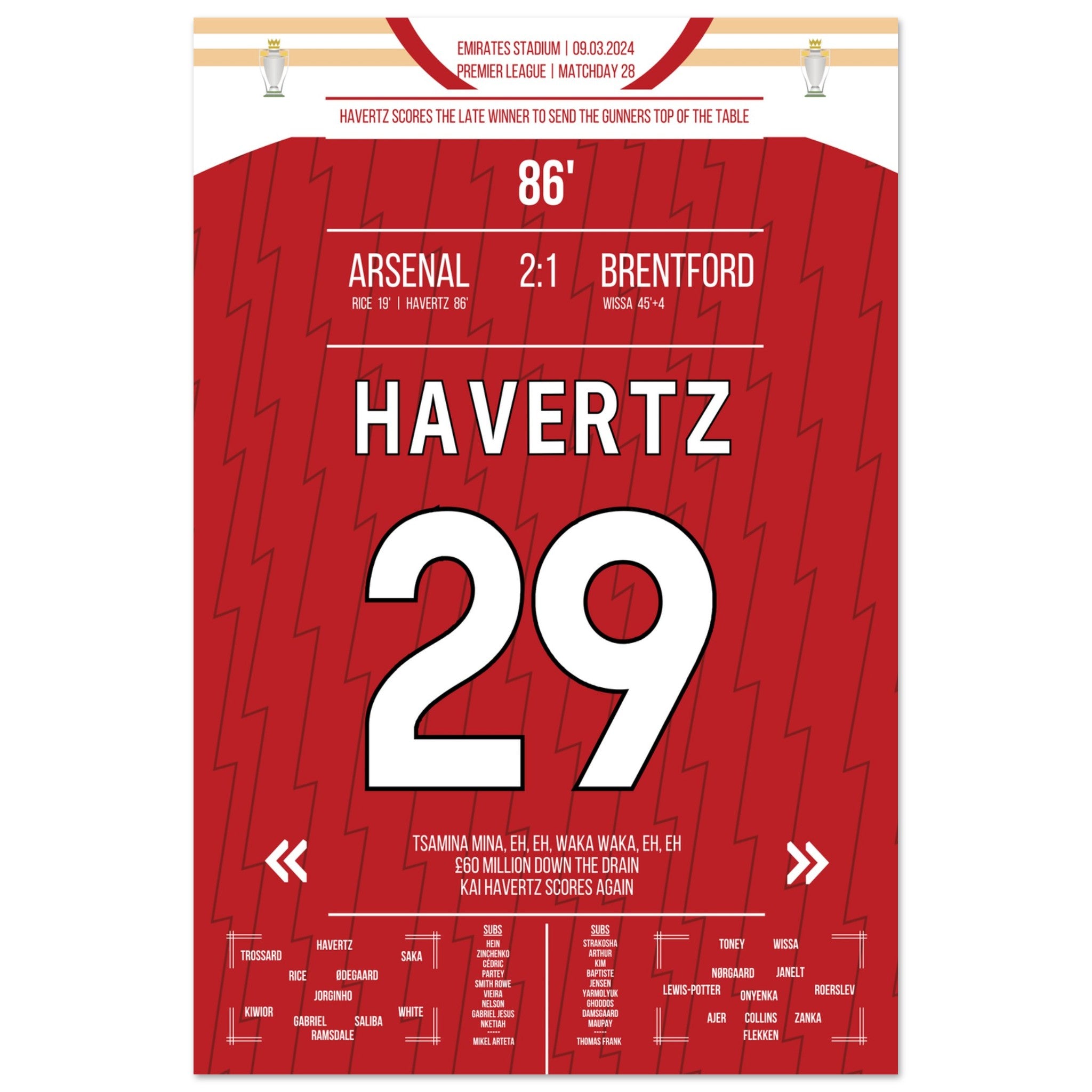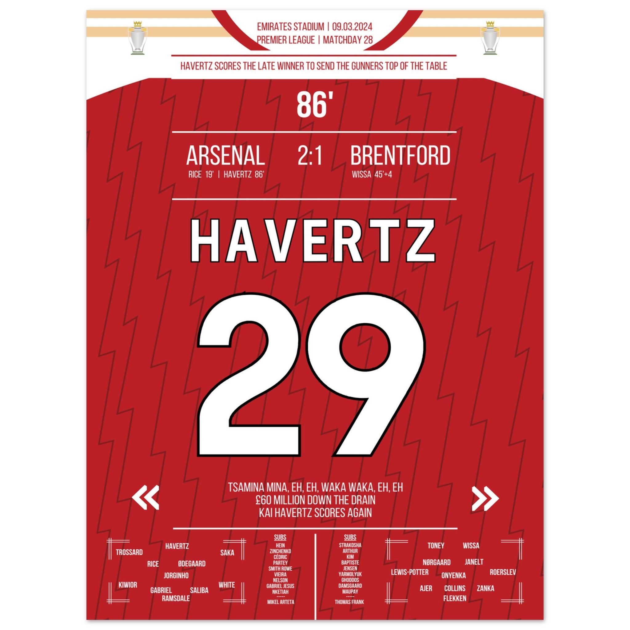 Havertz schießt die Gunners mit spätem Siegtreffer an die Tabellenspitze