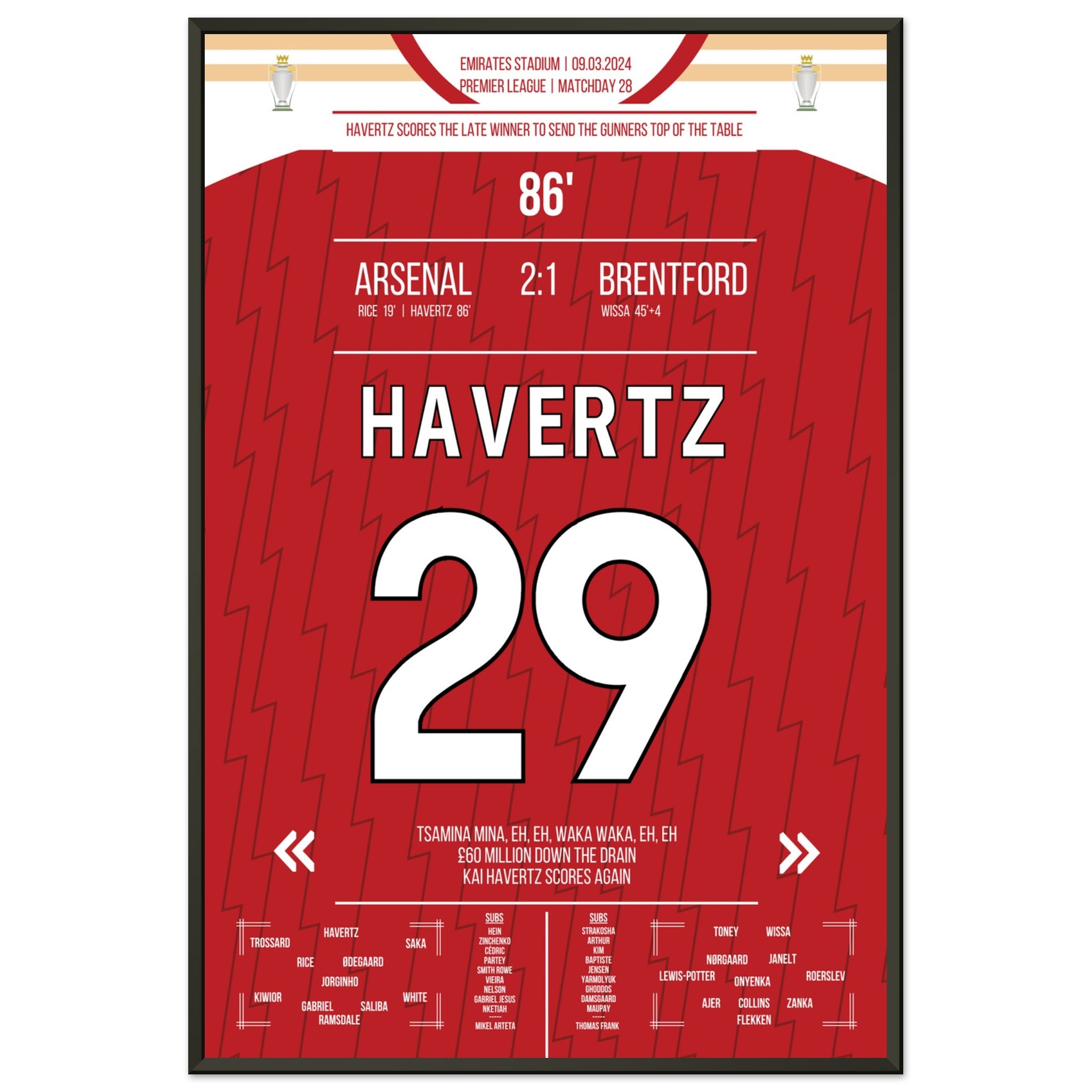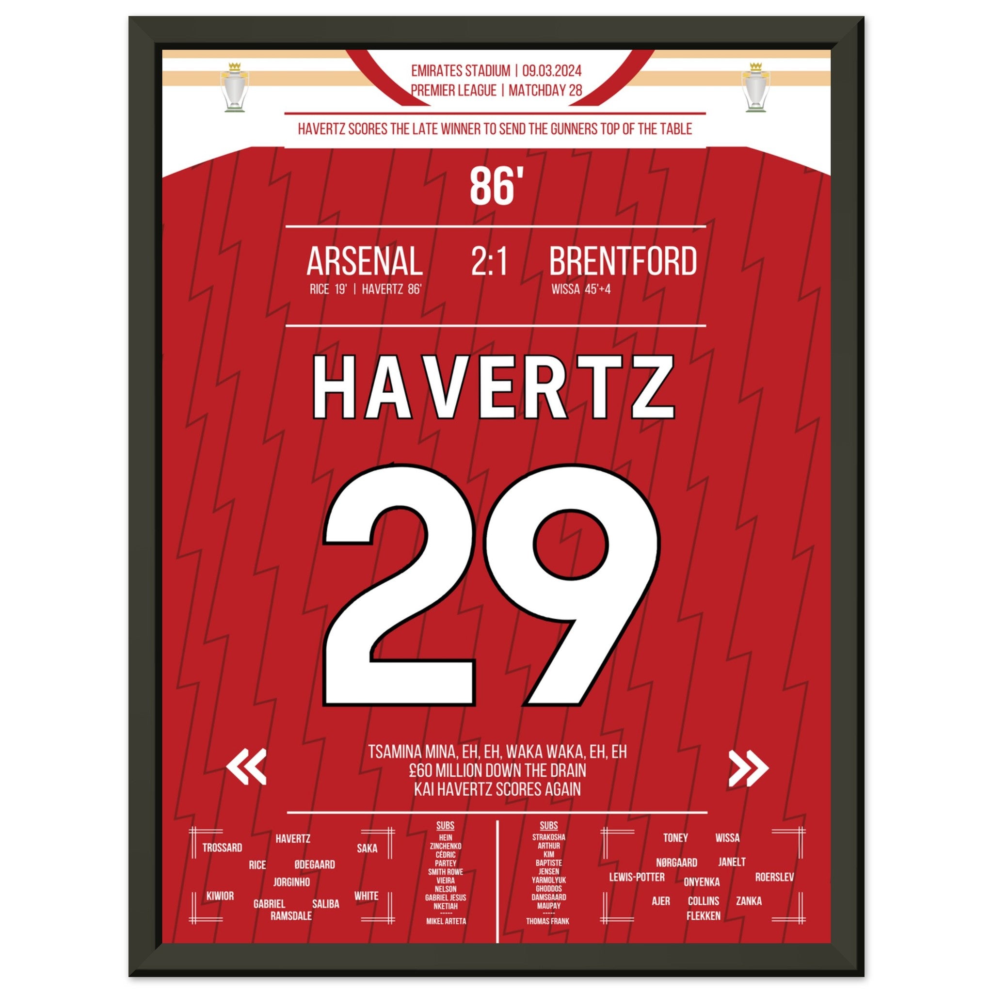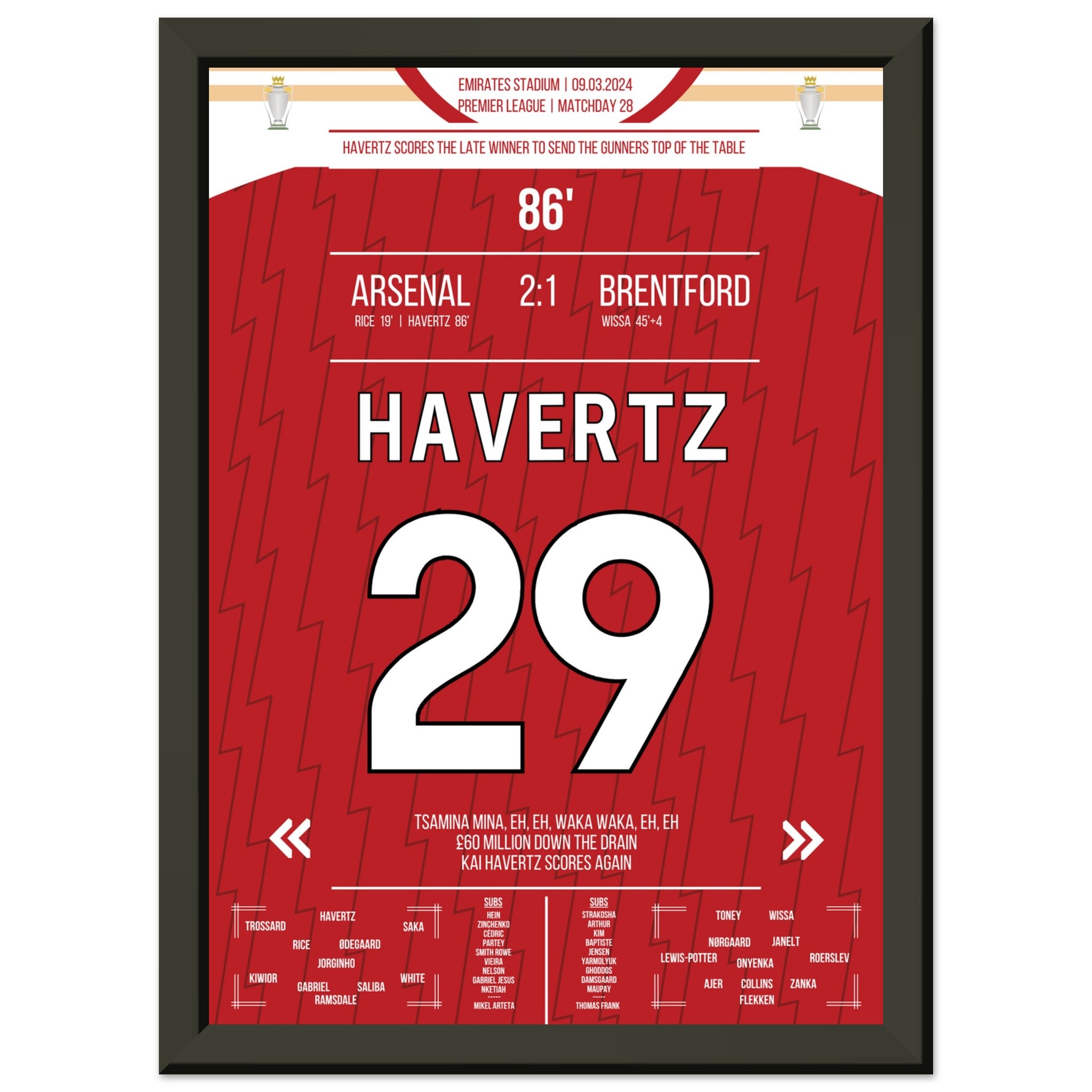 Hier kommt unser Premium-Druck dieses unvergesslichen Fußballmoments für das ultimative Fan-Erlebnis. Gedruckt auf schwerem, seidenmattem Premium-Papier, glänzt dieses Kunstwerk mit verstärkten Farben und einem subtilen Glanz, der jedes Detail zum Vorschein bringt.