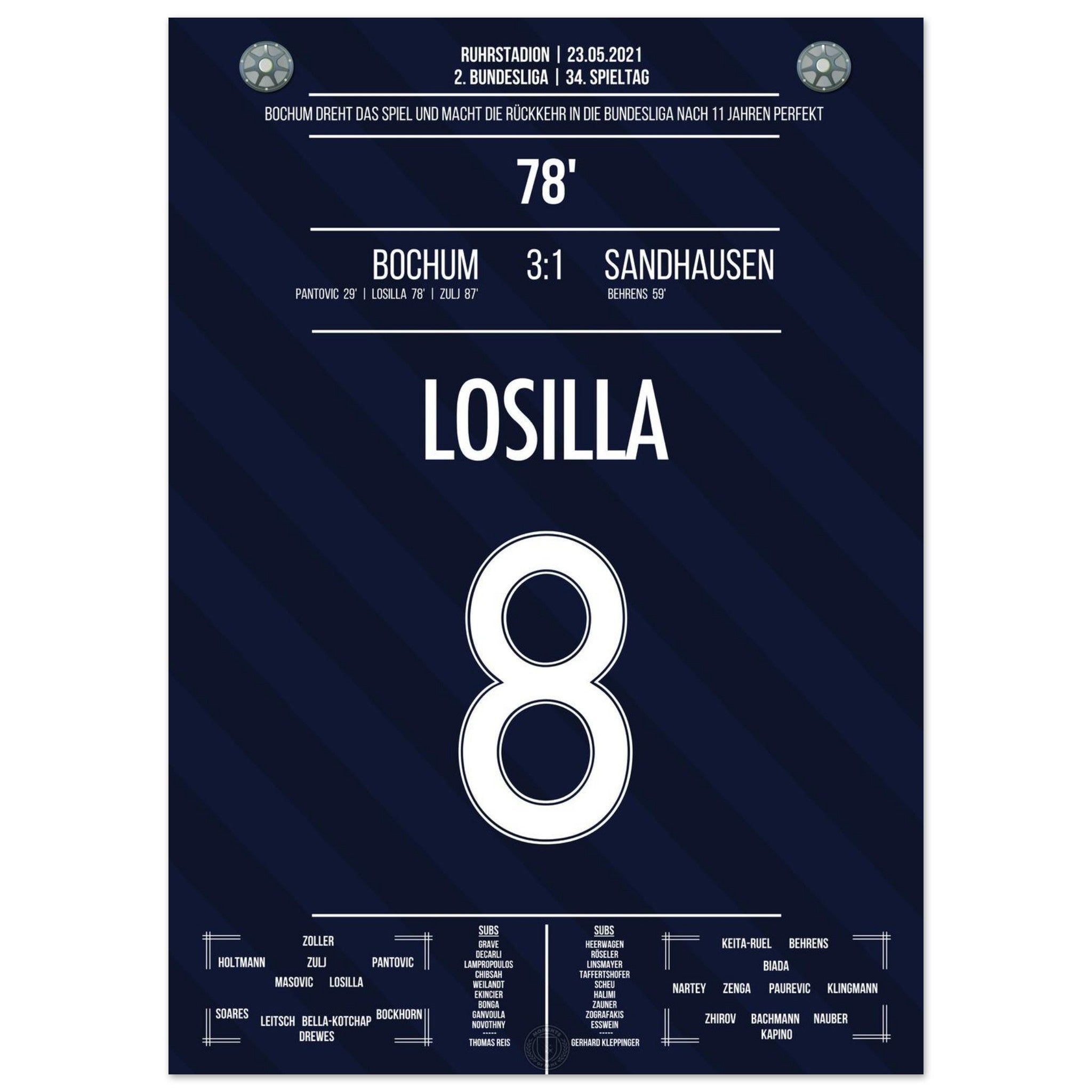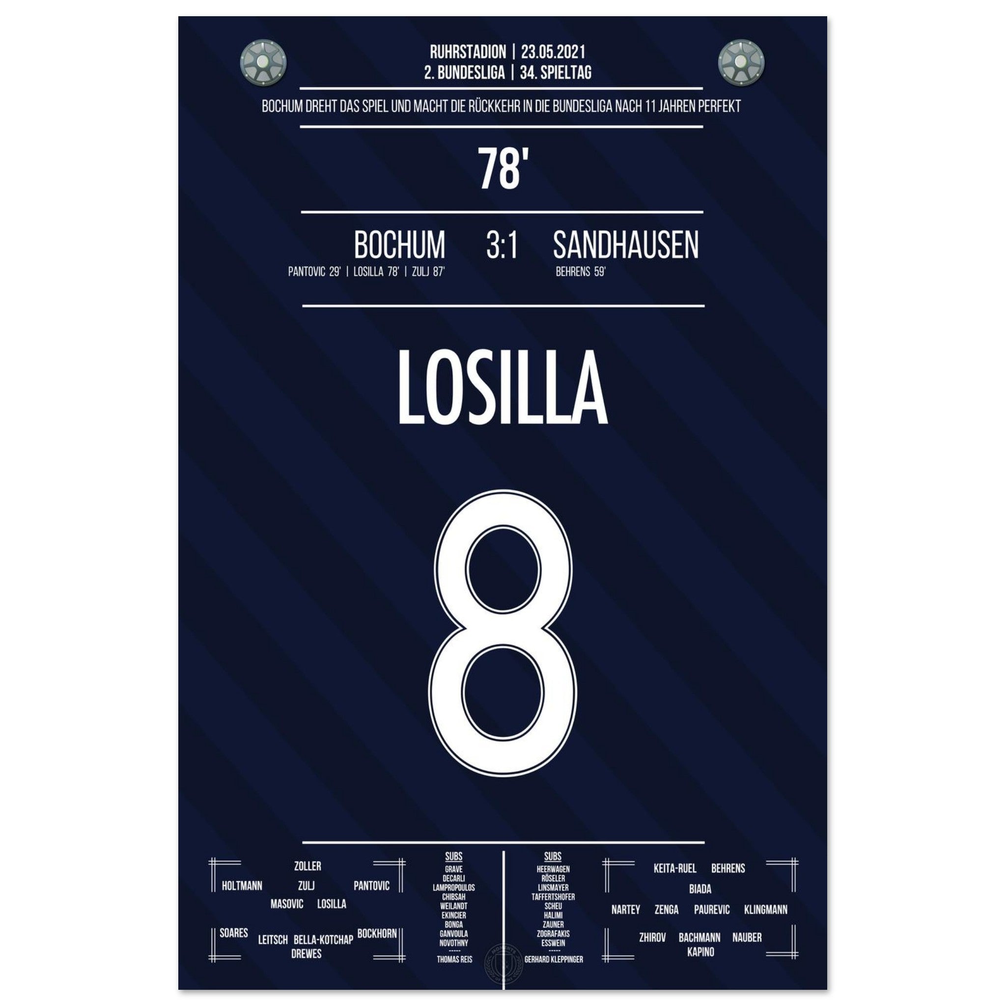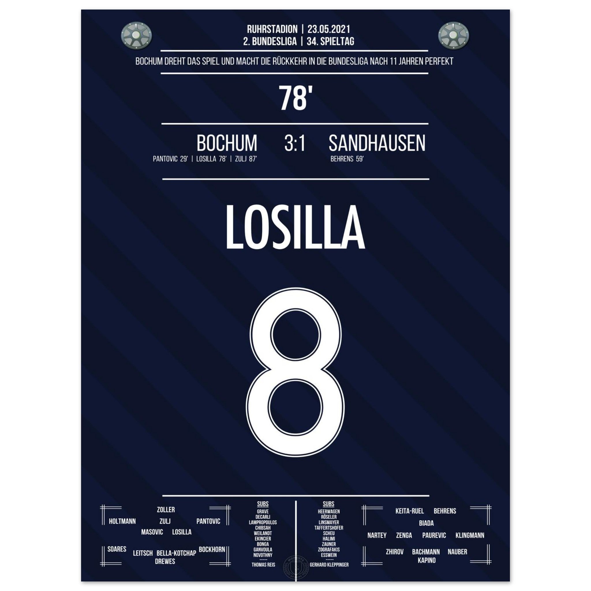 Losilla trifft in der 78. Minute und macht den Aufstieg in die Bundesliga perfekt. Mit diesem Tor endet für Bochum eine elfjährige Durststrecke – der Jubel kennt keine Grenzen!
