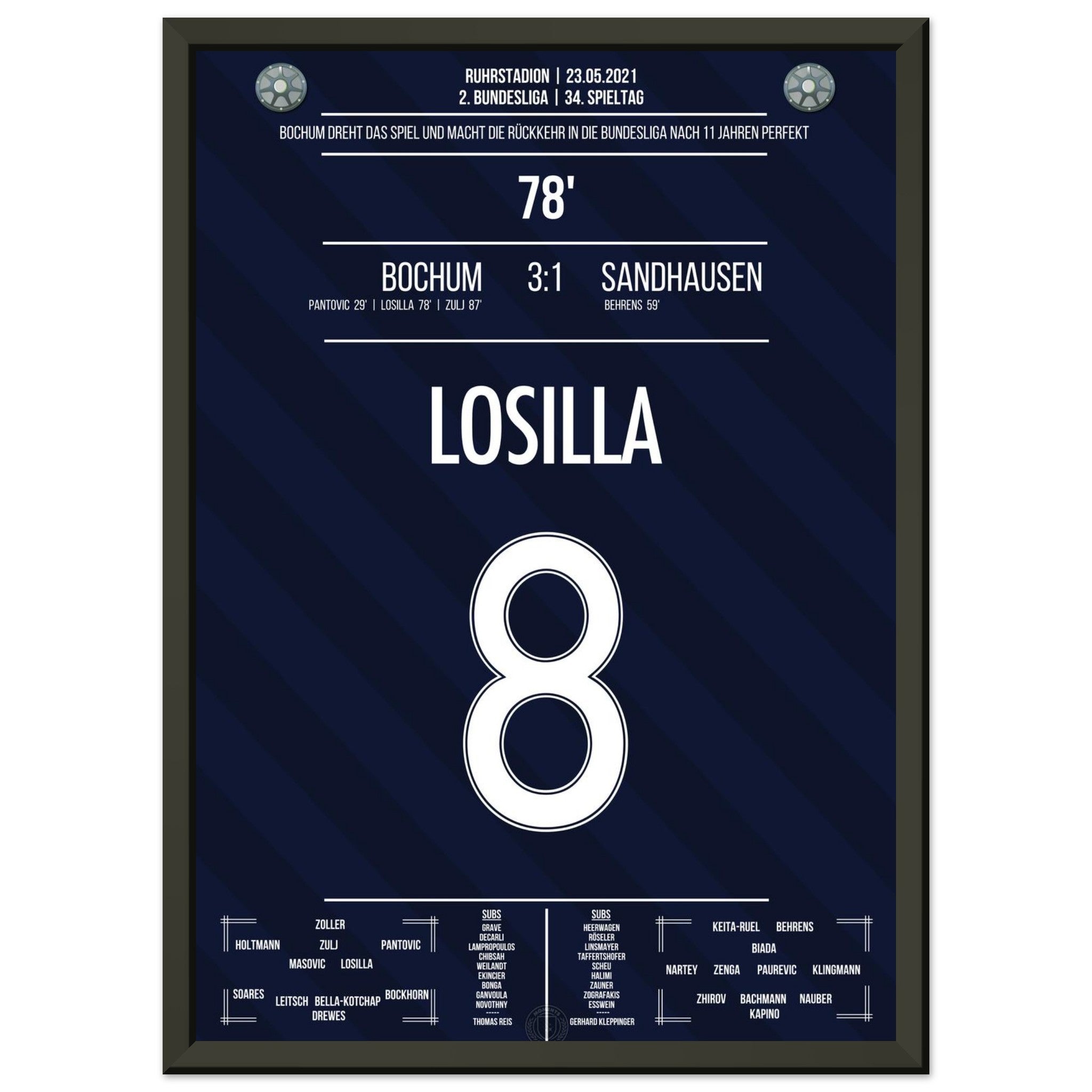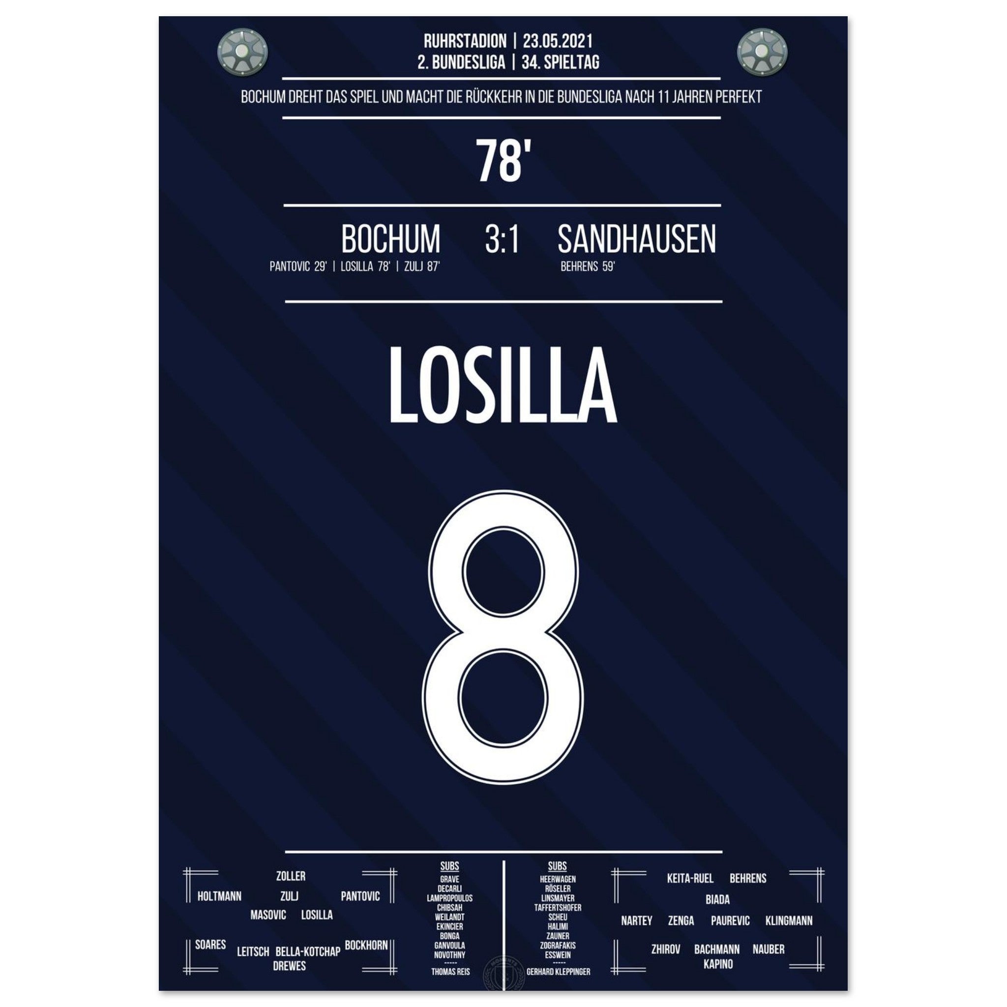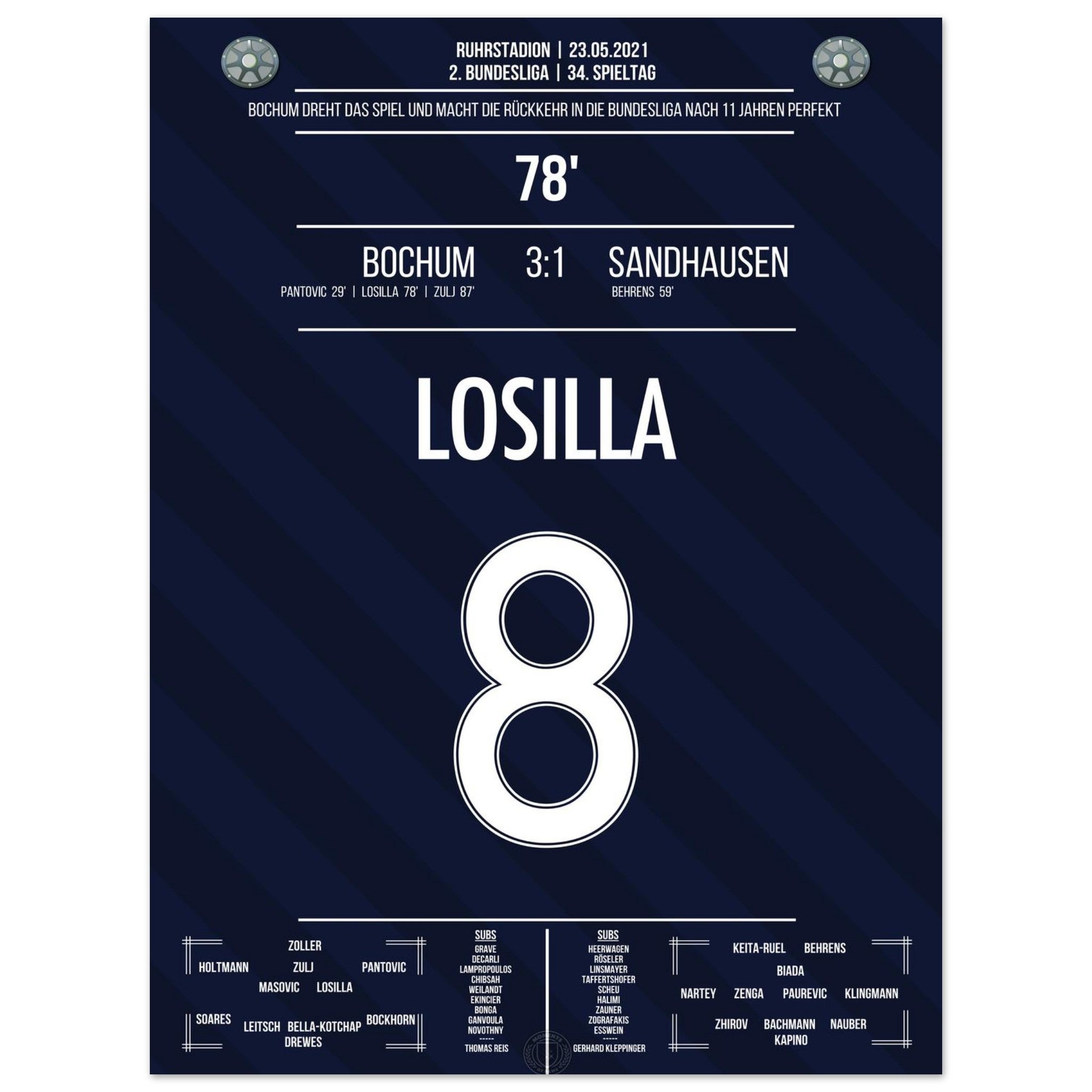Losilla trifft in der 78. Minute und macht den Aufstieg in die Bundesliga perfekt. Mit diesem Tor endet für Bochum eine elfjährige Durststrecke – der Jubel kennt keine Grenzen!