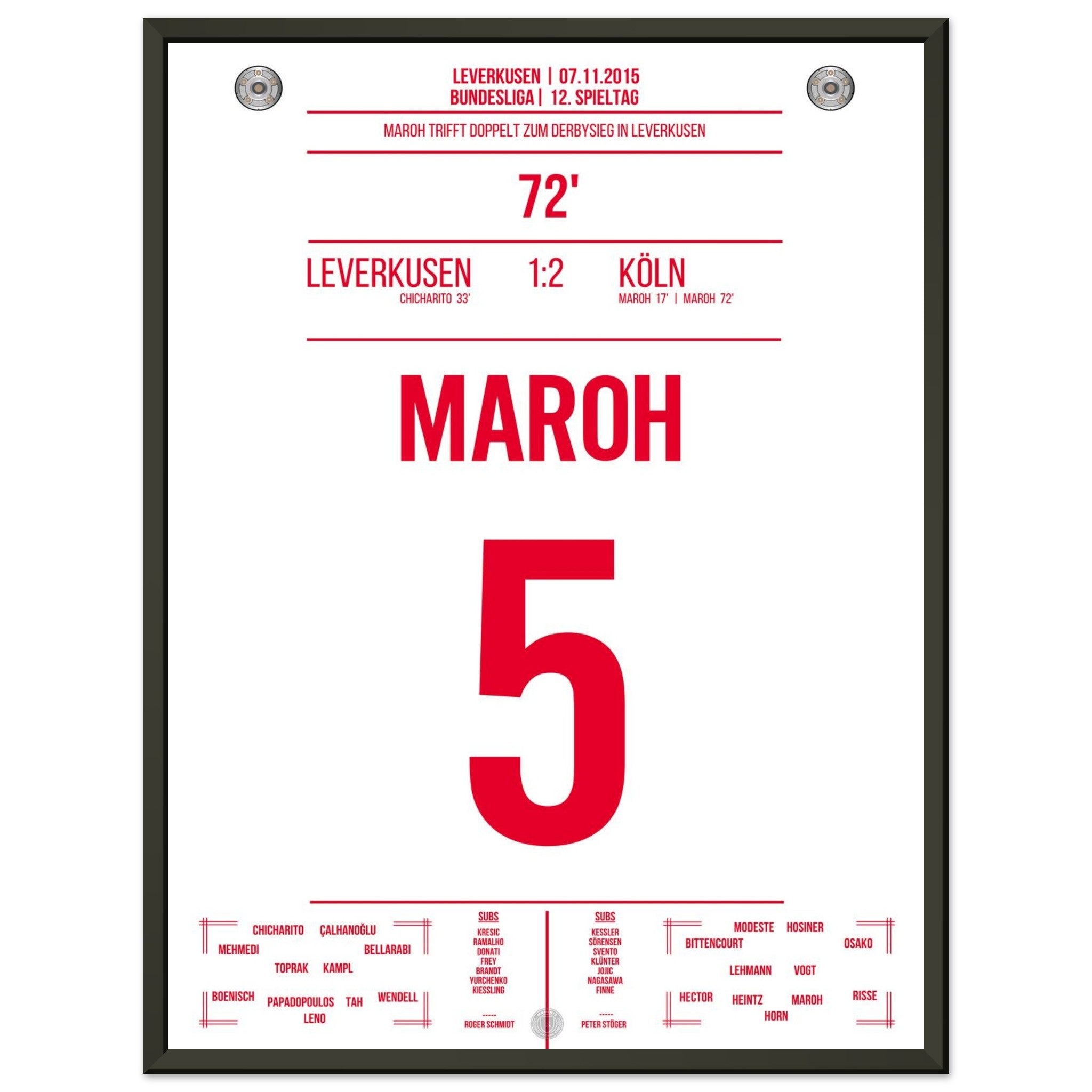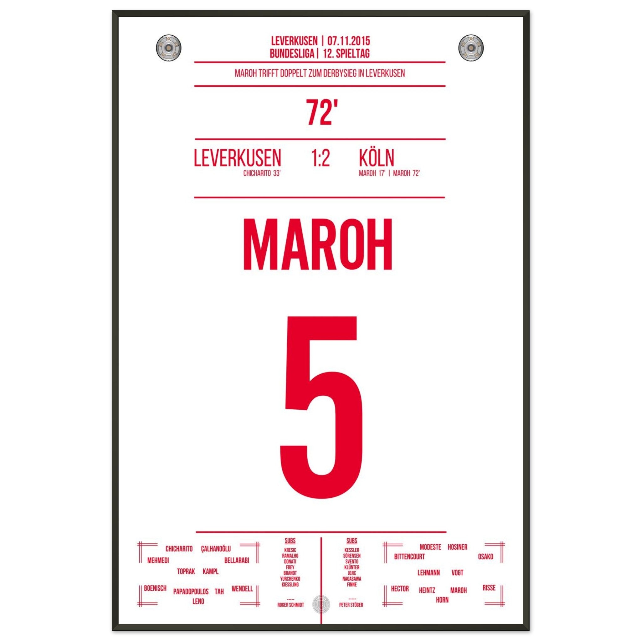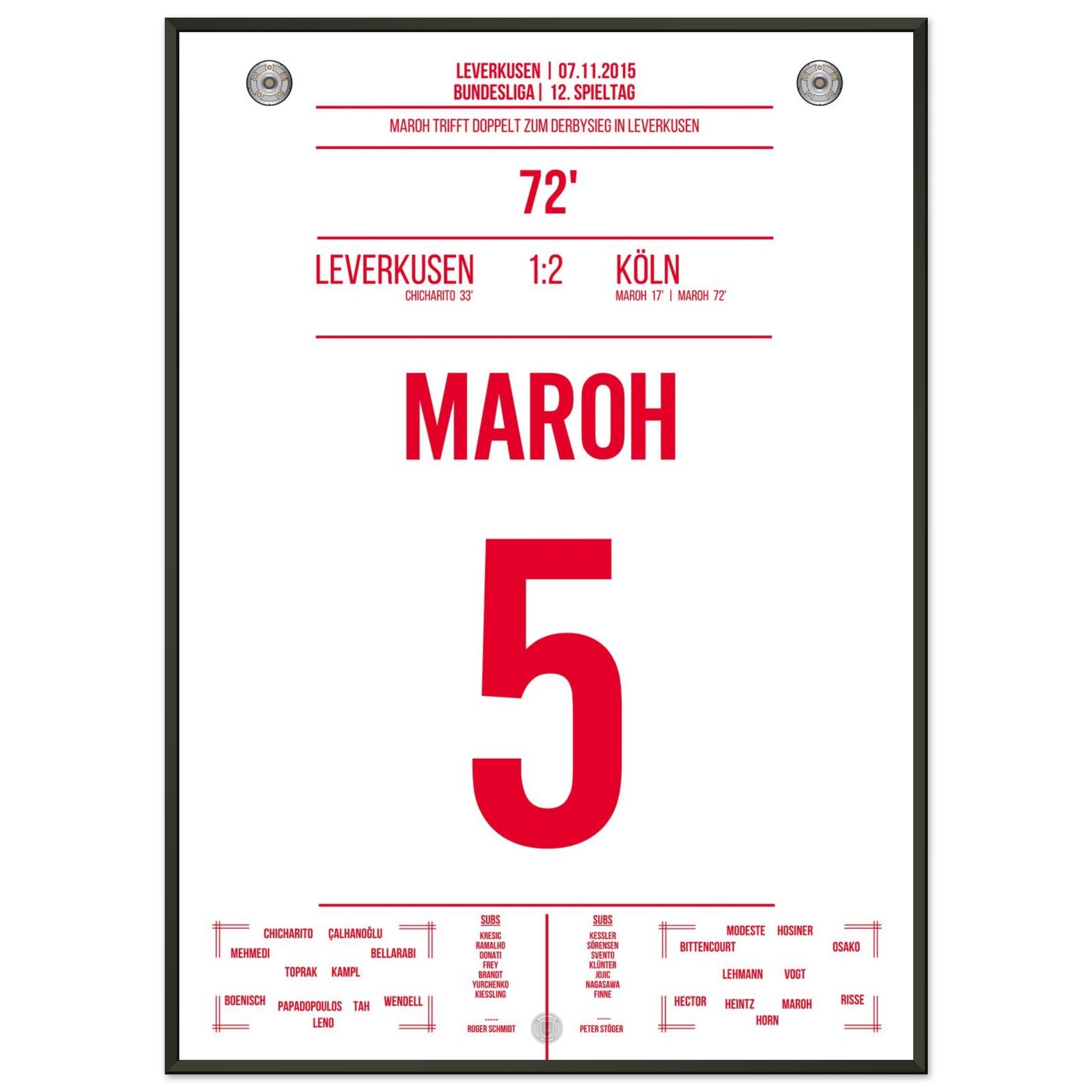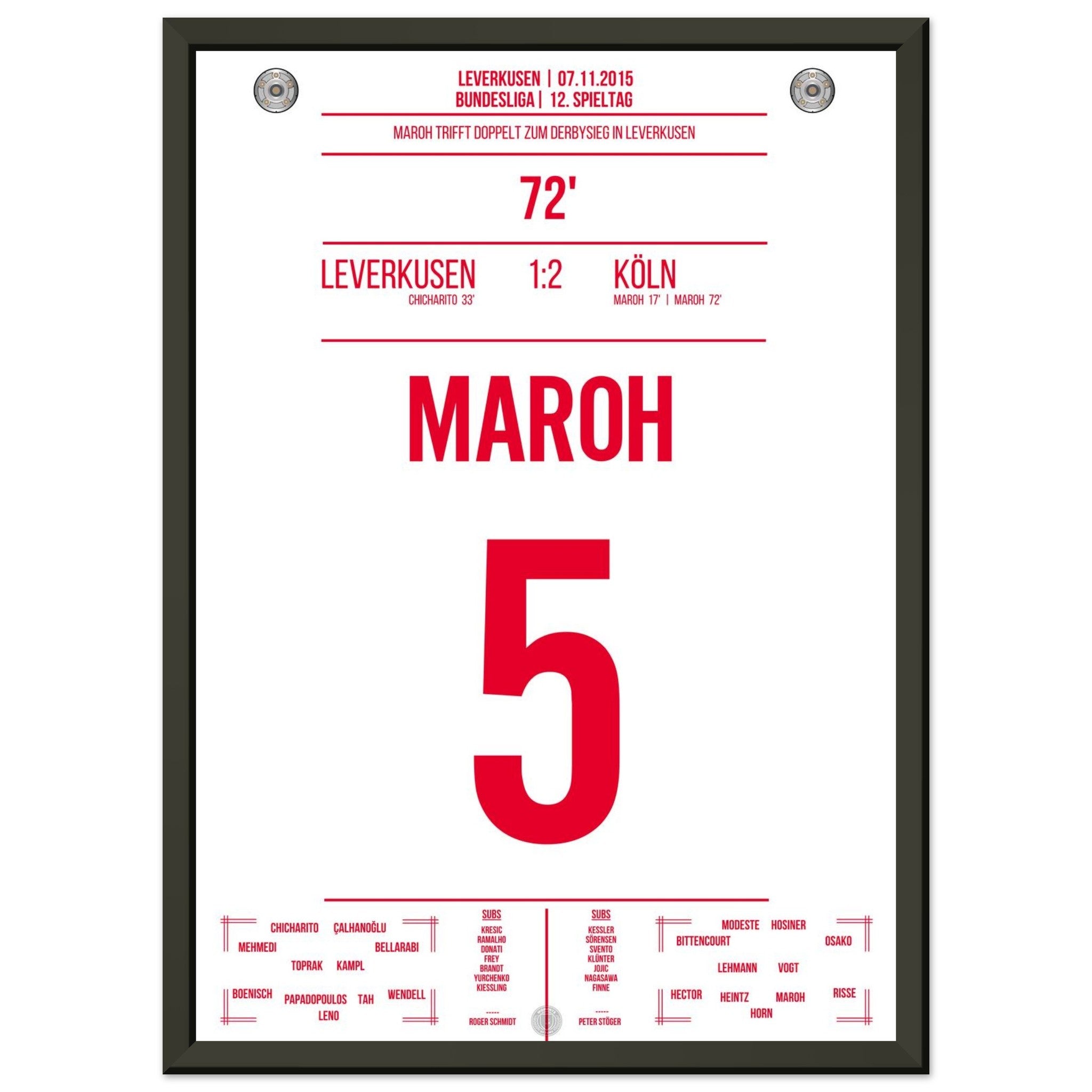 7. November 2015 – Leverkusen vs. Köln 1:2: In der 72. Minute trifft Dominique Maroh nach einem Eckball zur Führung und entscheidet das umkämpfte Rheinderby für den FC. Ein Sieg voller Emotionen und Derby-Feuer. Unser Poster hält diesen unvergesslichen Moment in Rot-Weiß fest.