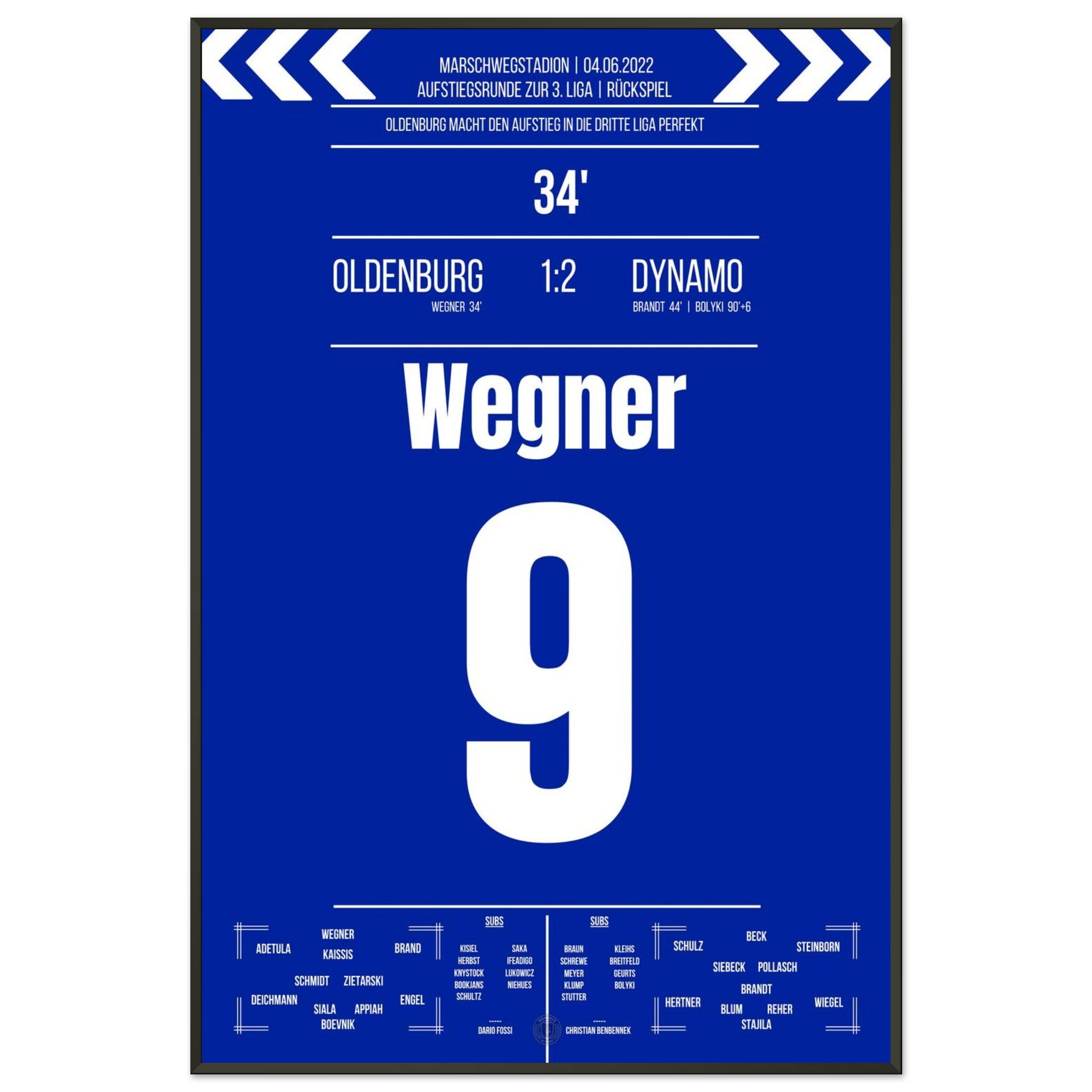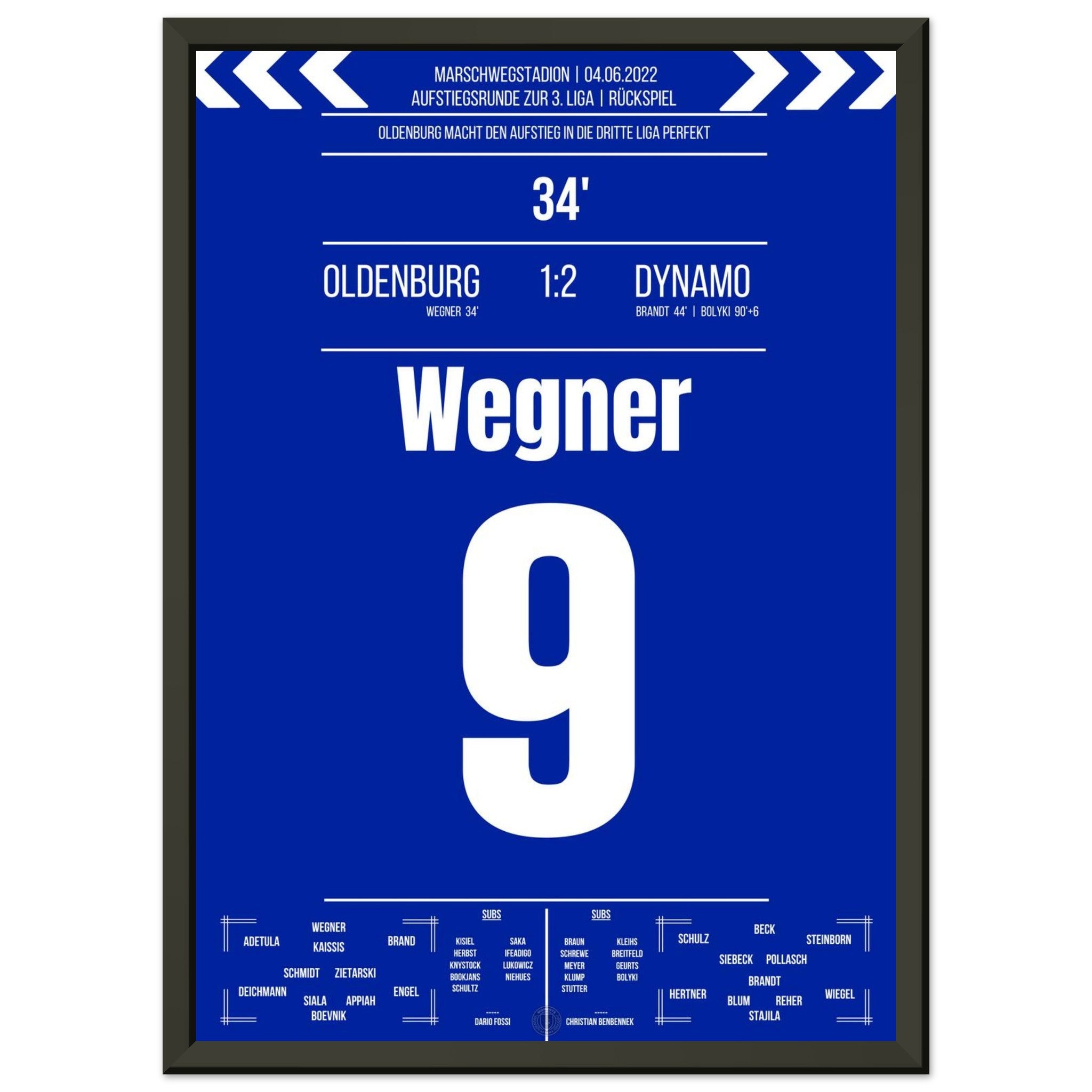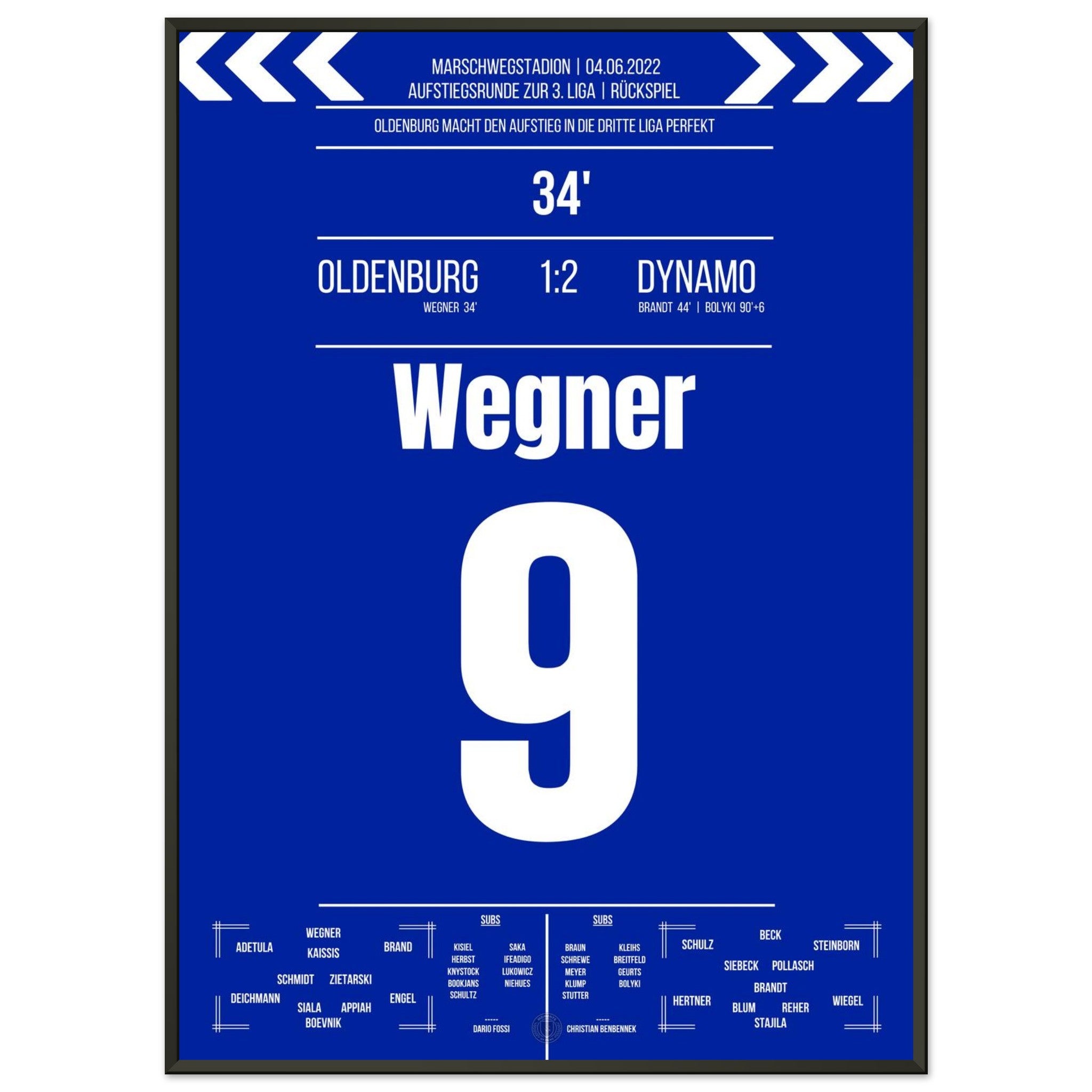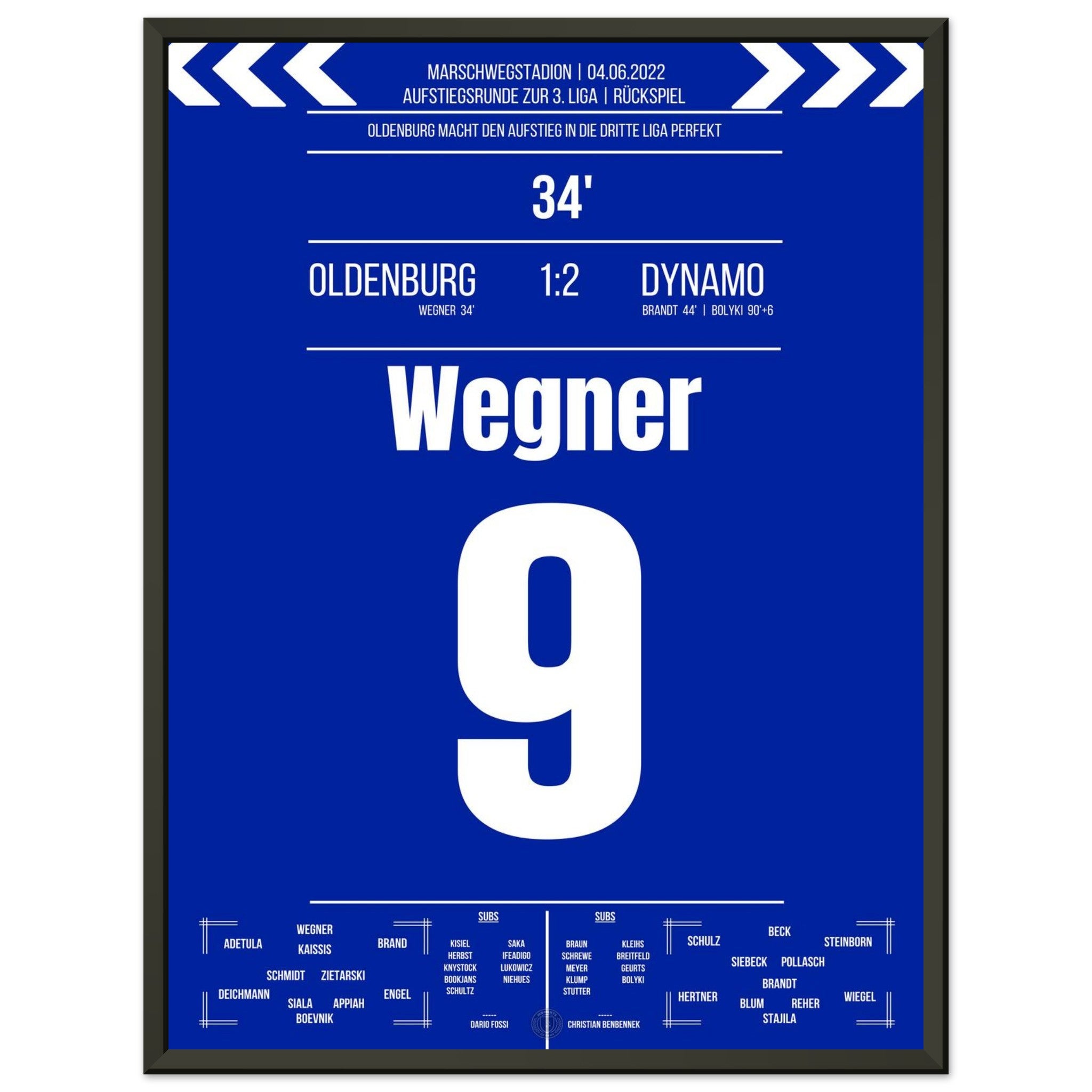 4. Juni 2022 – Oldenburg vs. Dynamo 1:2: Mit einem leidenschaftlichen Auftritt macht Oldenburg nach 25 Jahren die Rückkehr in den Profifußball perfekt. Der Jubel nach dem Abpfiff kennt keine Grenzen – ganz Oldenburg feiert den Aufstieg in die 3. Liga. Unser Poster hält diesen historischen Moment für immer fest.