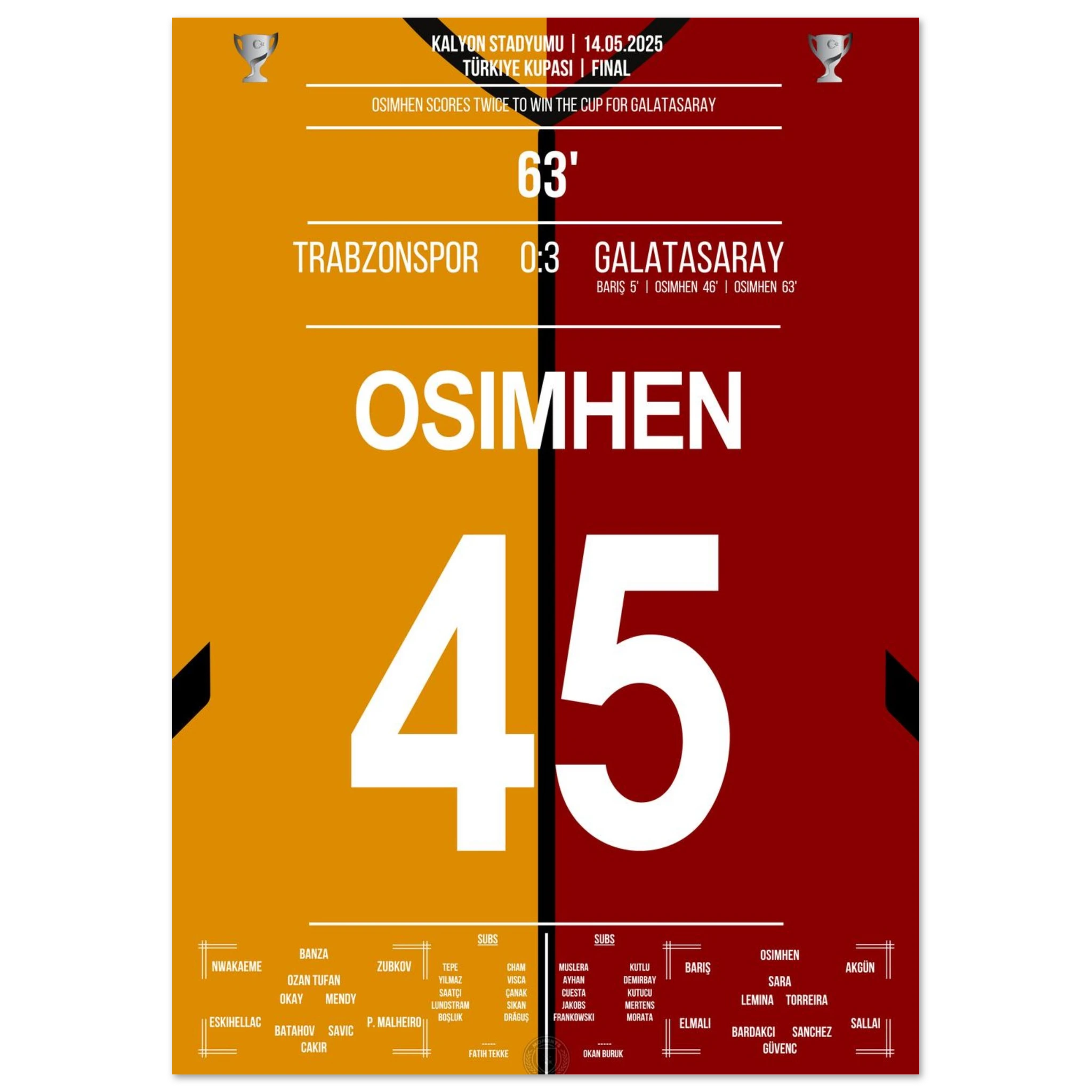 Osimhen trifft doppelt und schiesst Galatasaray zum Pokalsieg