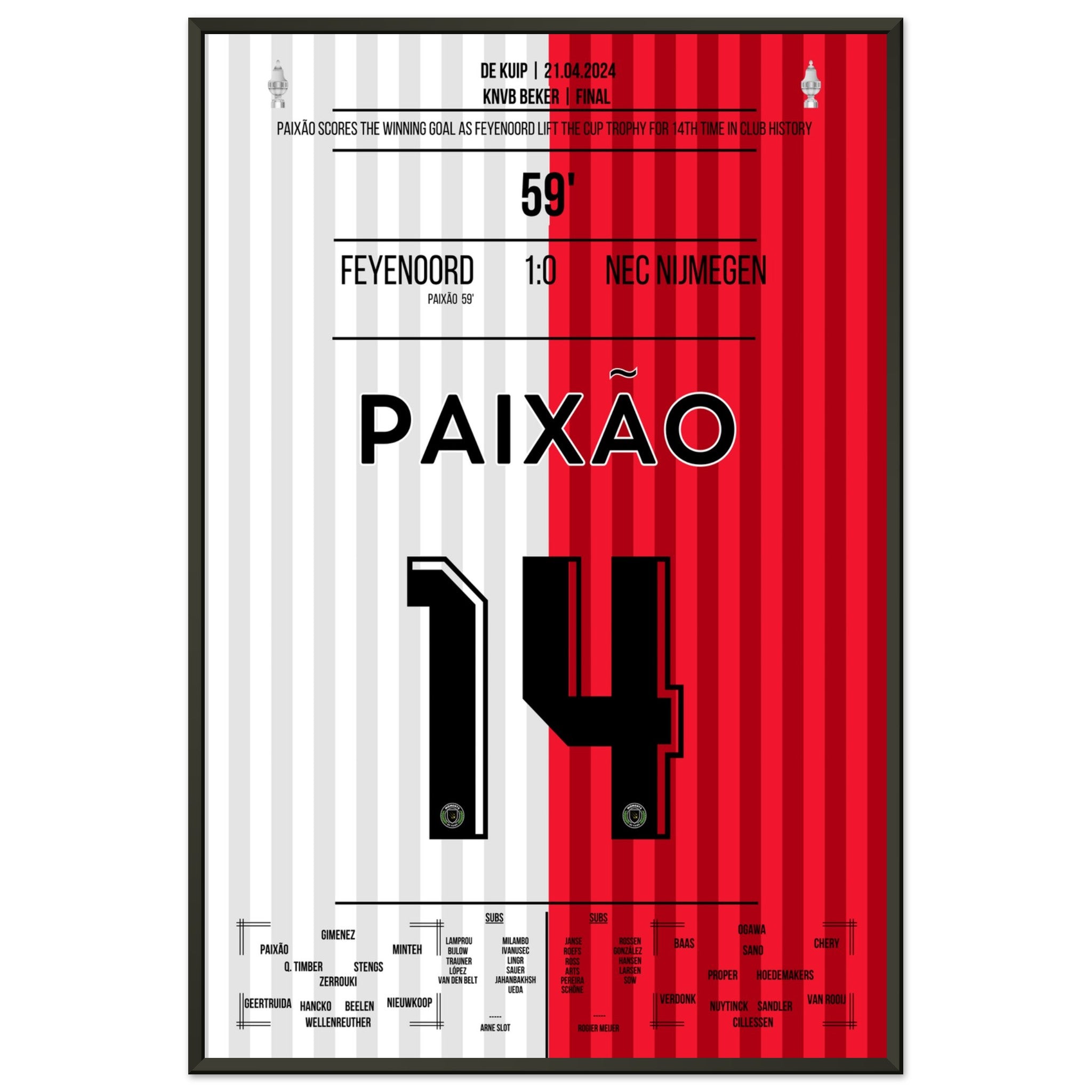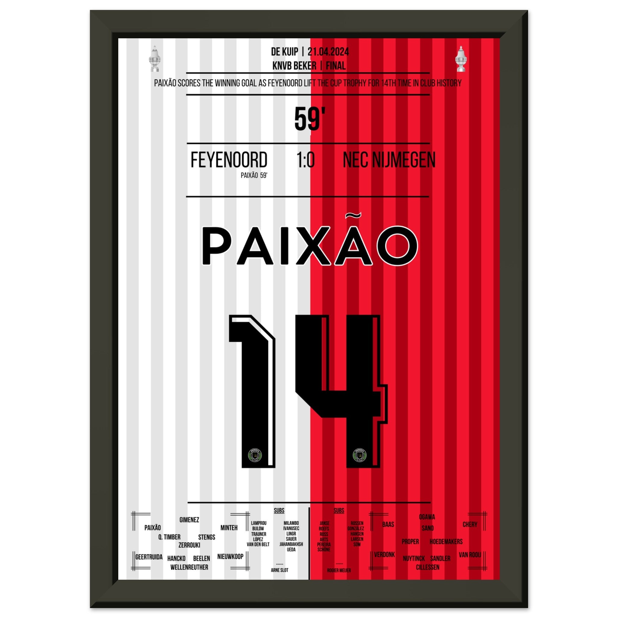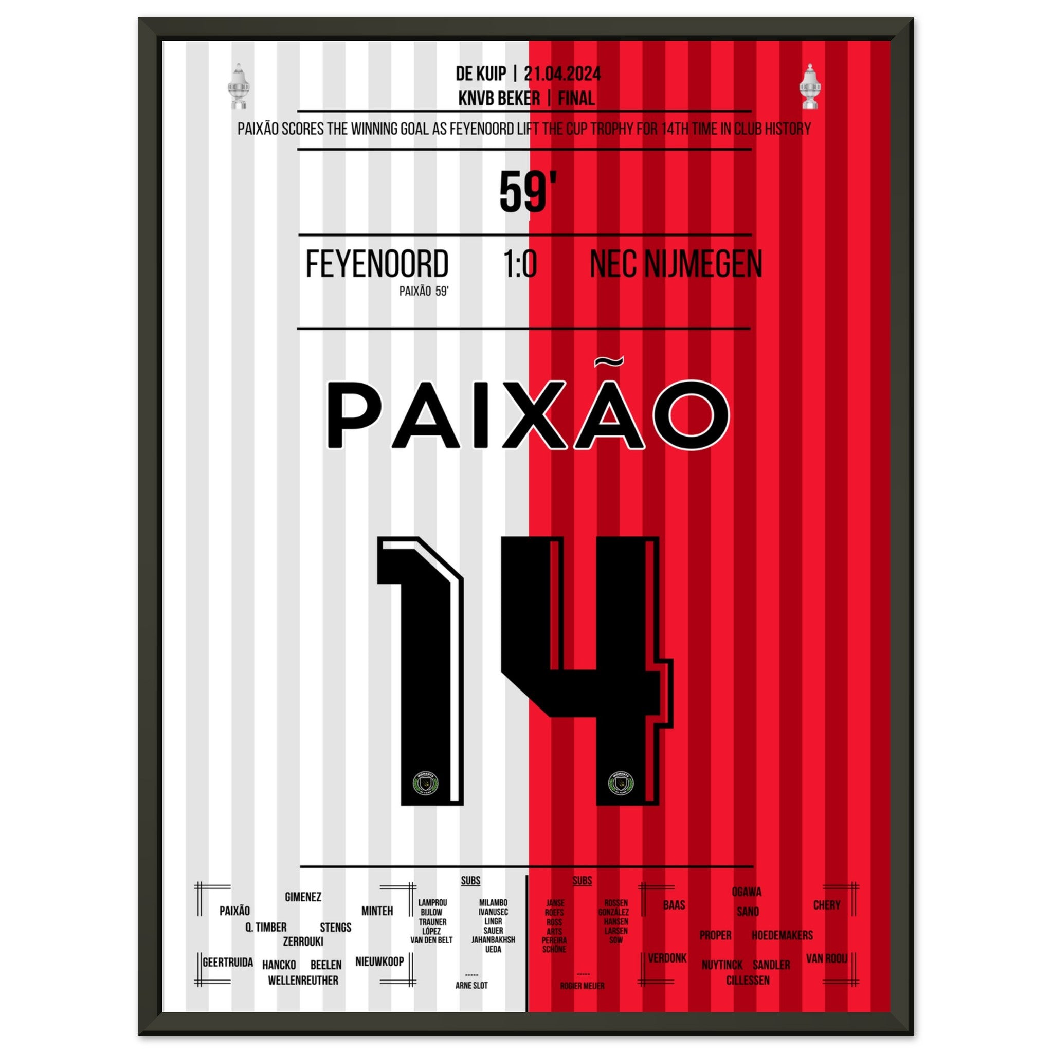 Hier kommt unser Premium-Druck dieses unvergesslichen Fußballmoments für das ultimative Fan-Erlebnis. Gedruckt auf schwerem, seidenmattem Premium-Papier, glänzt dieses Kunstwerk mit verstärkten Farben und einem subtilen Glanz, der jedes Detail zum Vorschein bringt.
