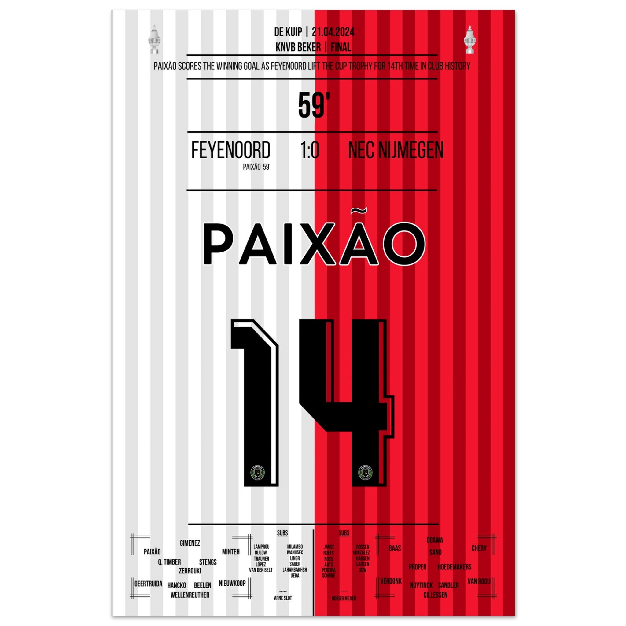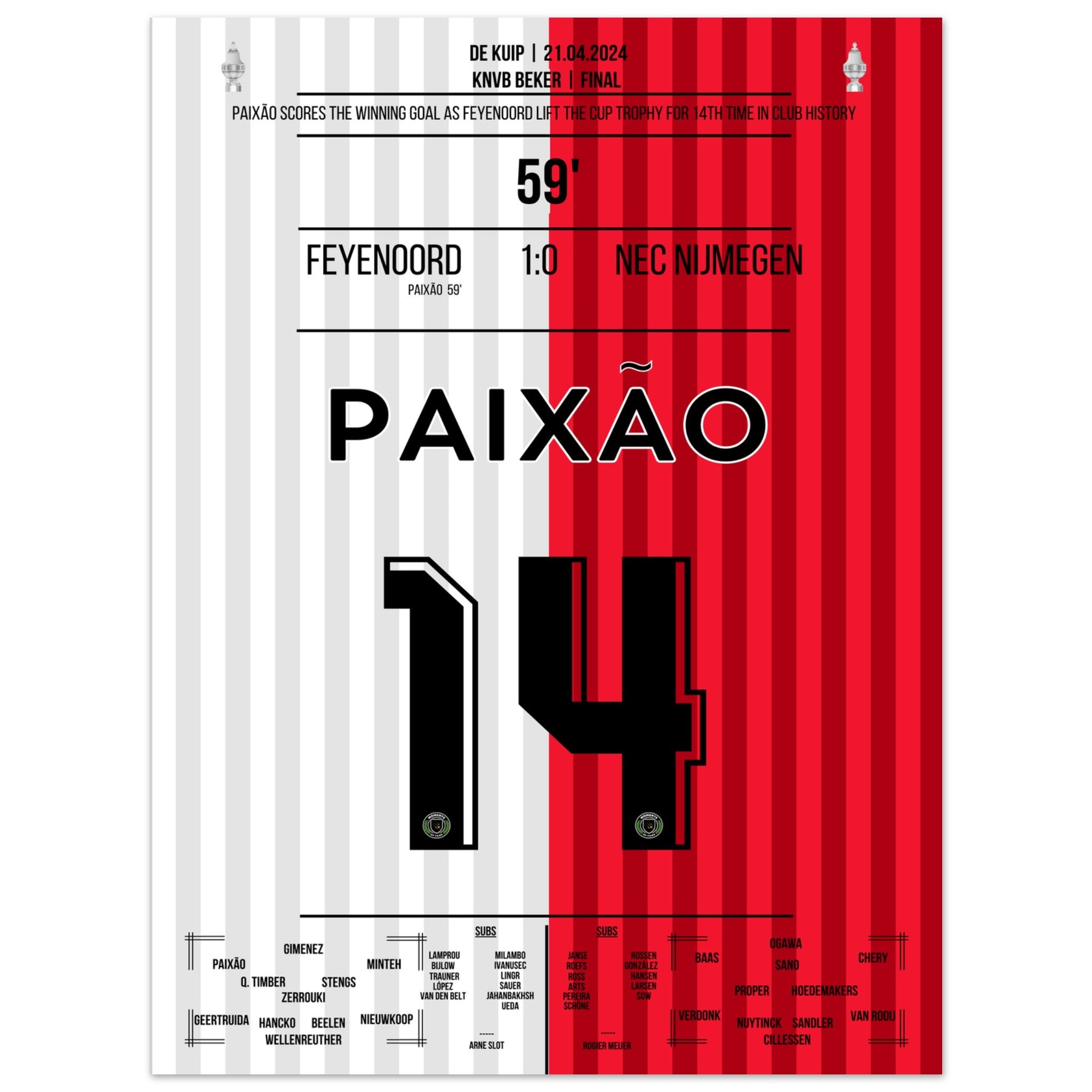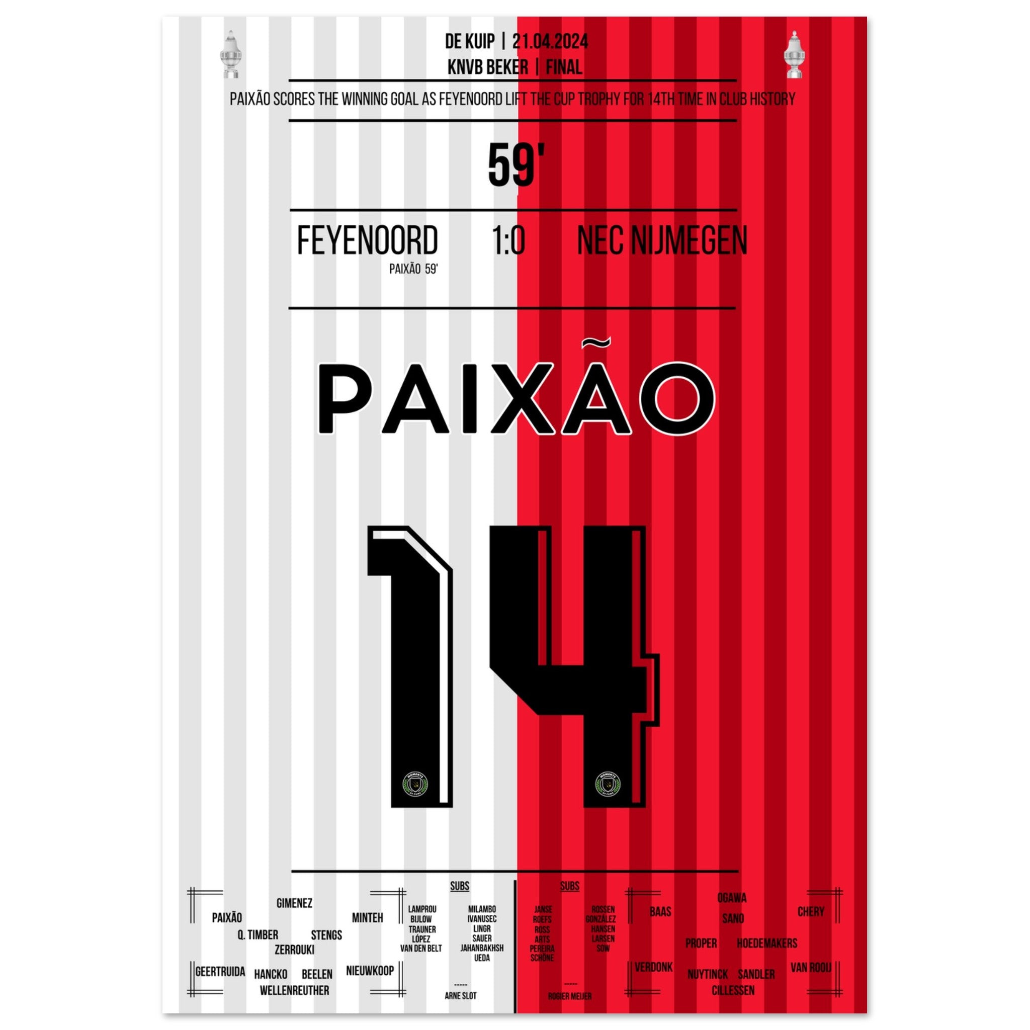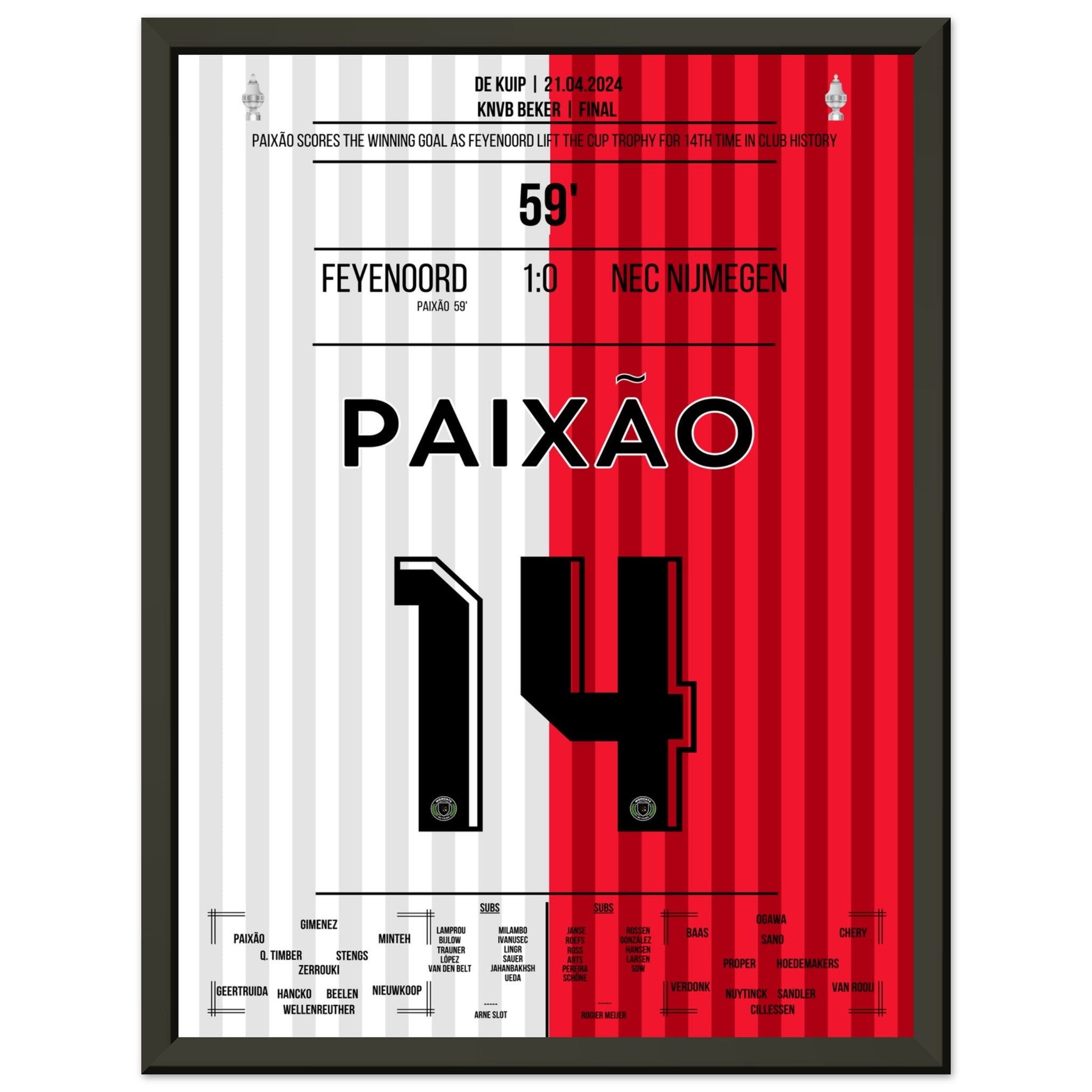 Hier kommt unser Premium-Druck dieses unvergesslichen Fußballmoments für das ultimative Fan-Erlebnis. Gedruckt auf schwerem, seidenmattem Premium-Papier, glänzt dieses Kunstwerk mit verstärkten Farben und einem subtilen Glanz, der jedes Detail zum Vorschein bringt.