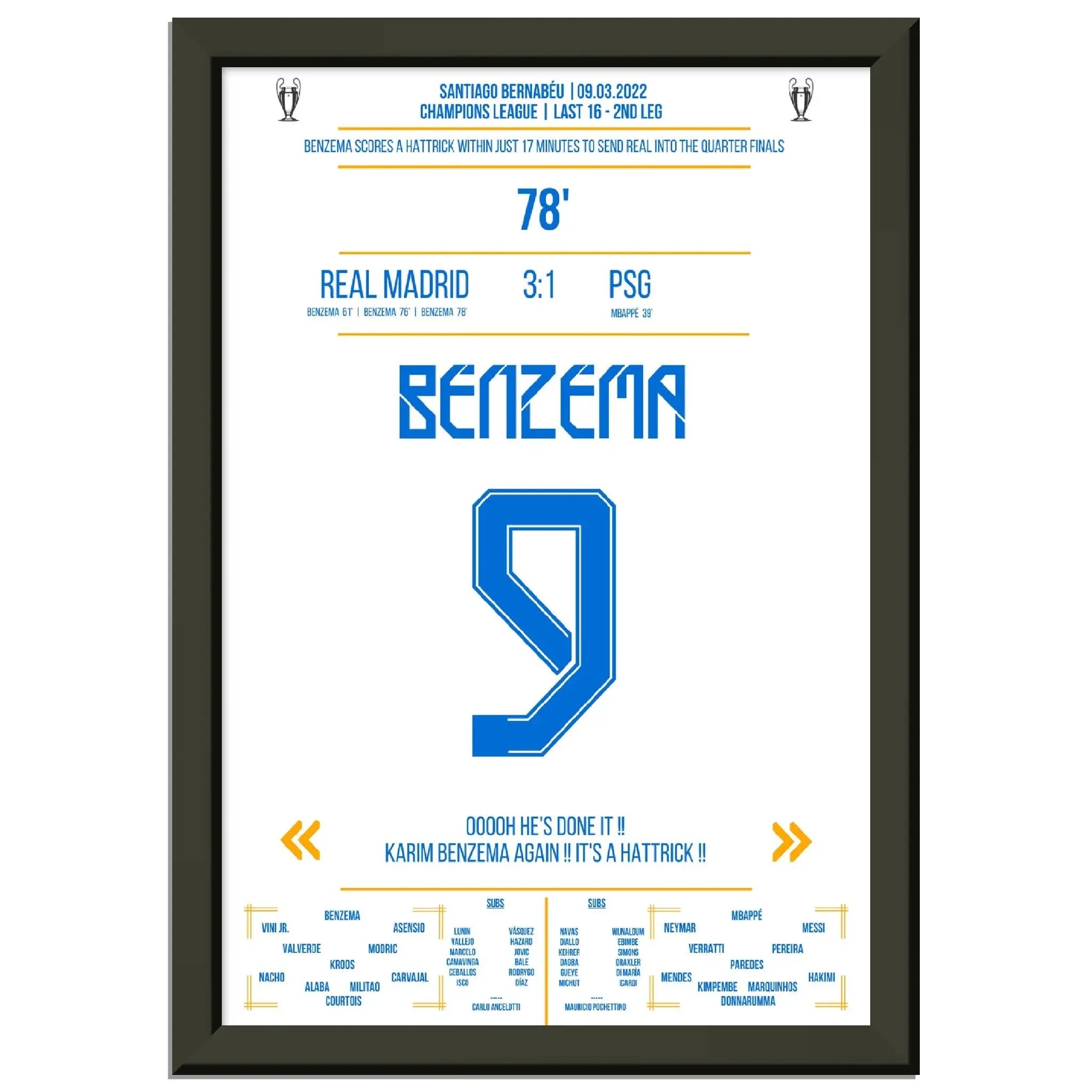Hier kommt unser Premium-Druck dieses unvergesslichen Fußballmoments für das ultimative Fan-Erlebnis. Gedruckt auf schwerem, seidenmattem Premium-Papier, glänzt dieses Kunstwerk mit verstärkten Farben und einem subtilen Glanz, der jedes Detail zum Vorschein bringt.