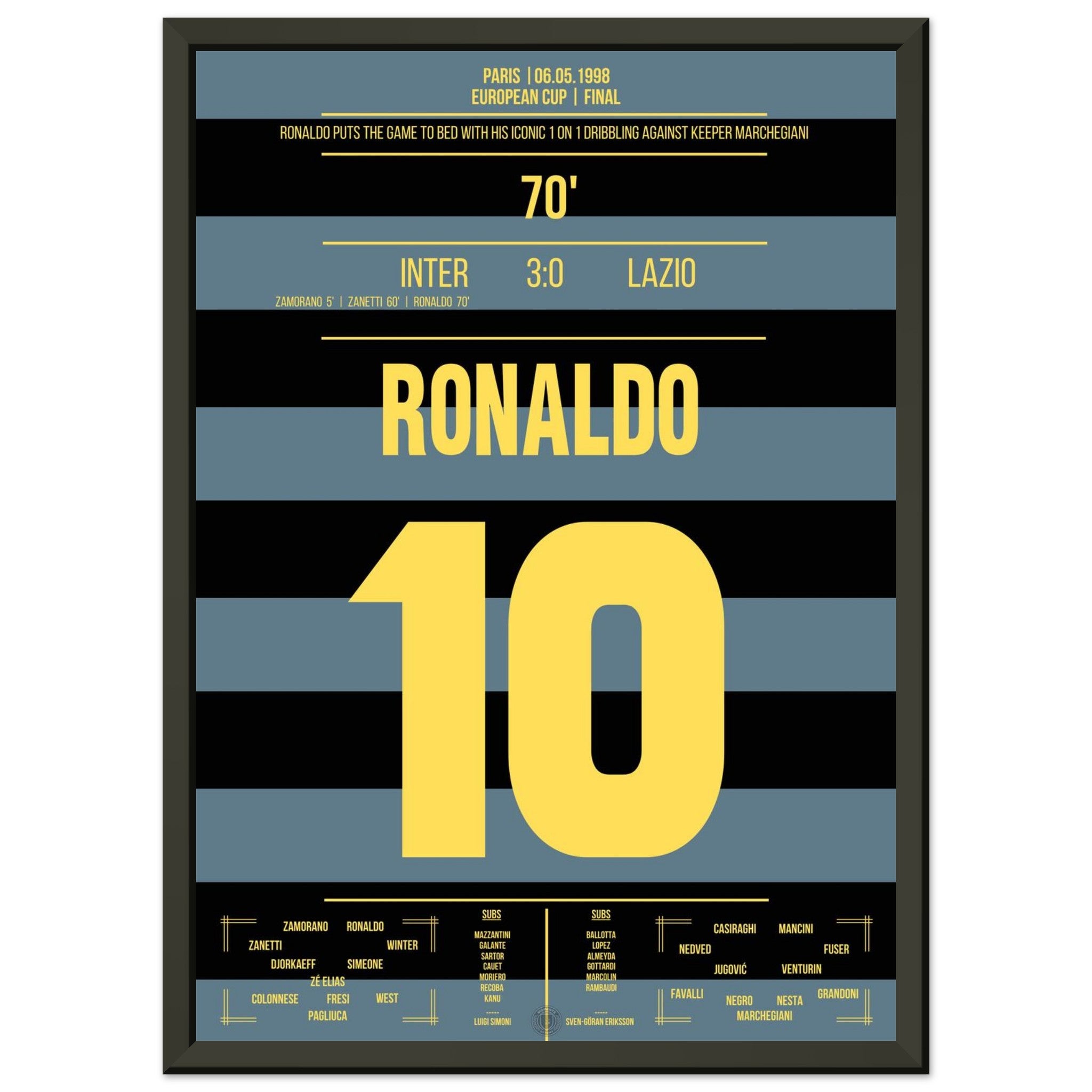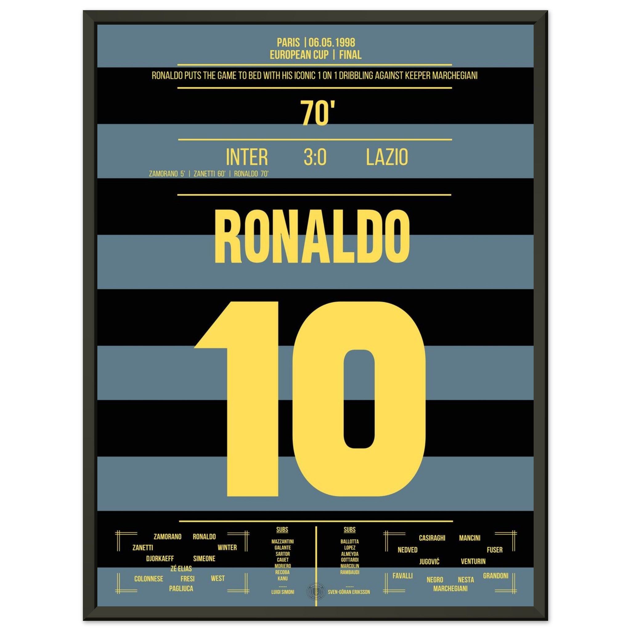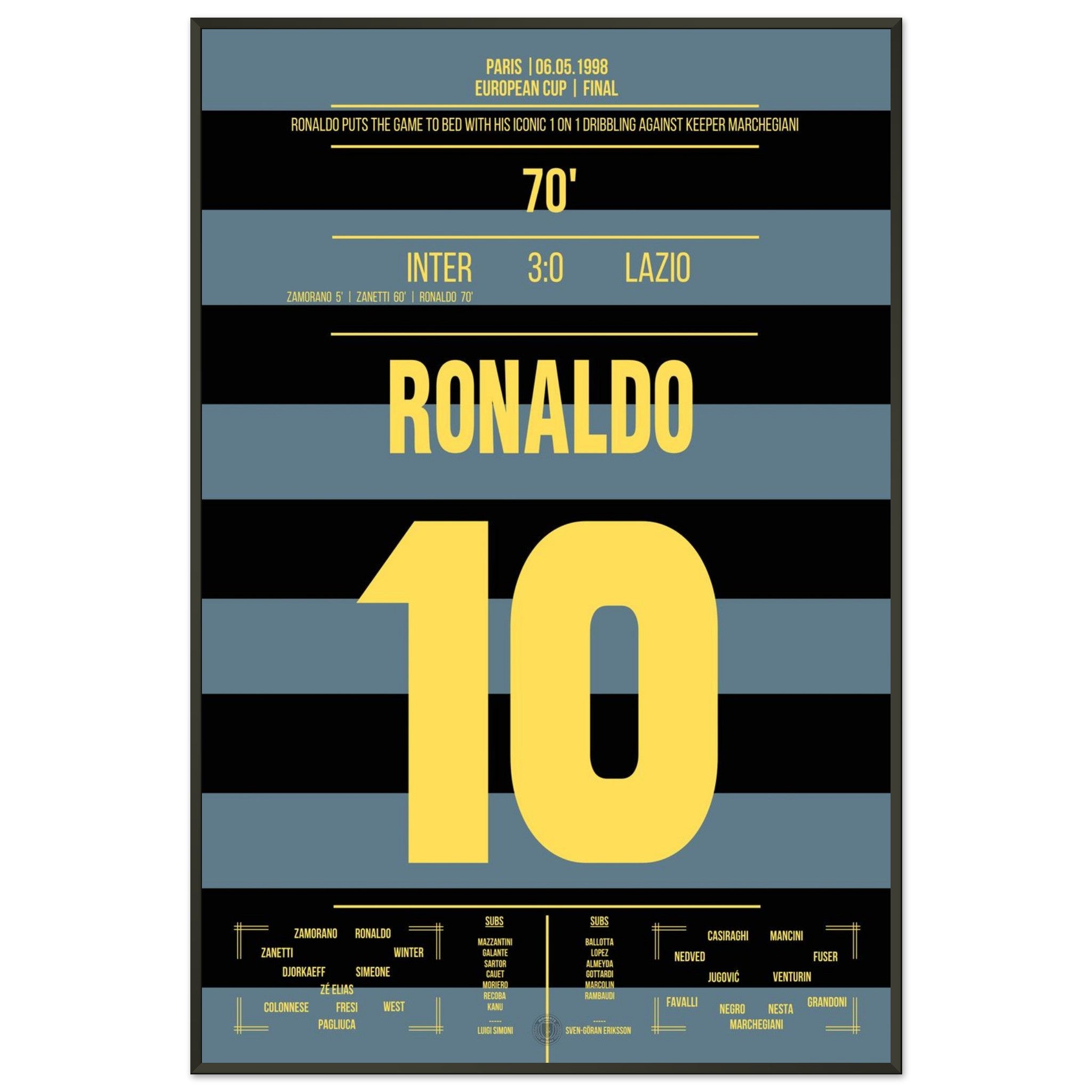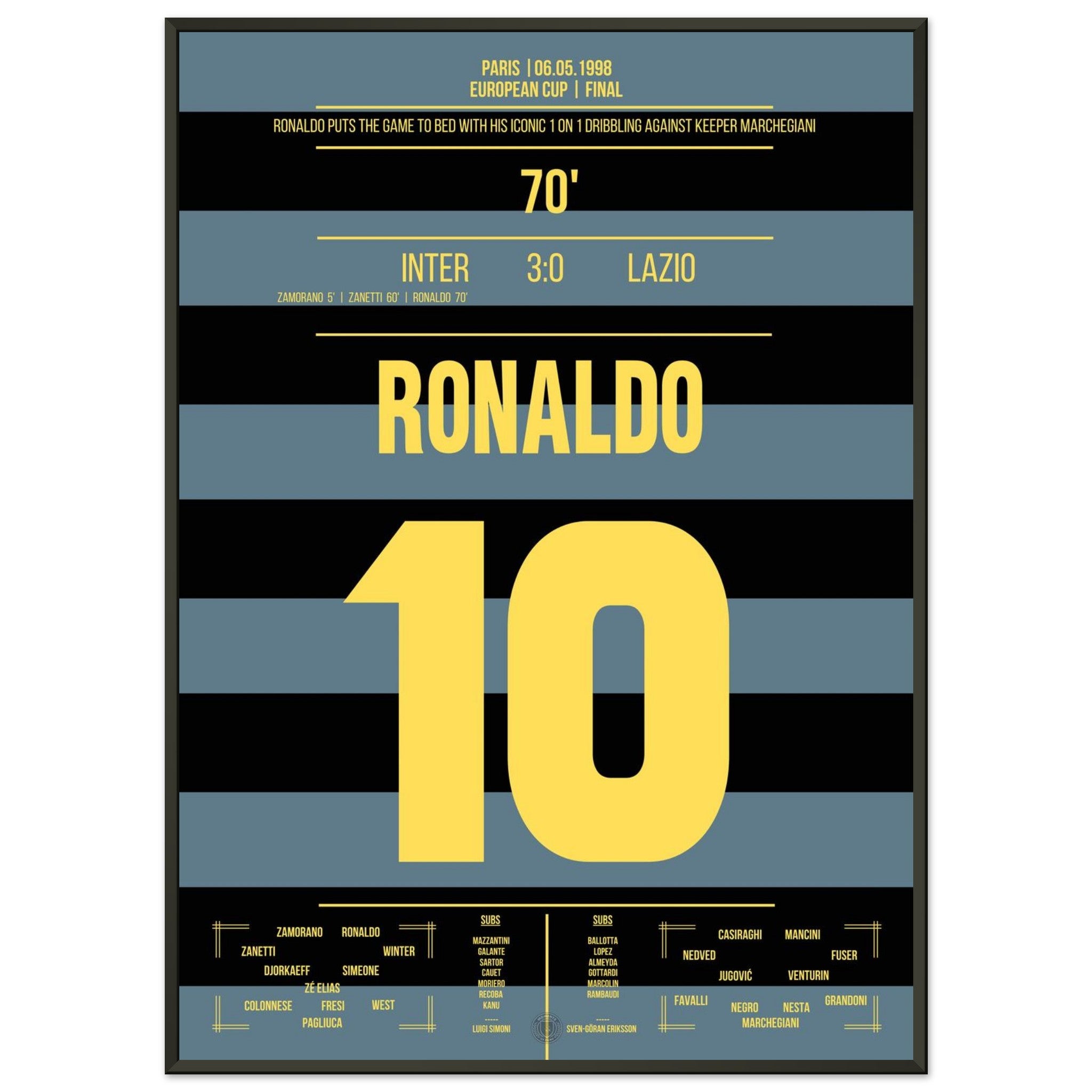 Unser Poster fängt diesen unvergesslichen Moment ein – Ronaldo in Blau-Schwarz, unaufhaltsam und göttlich.