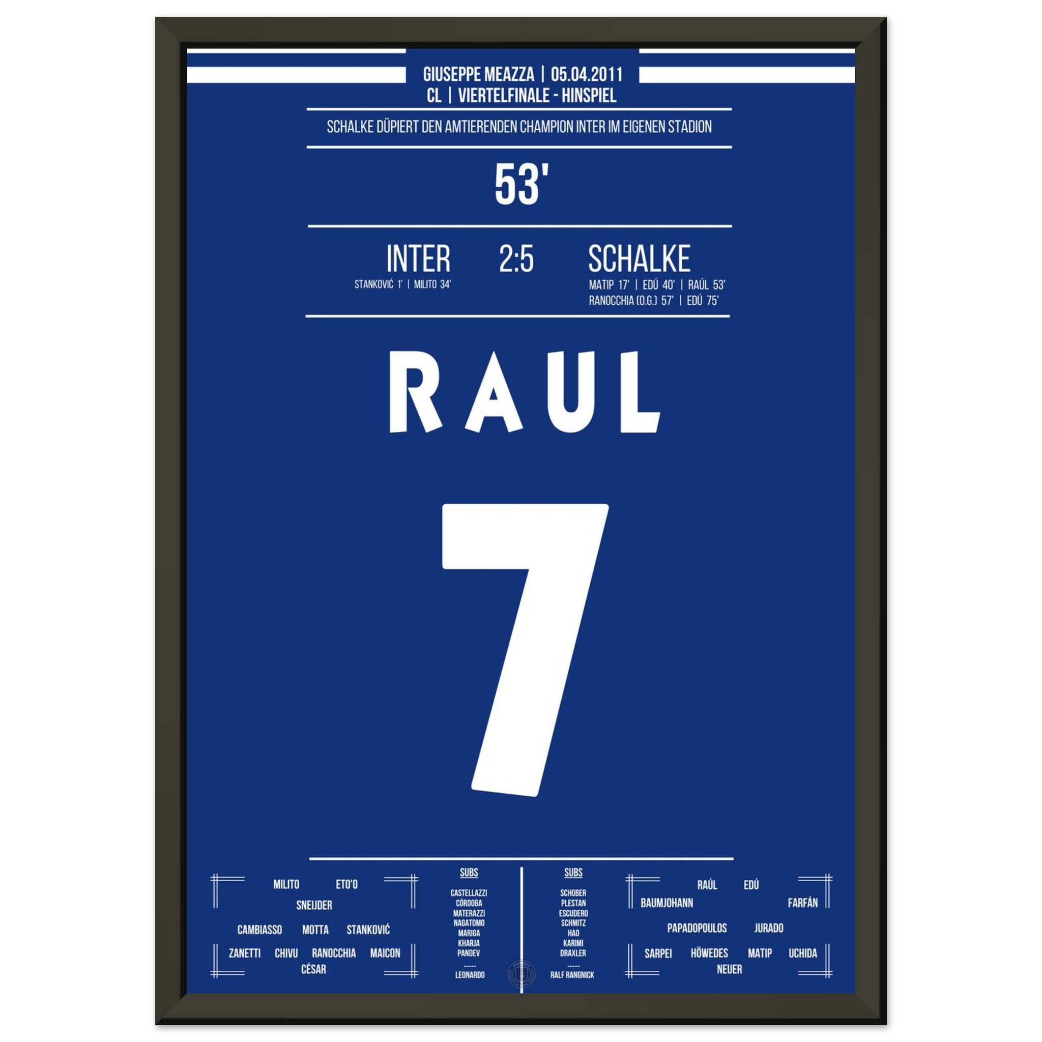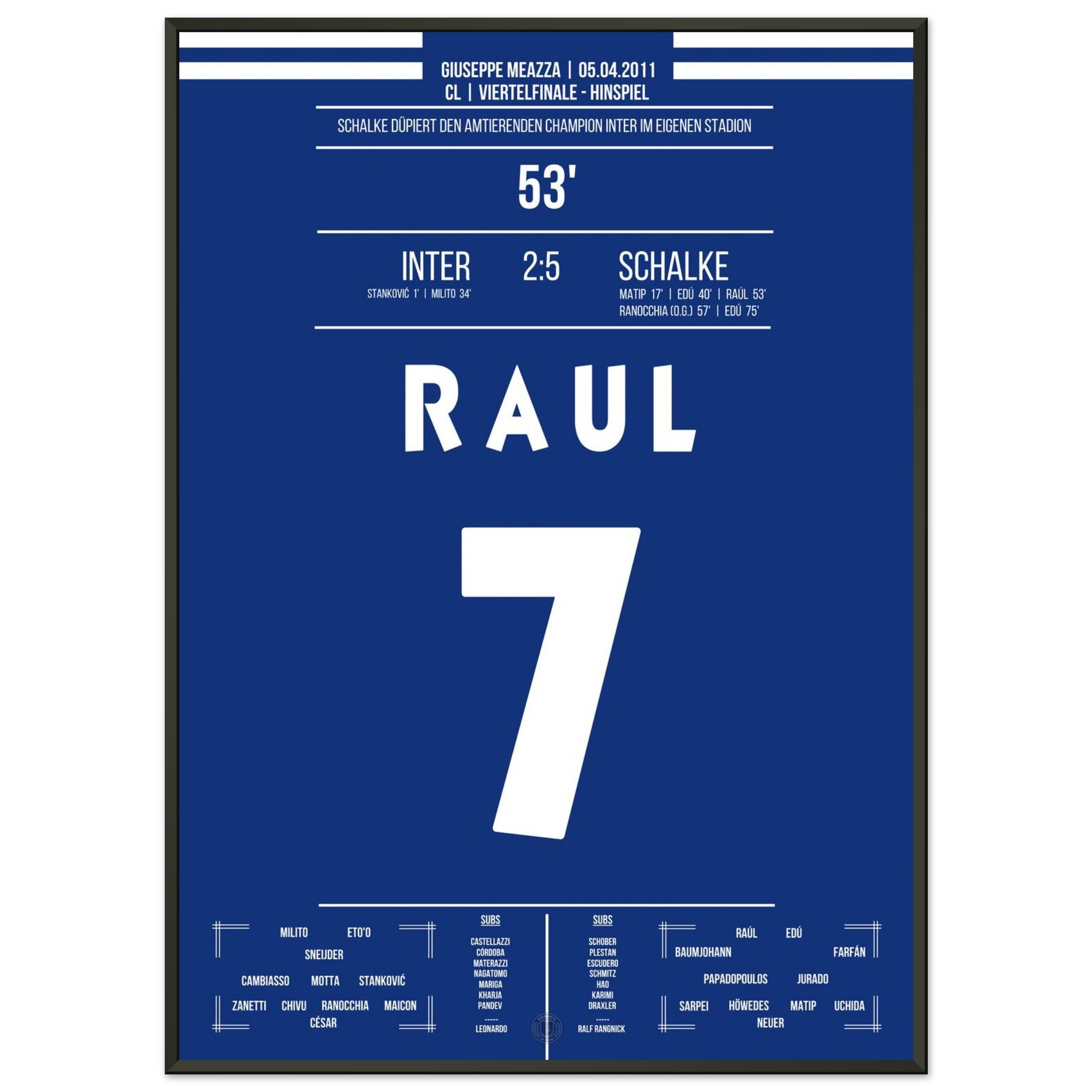 Was für ein Fußball-Wahnsinn! Schalke schockt Titelverteidiger Inter in deren eigenem Stadion mit einem historischen 5:2-Sieg im Viertelfinal-Hinspiel. Raul trifft und dirigiert, Edu schnürt einen Doppelpack – und die Königsblauen schreiben Europapokal-Geschichte.