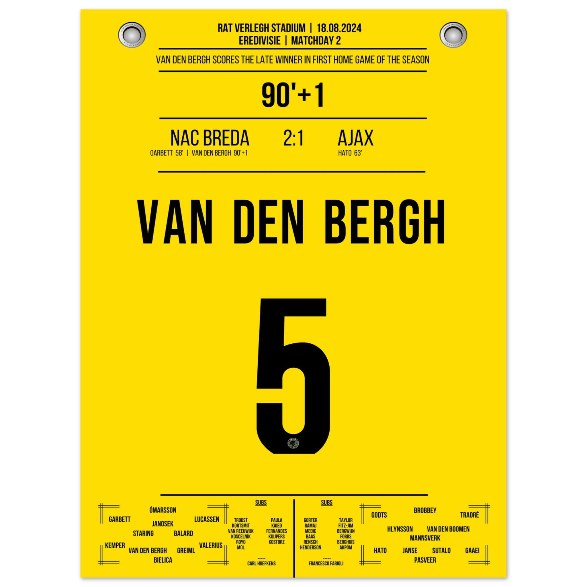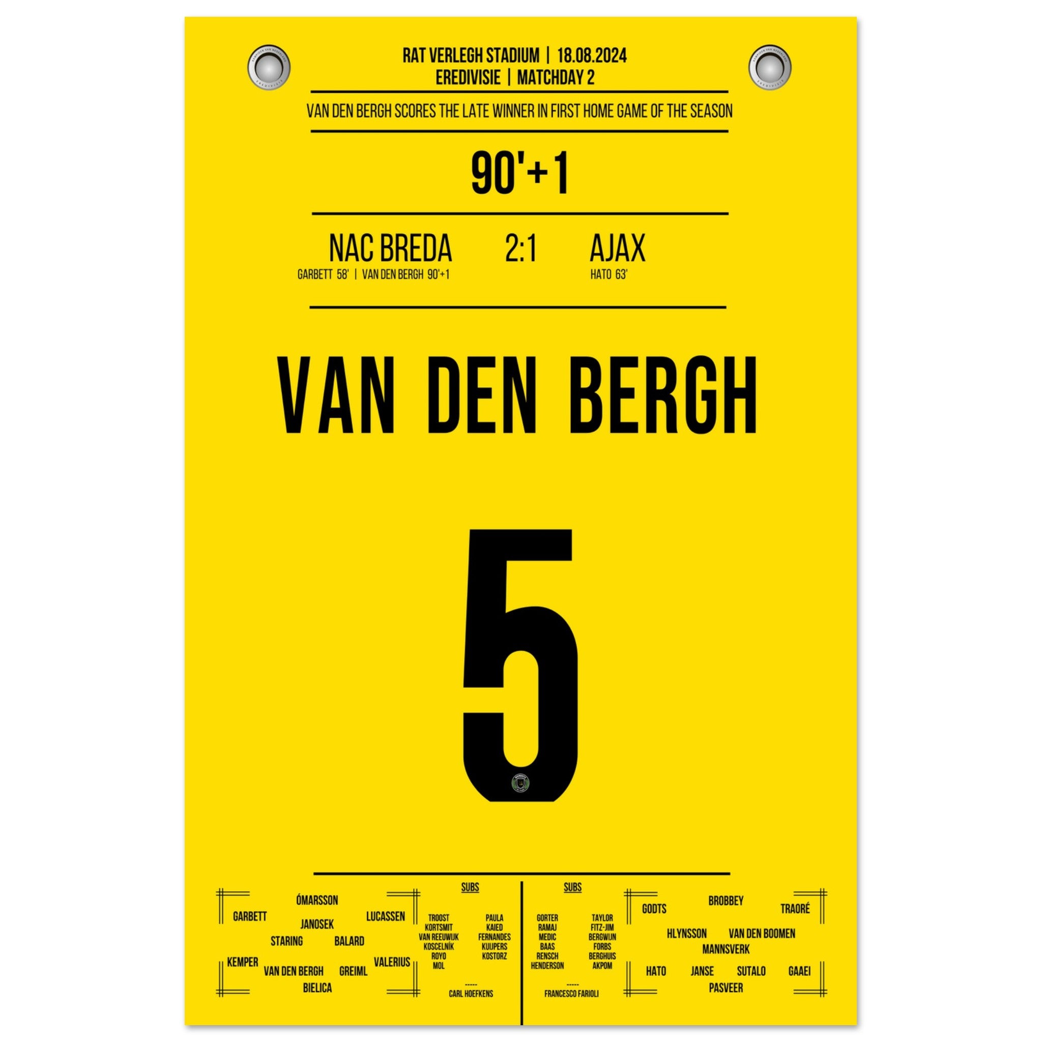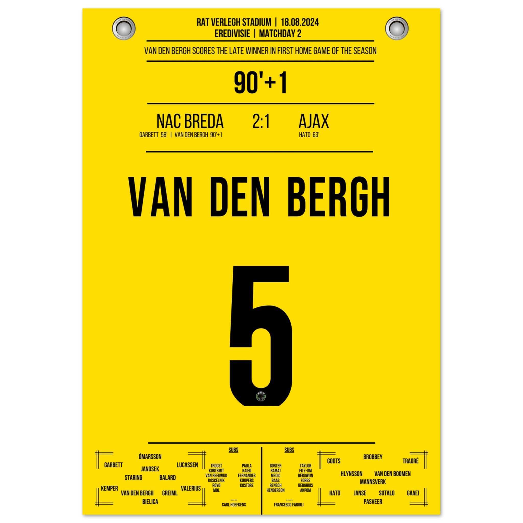 Van den Bergh's später Siegtreffer im ersten Heimspiel der Saison gegen Ajax