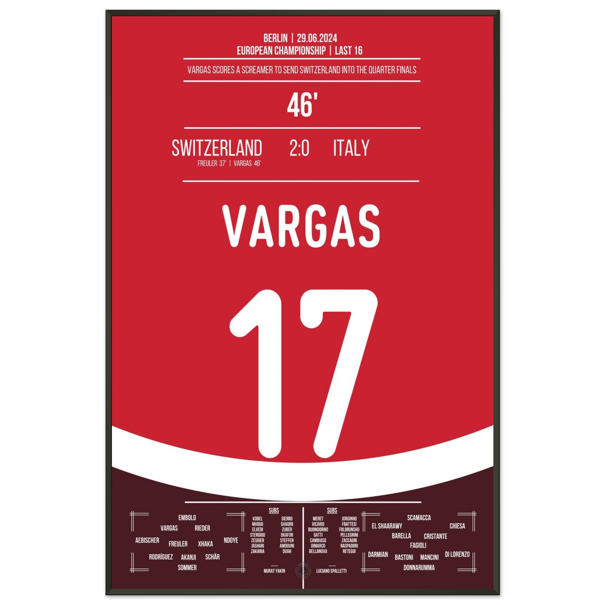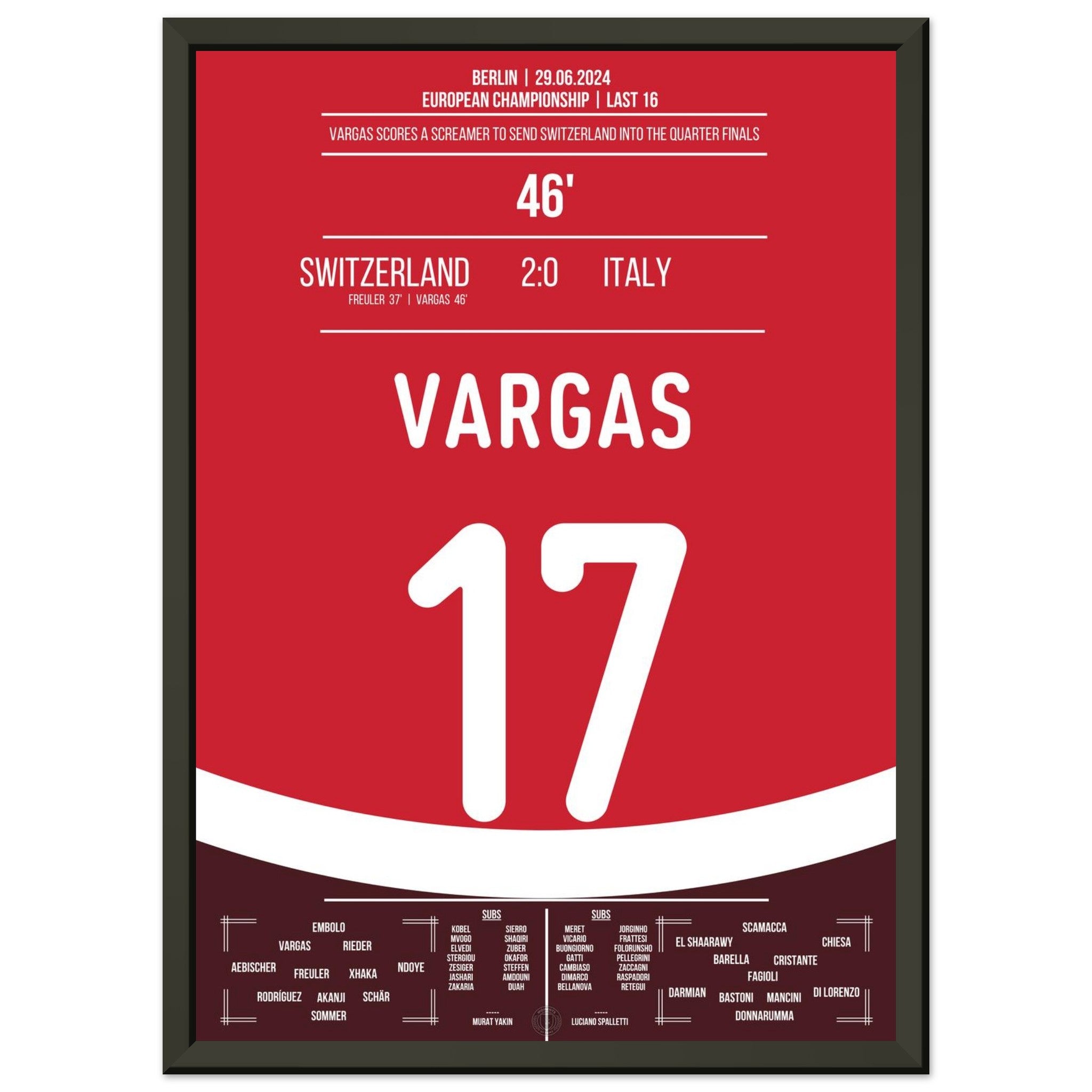 Hier kommt unser Premium-Druck dieses unvergesslichen Fußballmoments für das ultimative Fan-Erlebnis. Gedruckt auf schwerem, seidenmattem Premium-Papier, glänzt dieses Kunstwerk mit verstärkten Farben und einem subtilen Glanz, der jedes Detail zum Vorschein bringt.